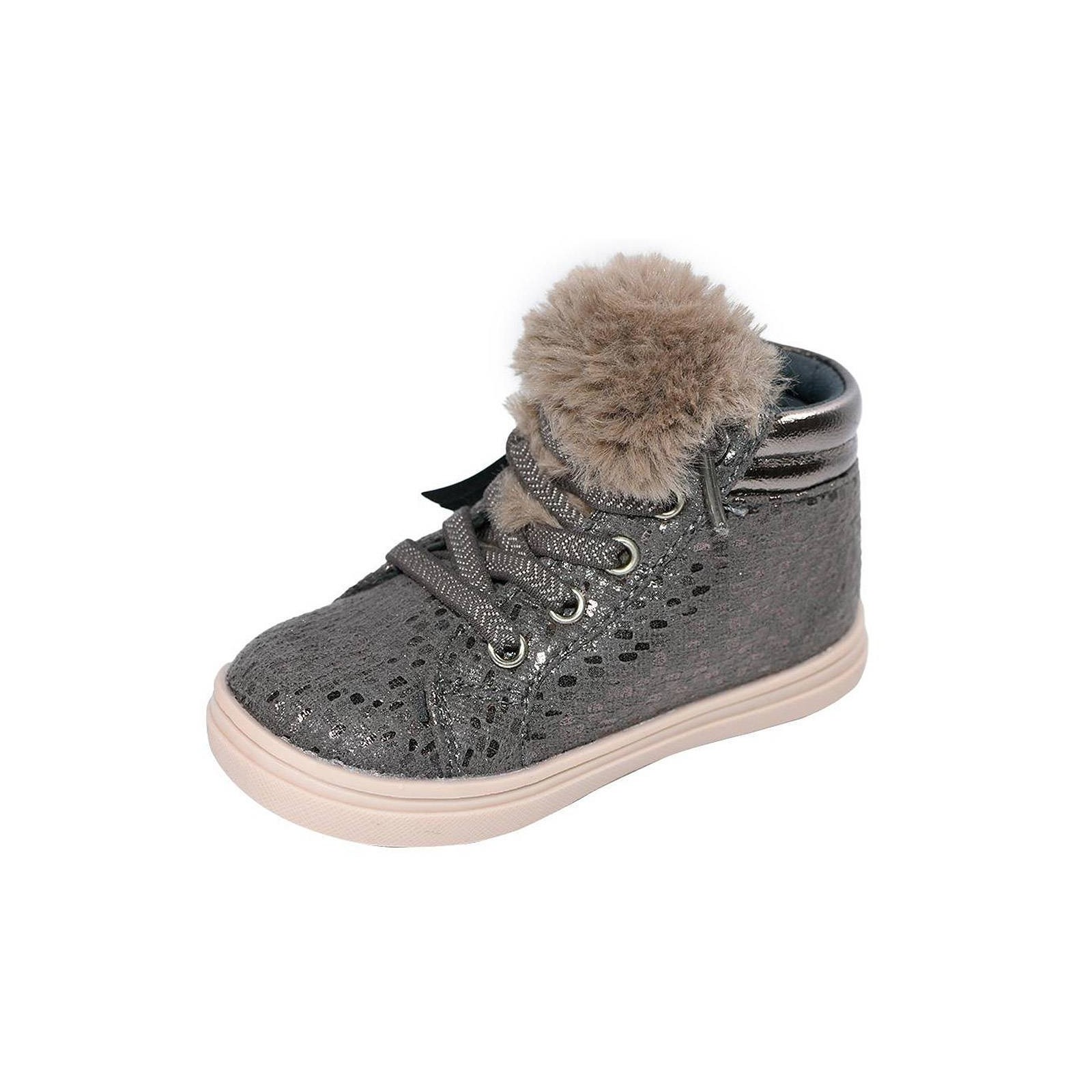 1401 CRECENDO. Botín en material sintético, textil con brillos y en lengüeta con pelo sintético. Forro interior y plantilla textil acolchado. Cierre cordones elásticos y cremallera exterior. Piso de goma antideslizante, muy ligeros y flexibles. Tus botines para un look atrevido y moderno.