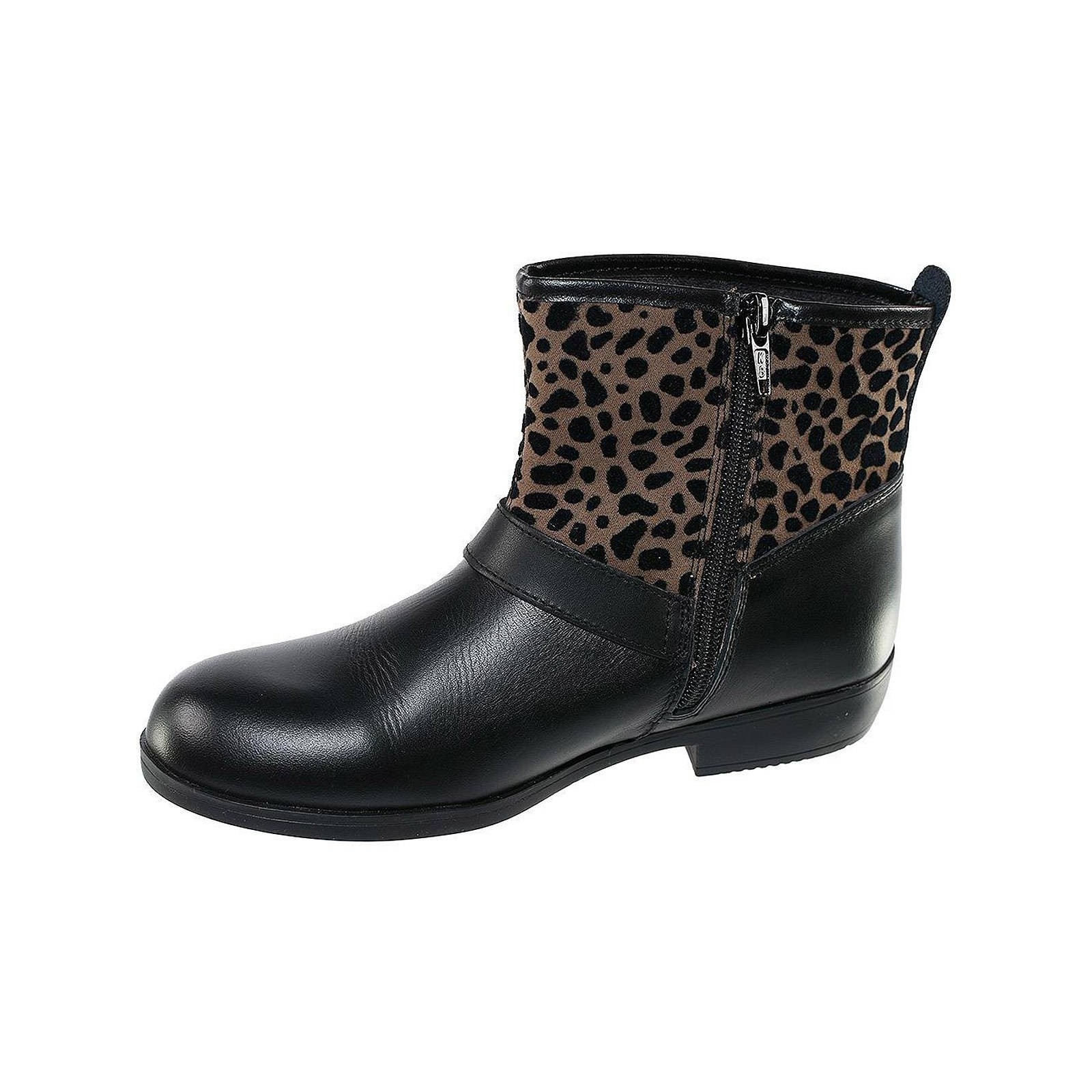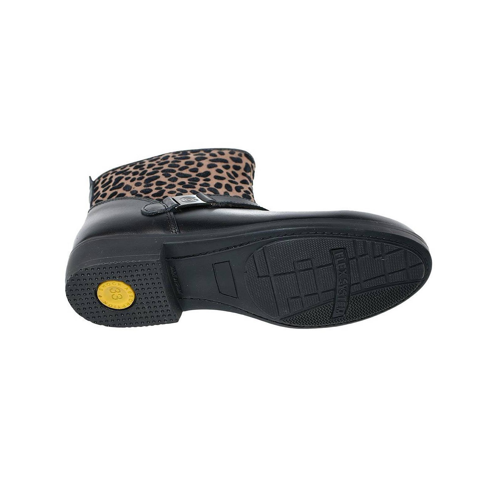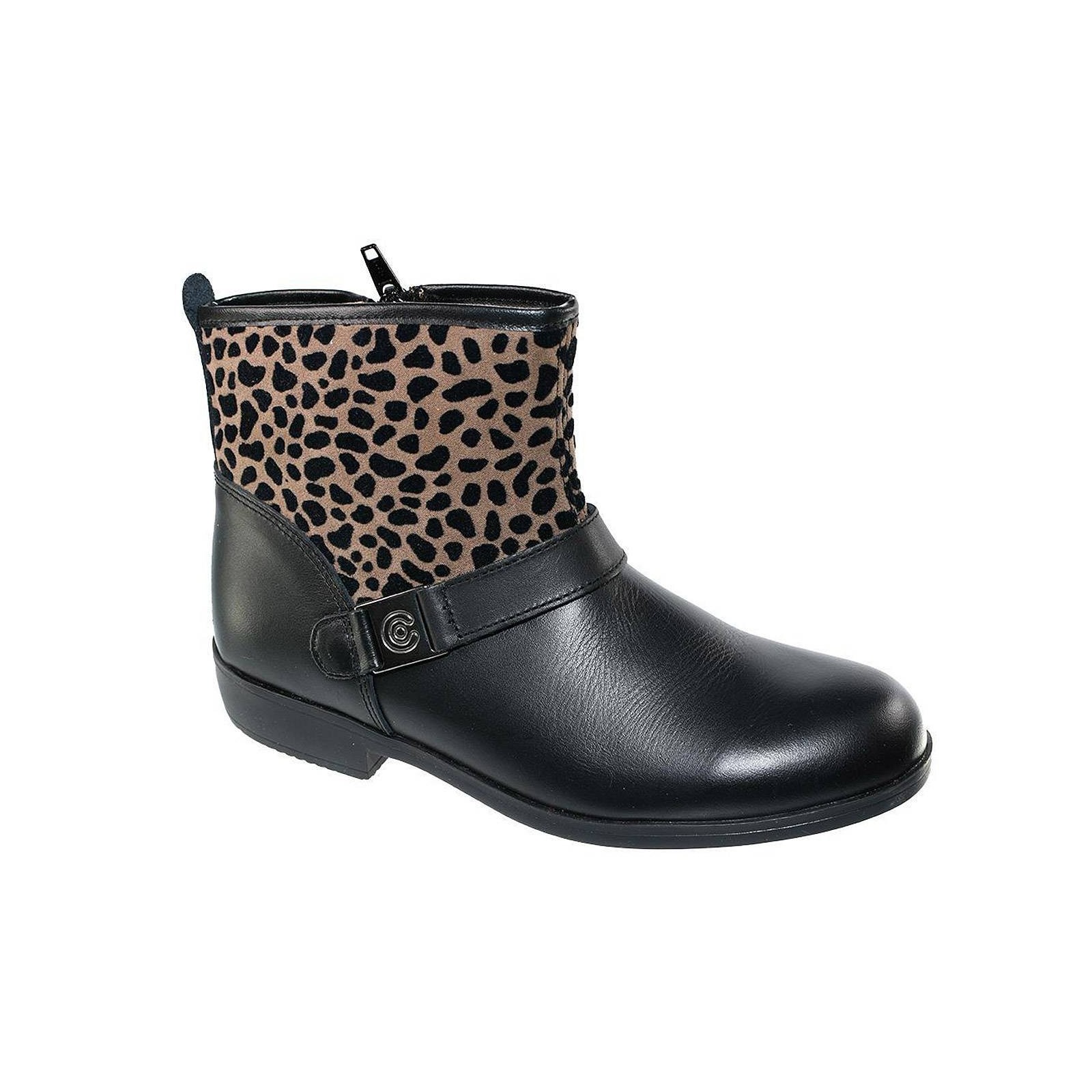 26916 CONGUITOS. Botín en material de piel combinado con animal print. Forrado interior en textil y cierre con cremallera interior. Piso de goma antideslizante muy flexible. Un diseño muy estiloso para este invierno.