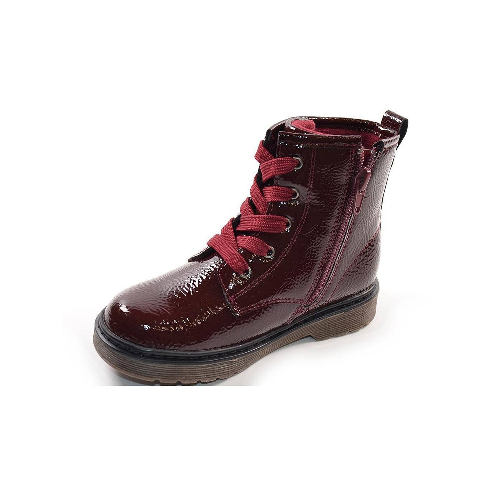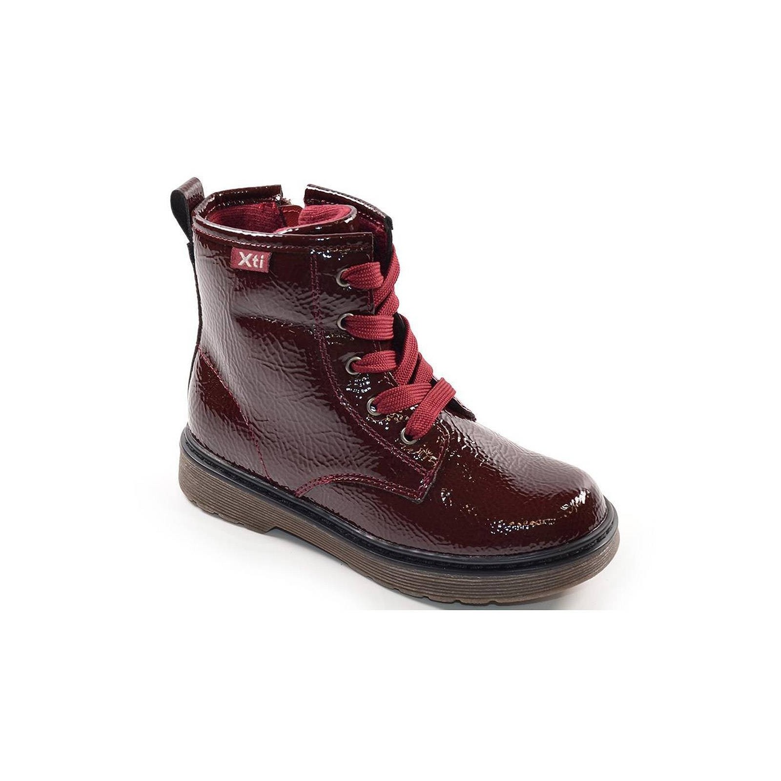 56949 XTI KIDS. Botín en material sintético charol, forro interior y plantilla textil acolchado. Cierre con cremallera interior y cordones ajustables. Piso de goma antideslizante. Ideales para un look atrevido y moderno.