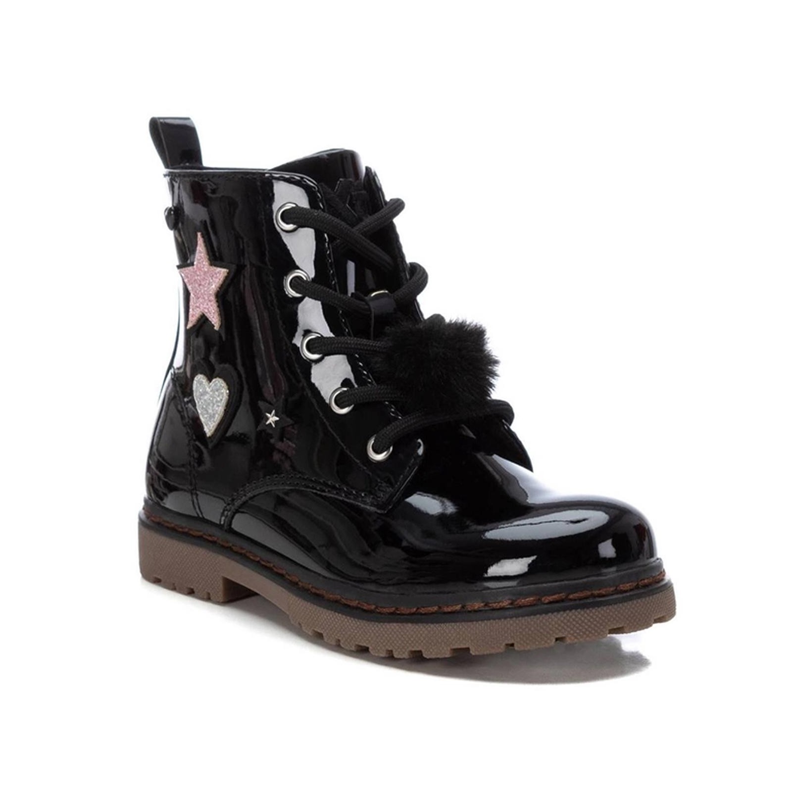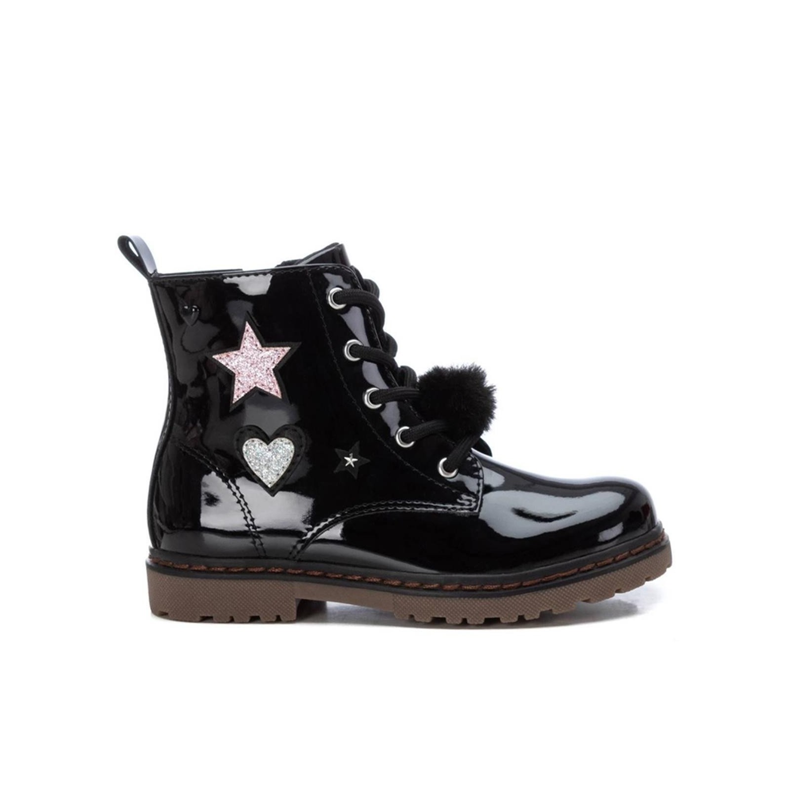 Xti Kids 151092 Botín en charol sintético con detalles en glitter. Cierre con cremallera interior y cordones para facilitar el uso y comodidad. Forrado interior en textil y plantilla en piel acolchada. Tirador trasero para facilitar su puesta. Suela de goma antideslizante.
