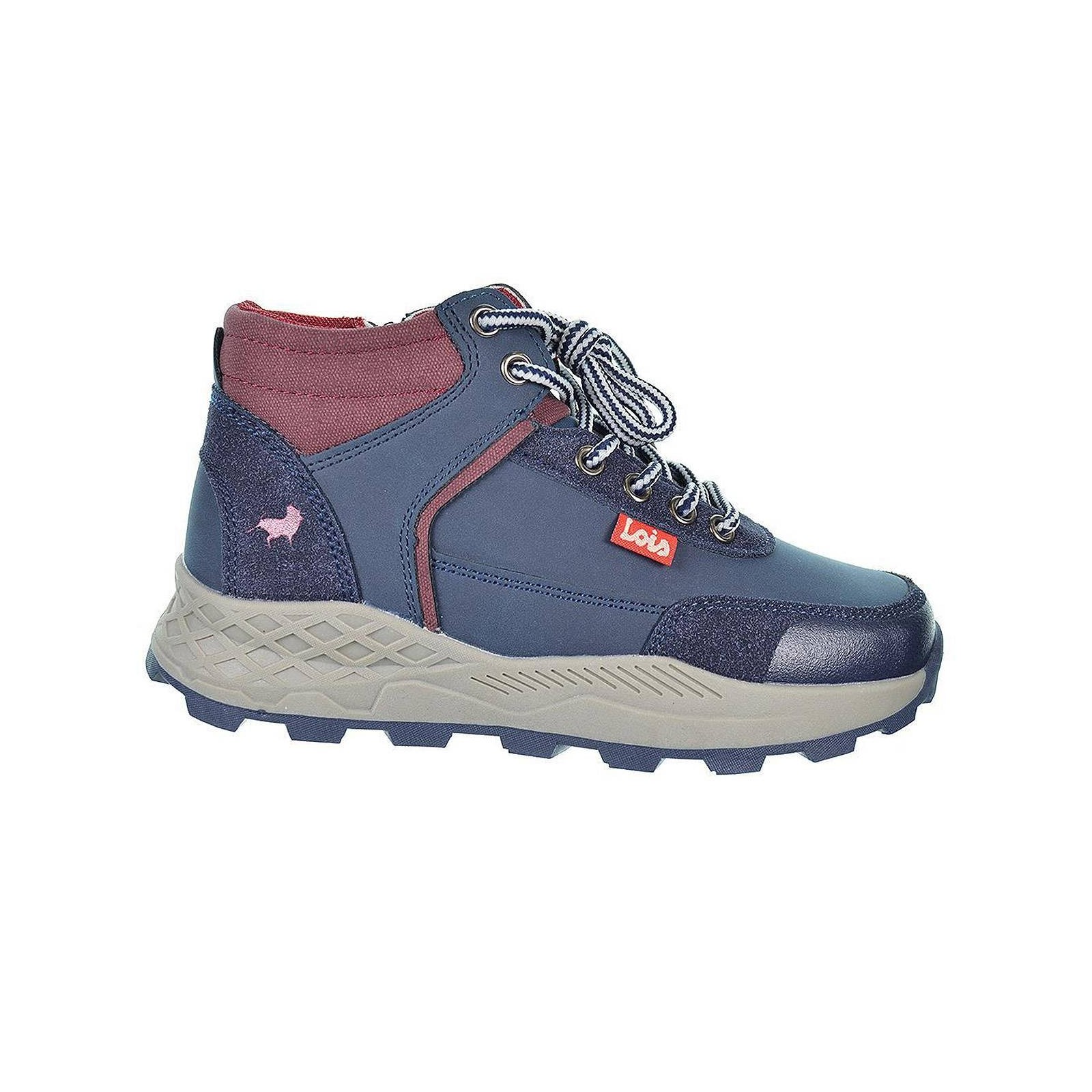 63165 LOIS. Botín en material sintético y collarín acolchado en textil. Cierre en cordones para un ajuste perfecto. Forro y plantilla textil acolchado. Piso de caucho antideslizante. Un diseño urbano con el que podrás disfrutar en los días fríos de invierno.