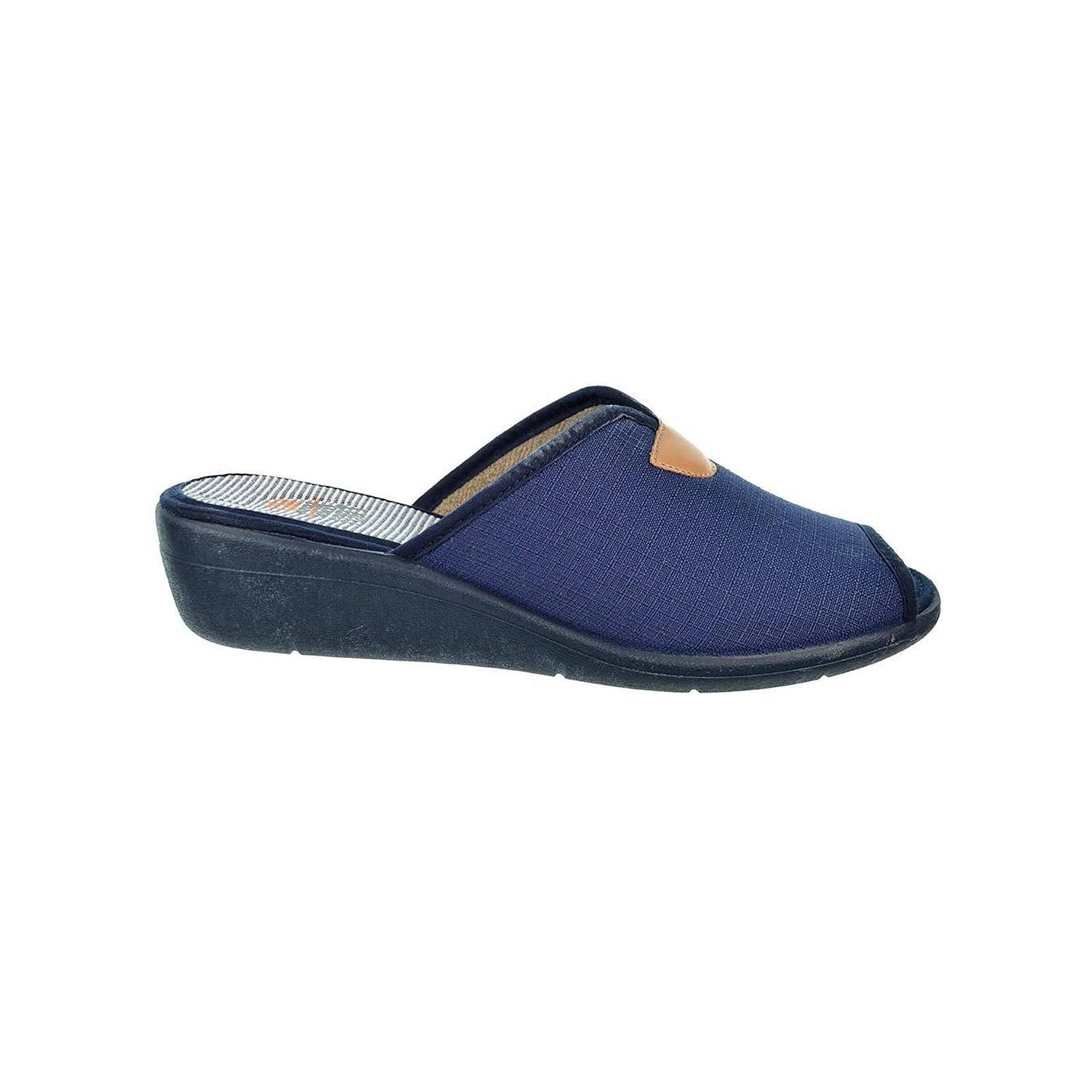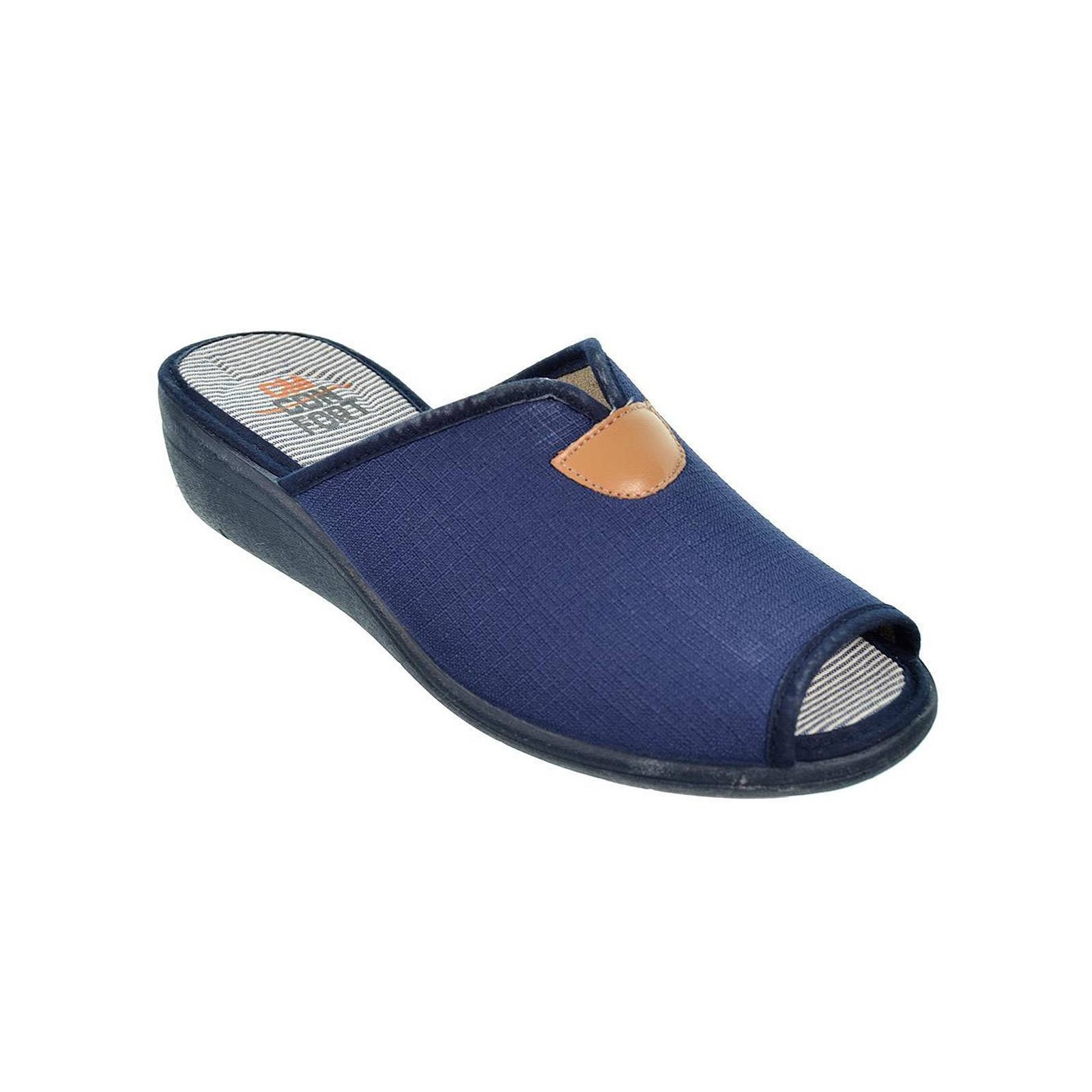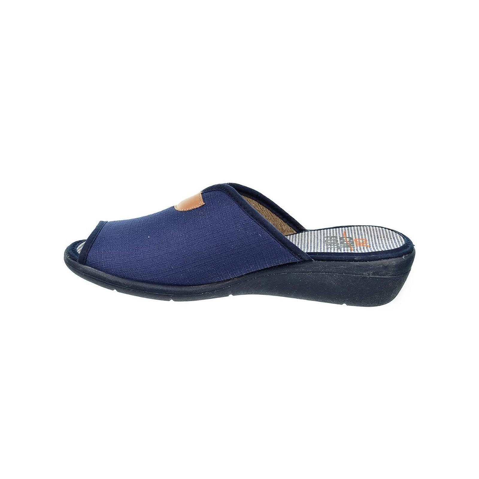 10197 CMCONFORT. Zapatilla textil destalonada con puntera abierta, plantilla textil acolchada para un máximo confort. Piso con cuña de goma antideslizante. Ideales para casa por su comodidad al caminar.