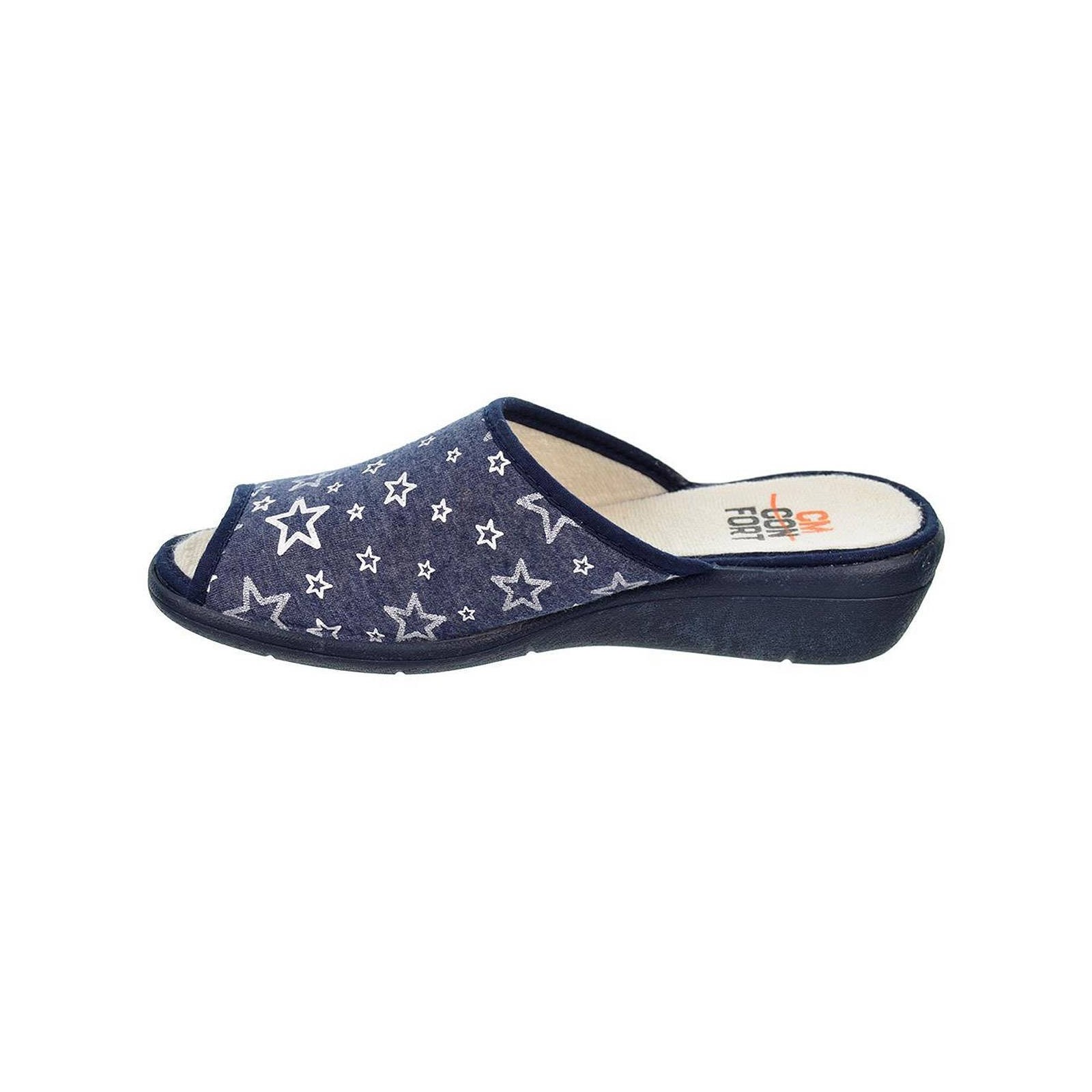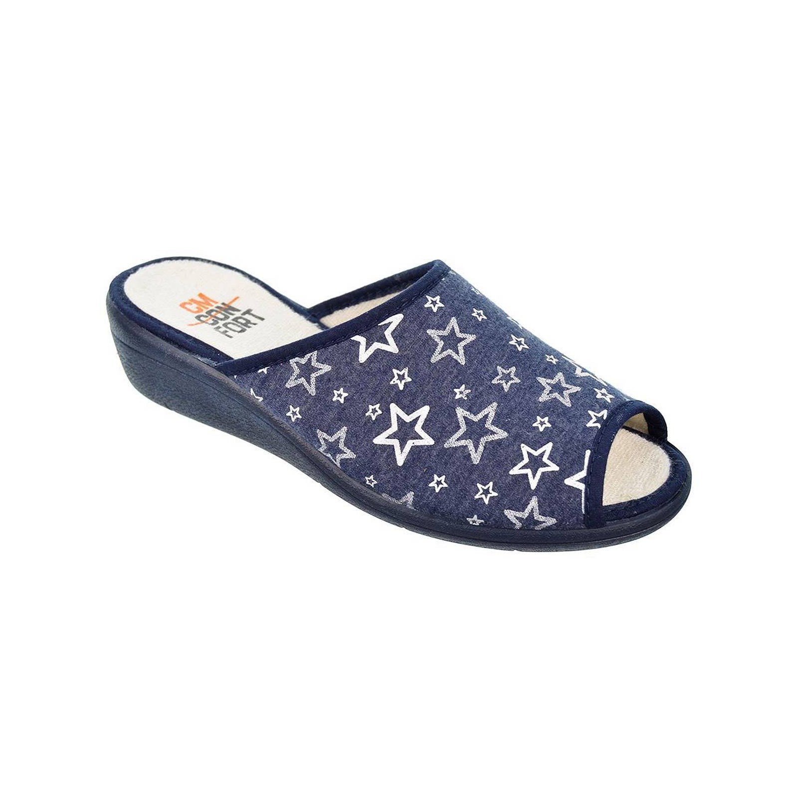 20272 CMCONFORT. Zapatilla textil destalonada con puntera abierta, plantilla textil acolchada para un máximo confort. Piso con cuña de goma antideslizante. Ideales para casa por su comodidad al caminar.