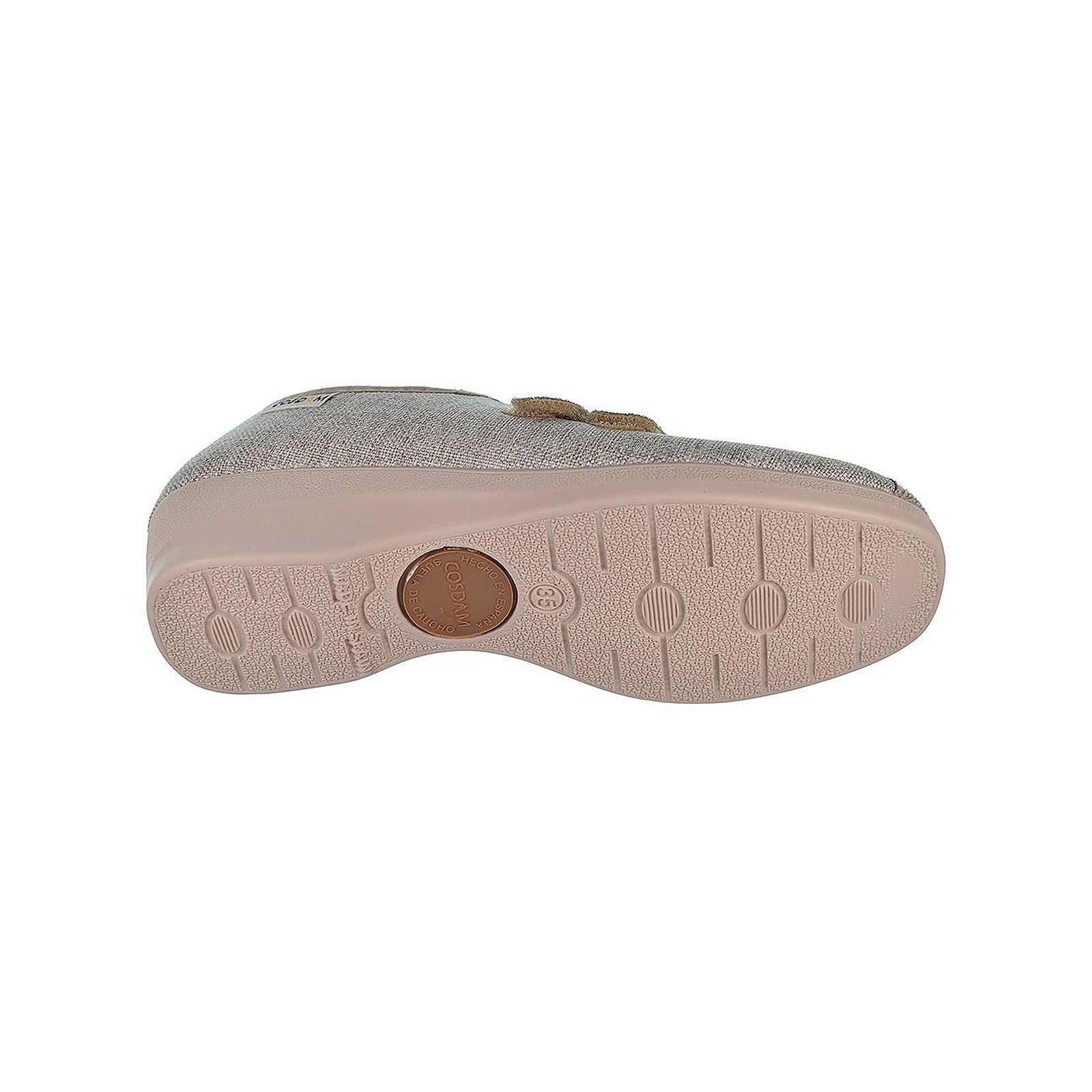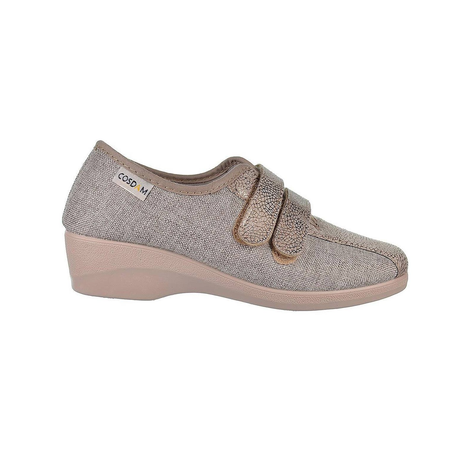 2513 COSDAM. Zapatilla textil combinada con material grabado, cierre con doble velcro ajustable. Piso de goma antideslizante, muy cómodo y confortable.Ideal para pies delicados.