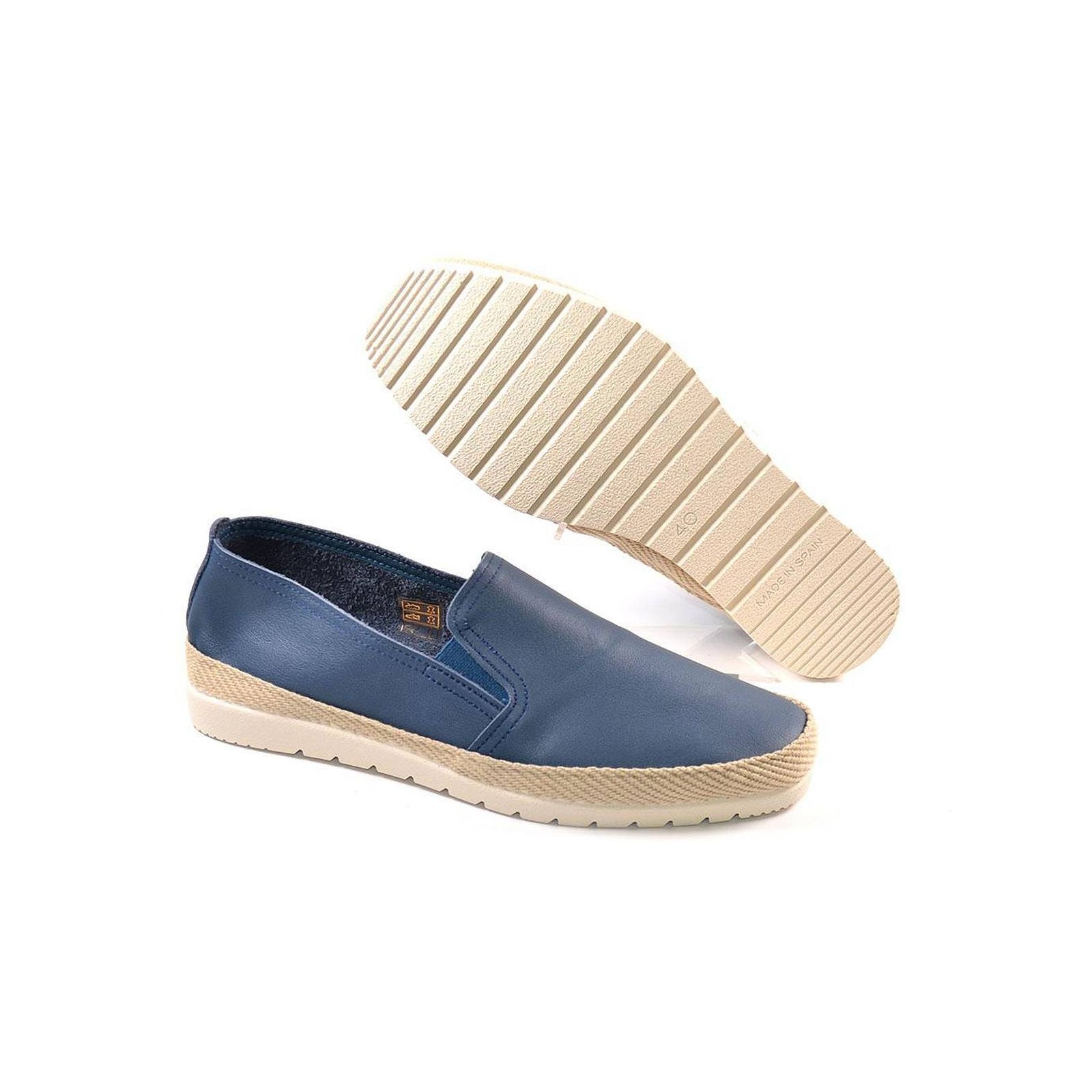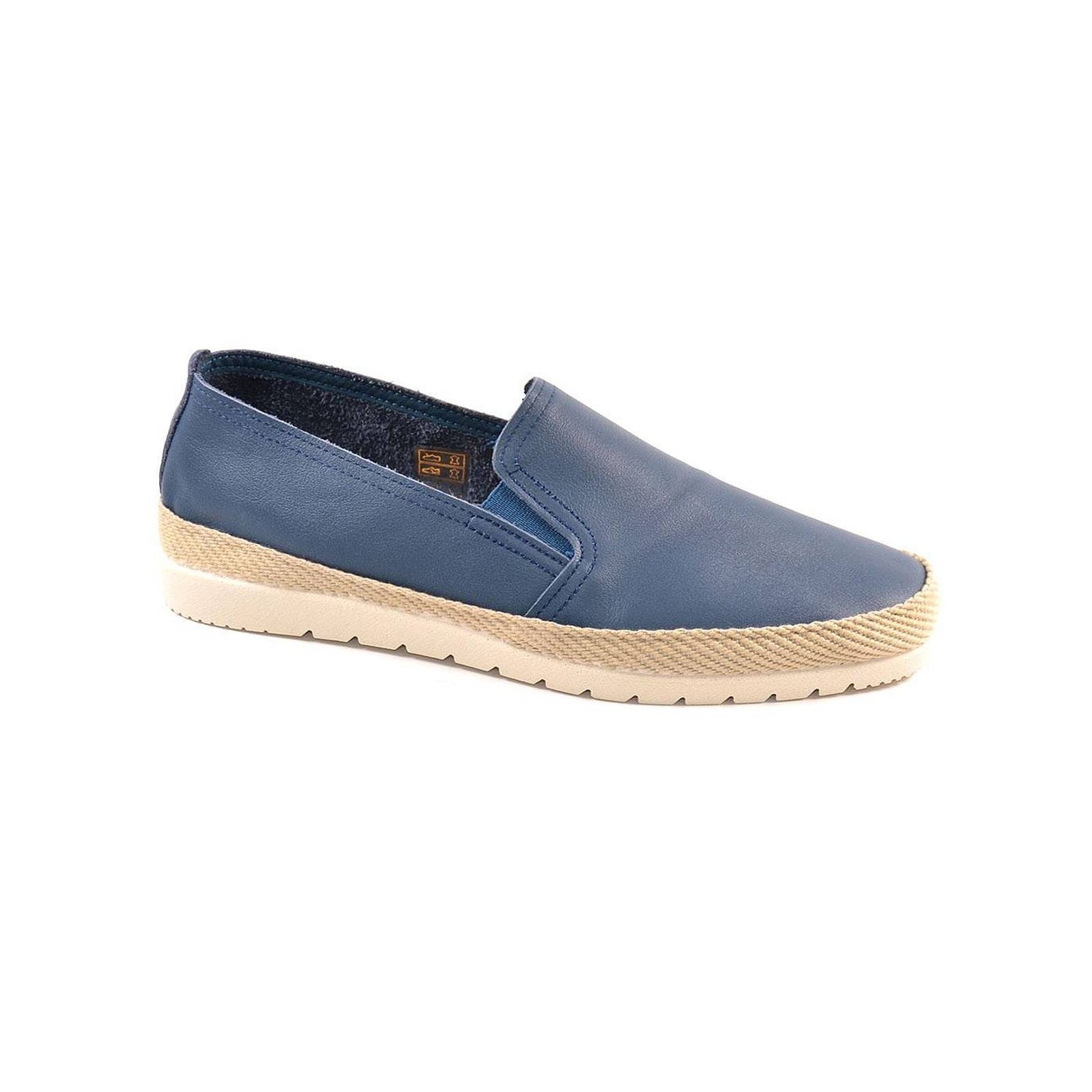 10010 mediterránea. Zapatilla Alpargata material piel, con elásticos laterales. Forro interior textil y plantilla acolchada muy confortable. Vira de esparto y suela de goma antideslizante, muy ligera y flexible. Un estilo muy fresco para este verano.