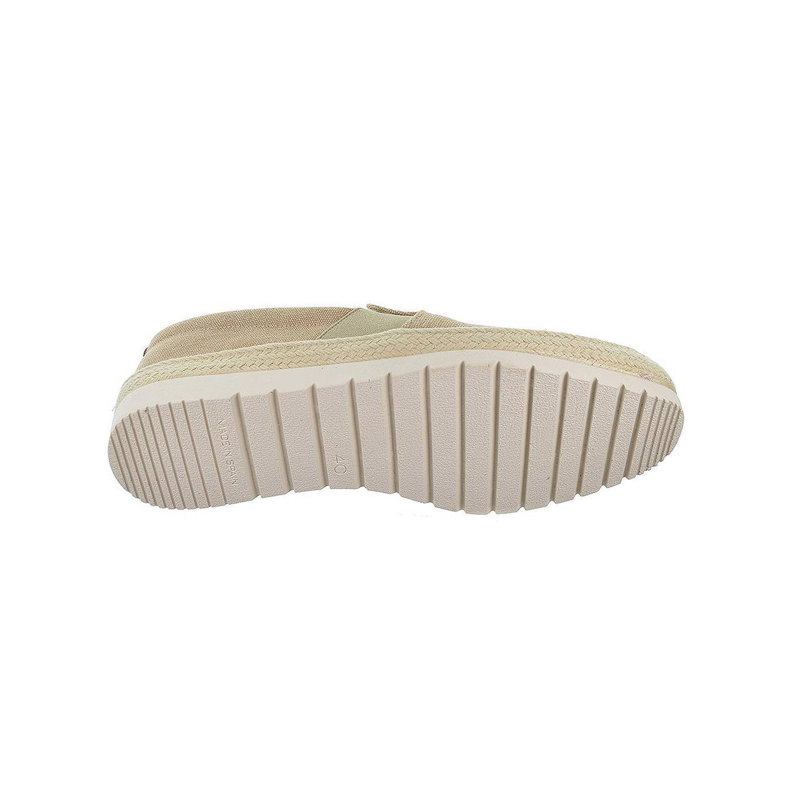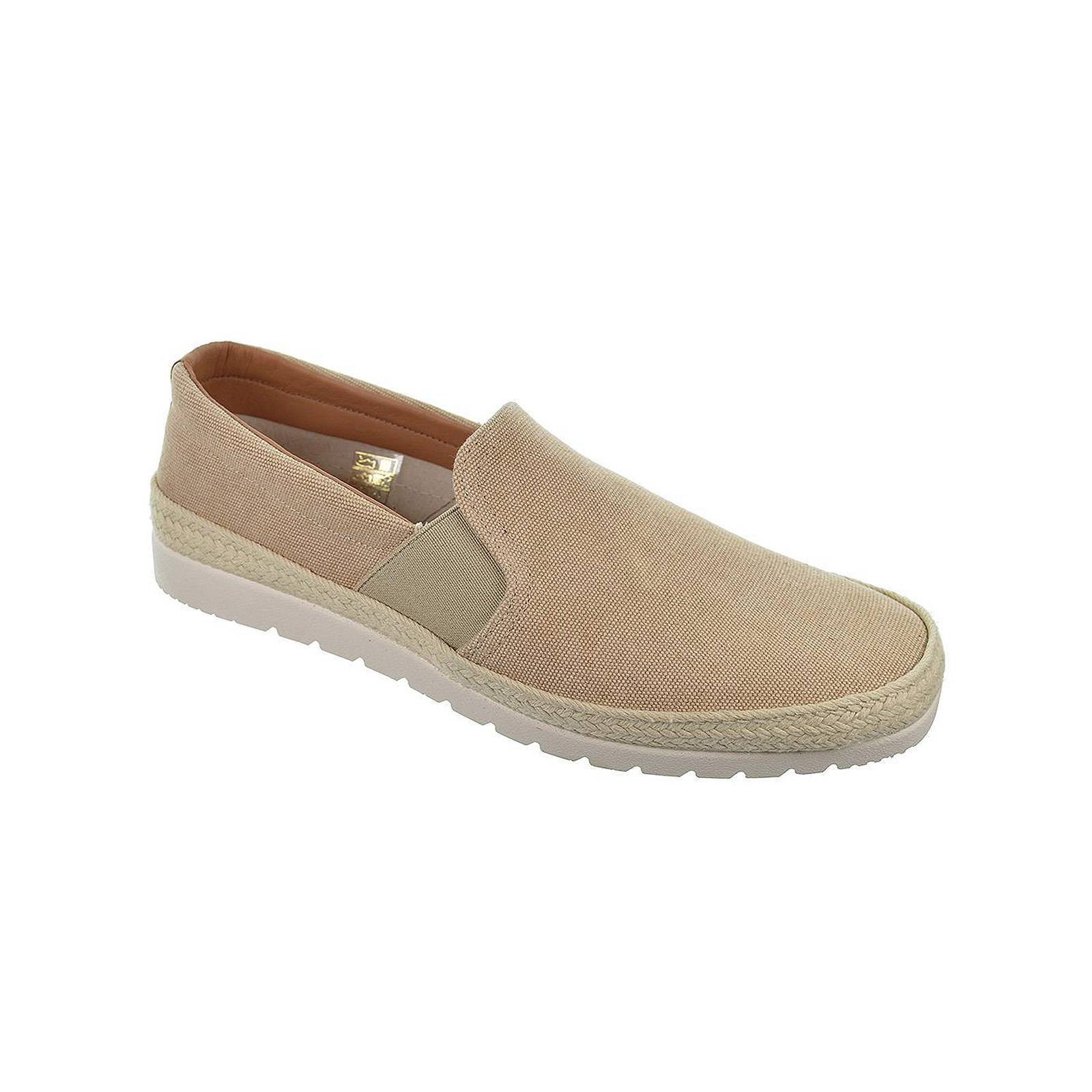 20368 Mediterranea Alapargata lona con elásticos en ambos lados. Forro textil y plantilla acolchada, muy confortable. Vira de esparto y suela de goma antideslizante. Un diseño muy confortable y flexible para este verano.
