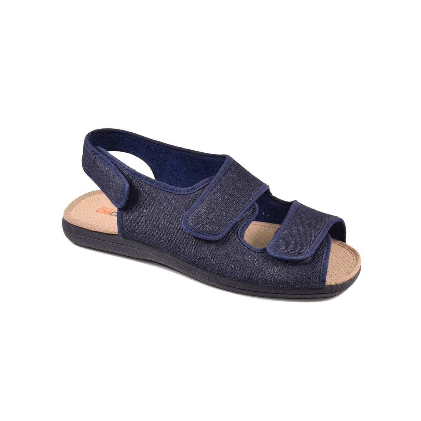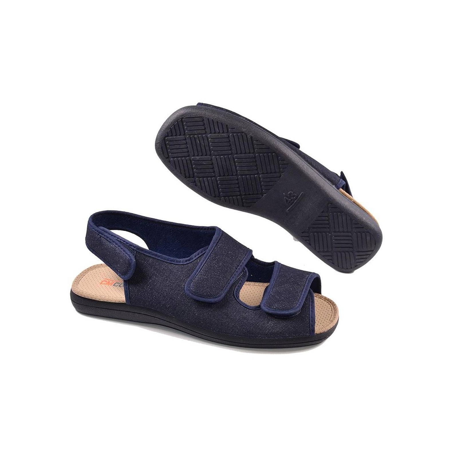 334 cmconfort. Sandalia textil ancho especial, forro interior acolchado transpirable.Cierre de doble velcro en pala y talón para un ajuste perfecto . plantilla confort acolchada.Piso de goma antideslizante. Ideal para pies delicados.