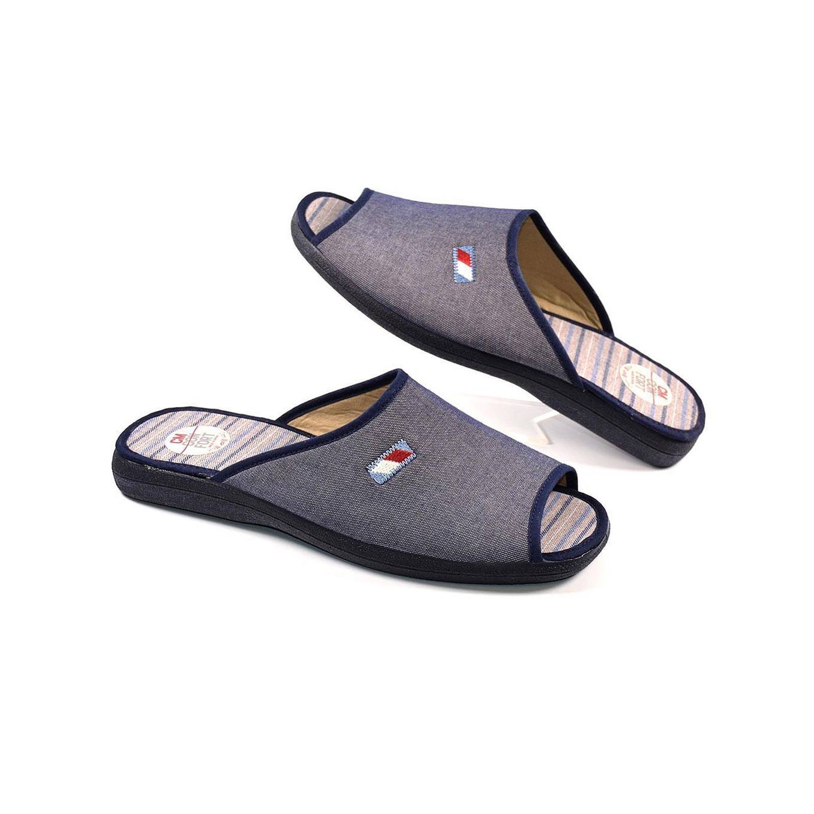 10135 Cmconfort. Sandalia Chancla textil con puntera abierta. Plantilla acolchada para un máximo confort. Piso de goma antideslizante. Perfectas para casa!!