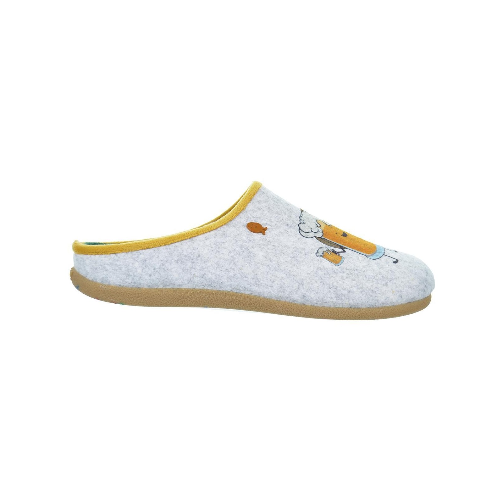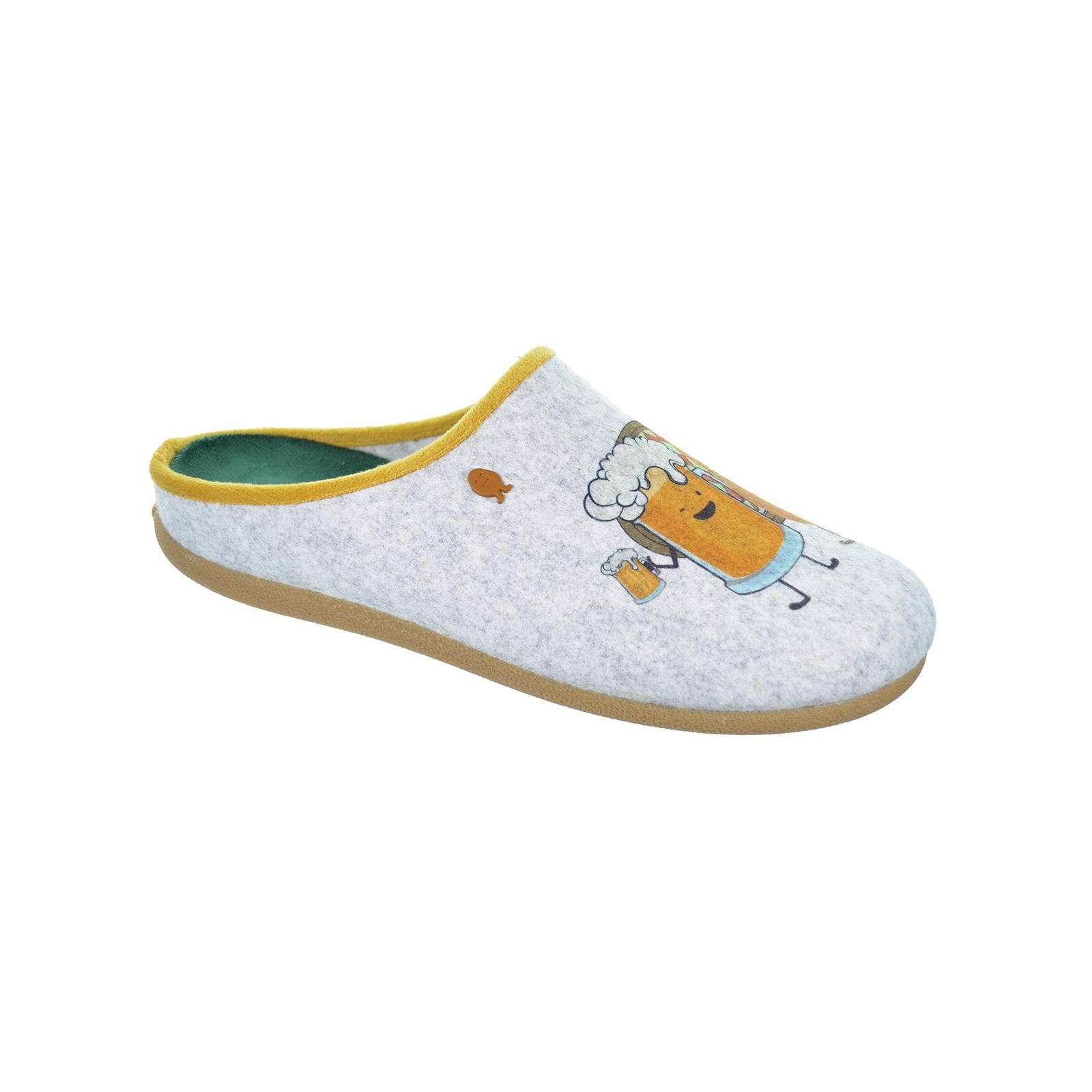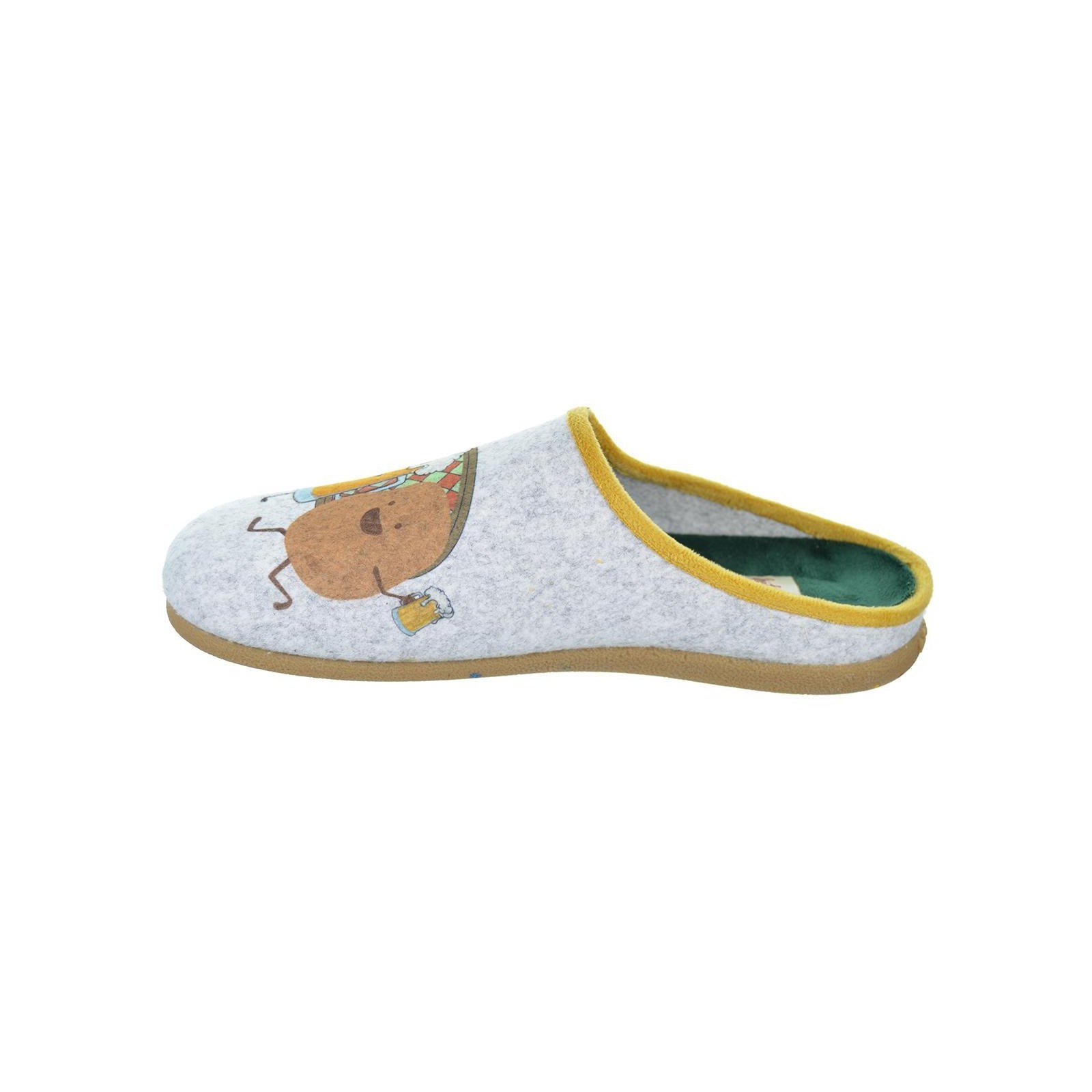 67571 Cratloe Hot POTATOES!. Zapatillas destalonadas de estar por casa, corte estampado de fieltro PET reciclado y planta afelpada de tejido poliéster suave. Plantilla extraible de espuma poliuretano 100% reciclado y suela de caucho natural.Diseñadas para los pies más divertidos y atrevidos.