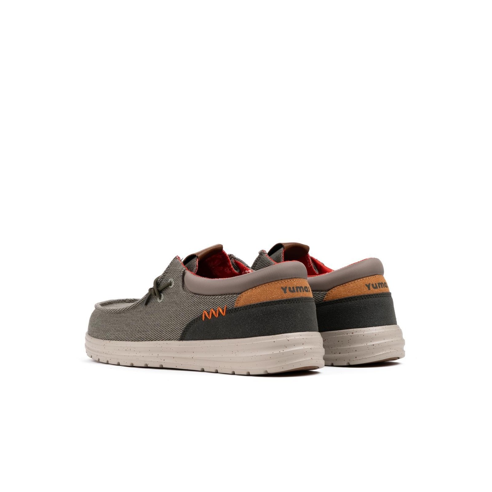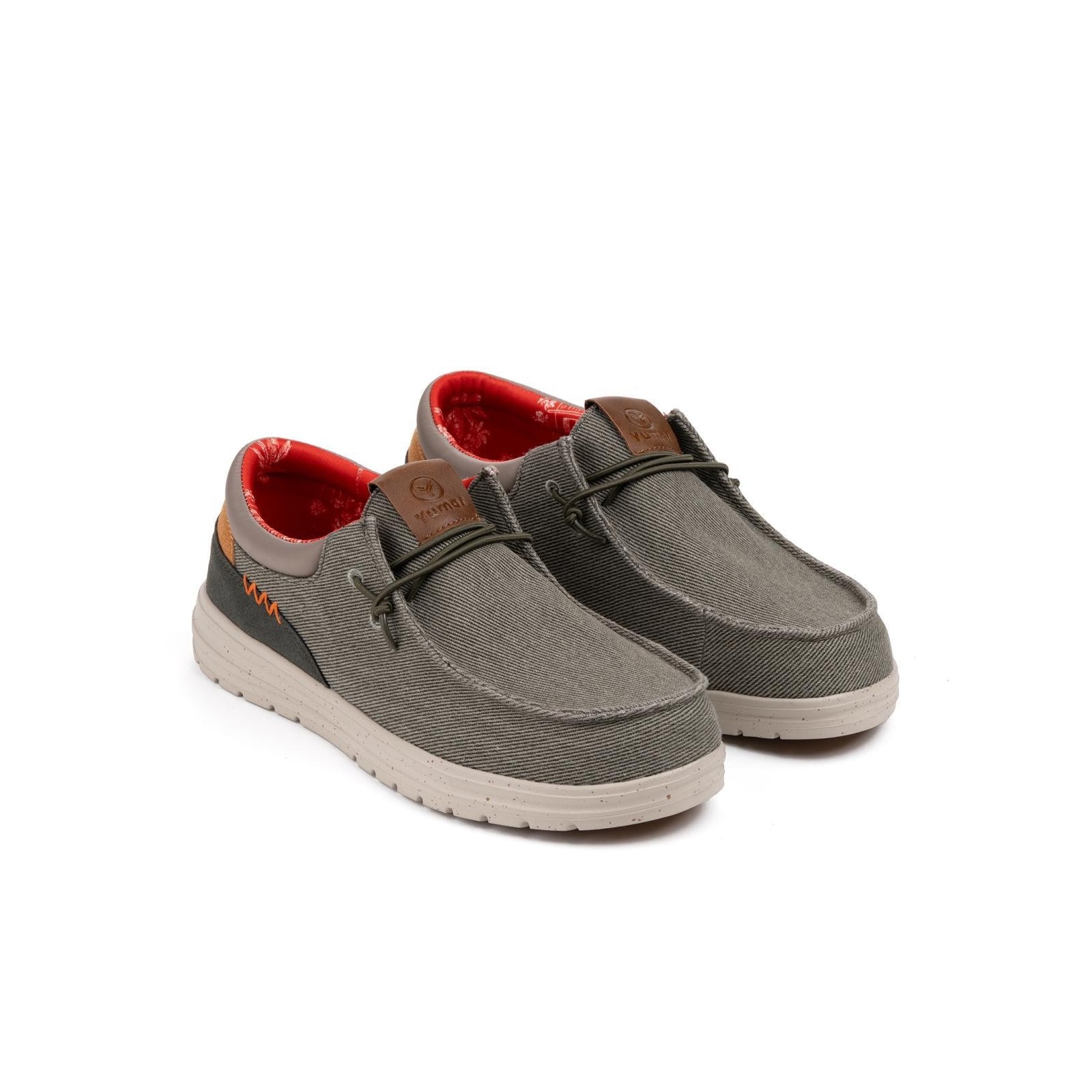 Yumas Deniro Zapato en textil y sintético. Cierre mediante cordones elásticos, forro interior textil y plantilla extraíble en textil acolchada, muy confortable. Suela de eva termoconformada y goma antideslizante muy ligera y flexible.