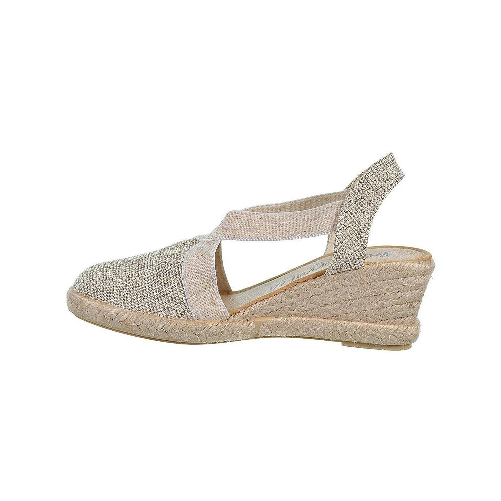 20192 MEDITERRÁNEA. Zapatilla Alpargata textil con elásticos laterales y plantilla acolchada para un máximo confort. Piso cuña en yute y suela de goma antideslizante.IDEAL PARA COMBINAR CON TUS VESTIDOS ESTE VERANO.