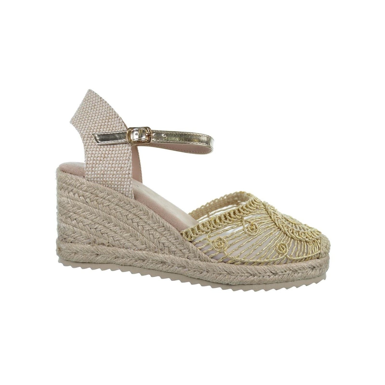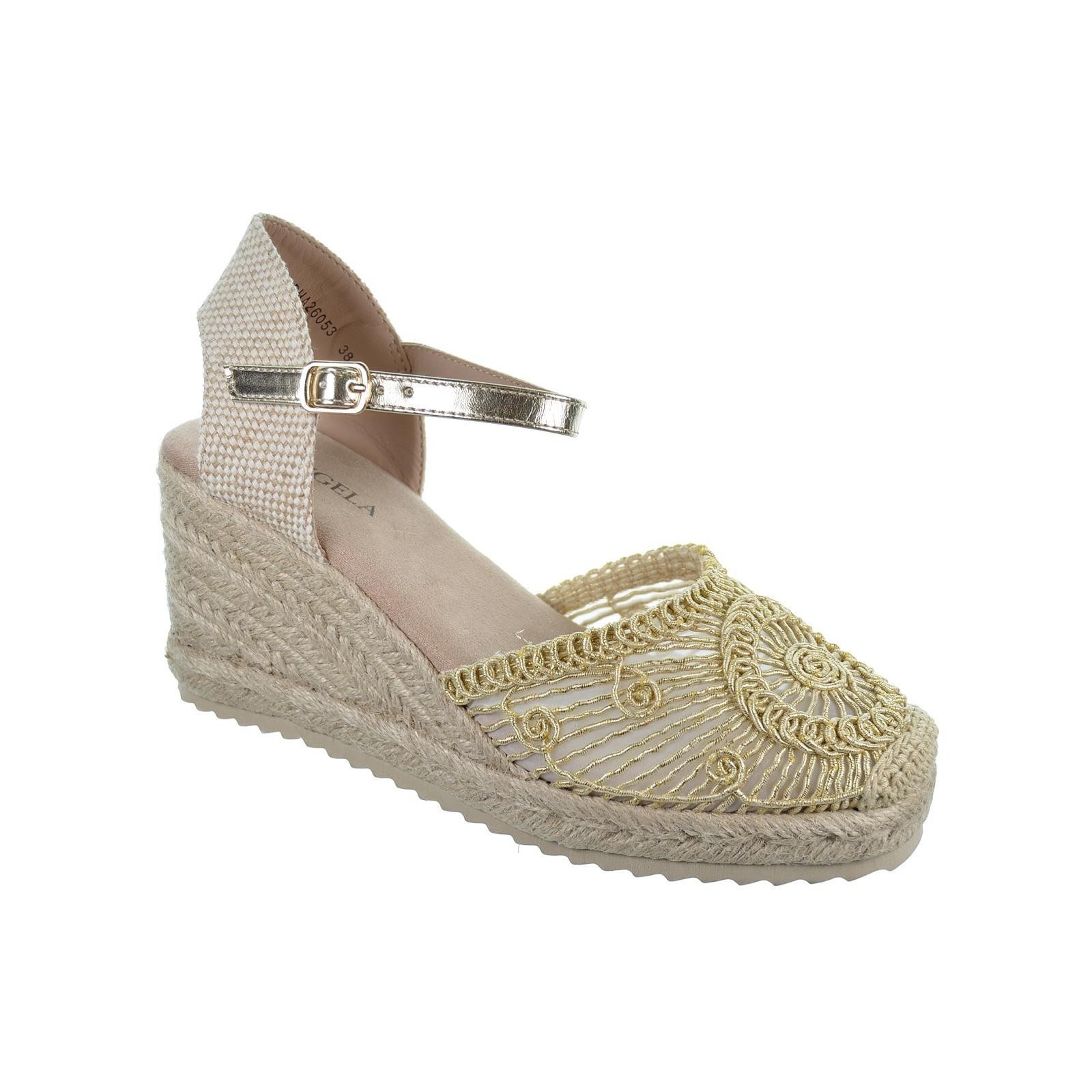 D´angela 26053 Alpargata textil con rejilla interior transparente, con cierre en pulsera. Plantilla acolchada muy confortable. Piso en yute con cuña de 8cm. de altura y suela de goma antideslizante. Un diseño que no puede faltar en tu outfit este verano.