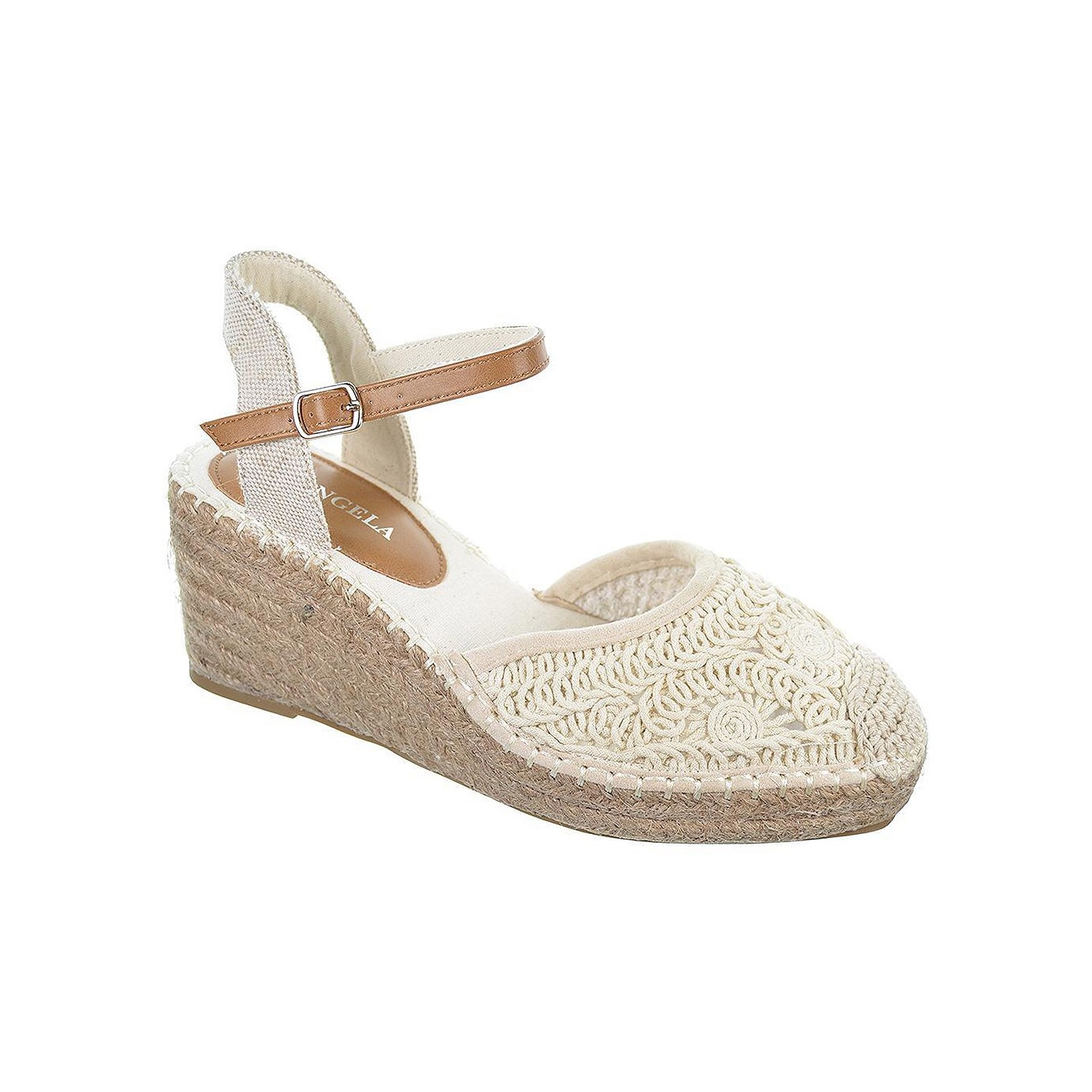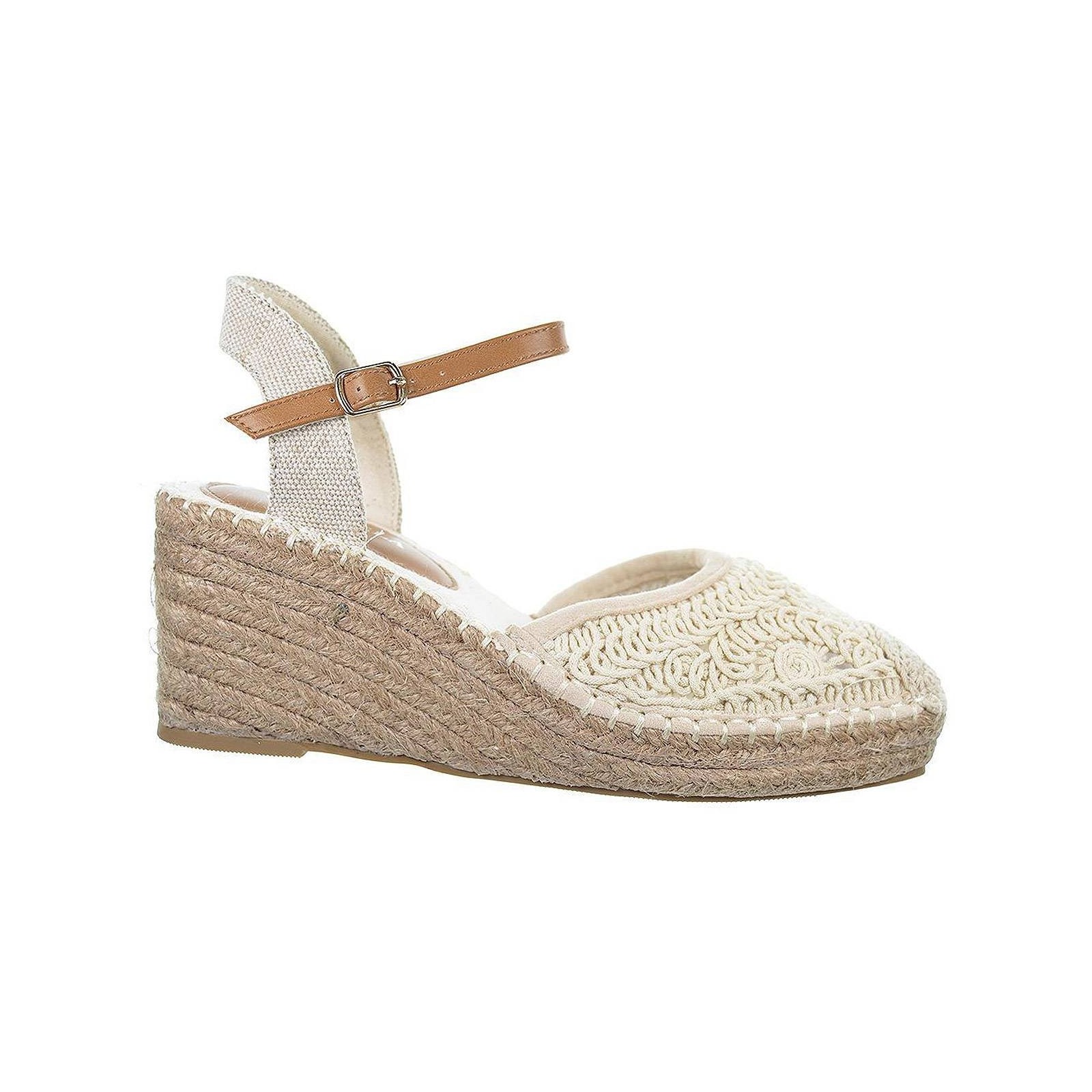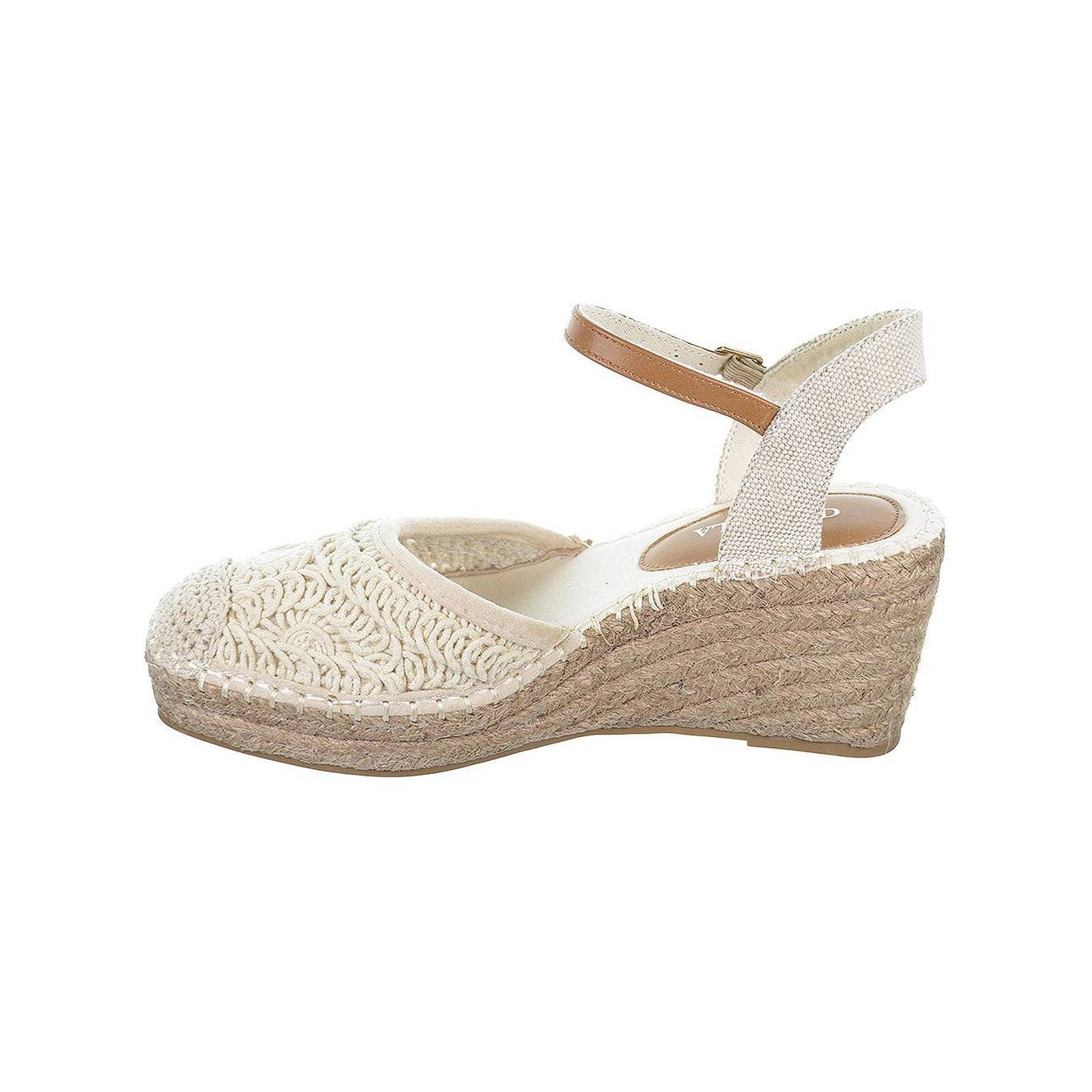 23085 D´angela. Alpargata textil trenzada, con cierre en pulsera. Plantilla acolchada muy confortable. Piso en yute con cuña de 7cm. de altura y suela de goma antideslizante.Un diseño que no puede faltar en tu outfit este verano.