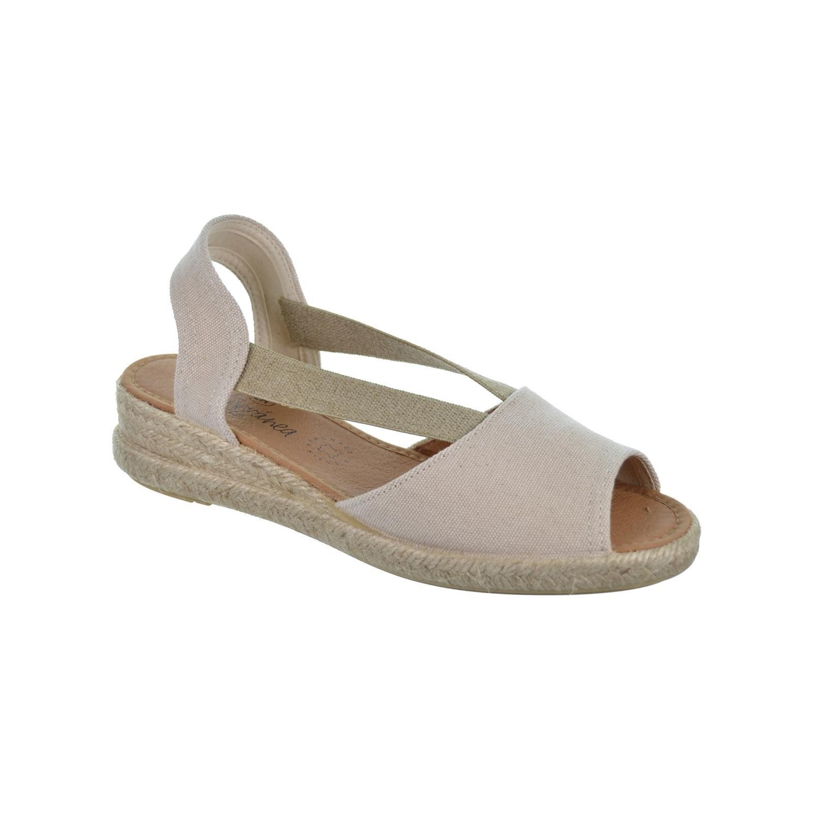 Mediterranea 40233 Alpargata textil con elásticos laterales y plantilla acolchada para un máximo confort. Piso cuña en yute de 3´5cm de altura y suela de goma antideslizante.Ideal para combinar con tus vestidos este verano.