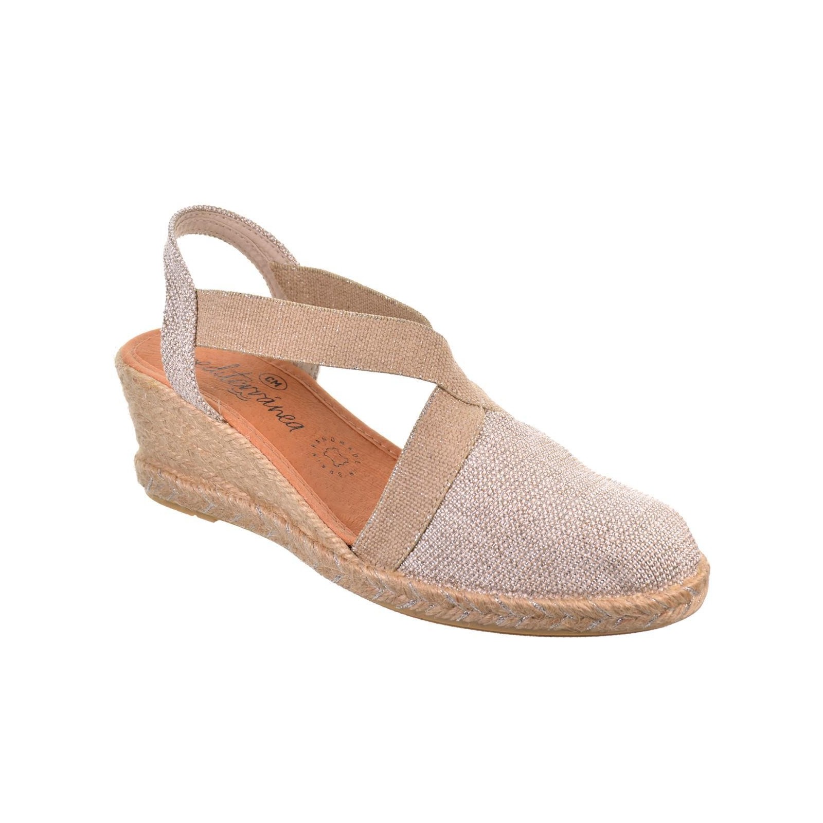 Mediterranea 50185 Alpargata textil con elásticos laterales y plantilla en piel acolchada para un máximo confort. Piso cuña en yute de 6cm de altura y suela de goma antideslizante.Ideal para combinar con tus vestidos este verano.