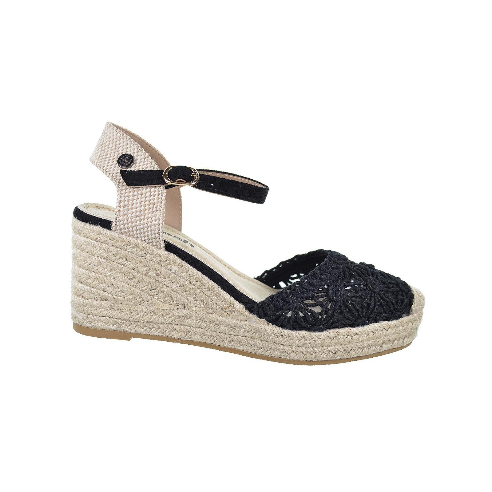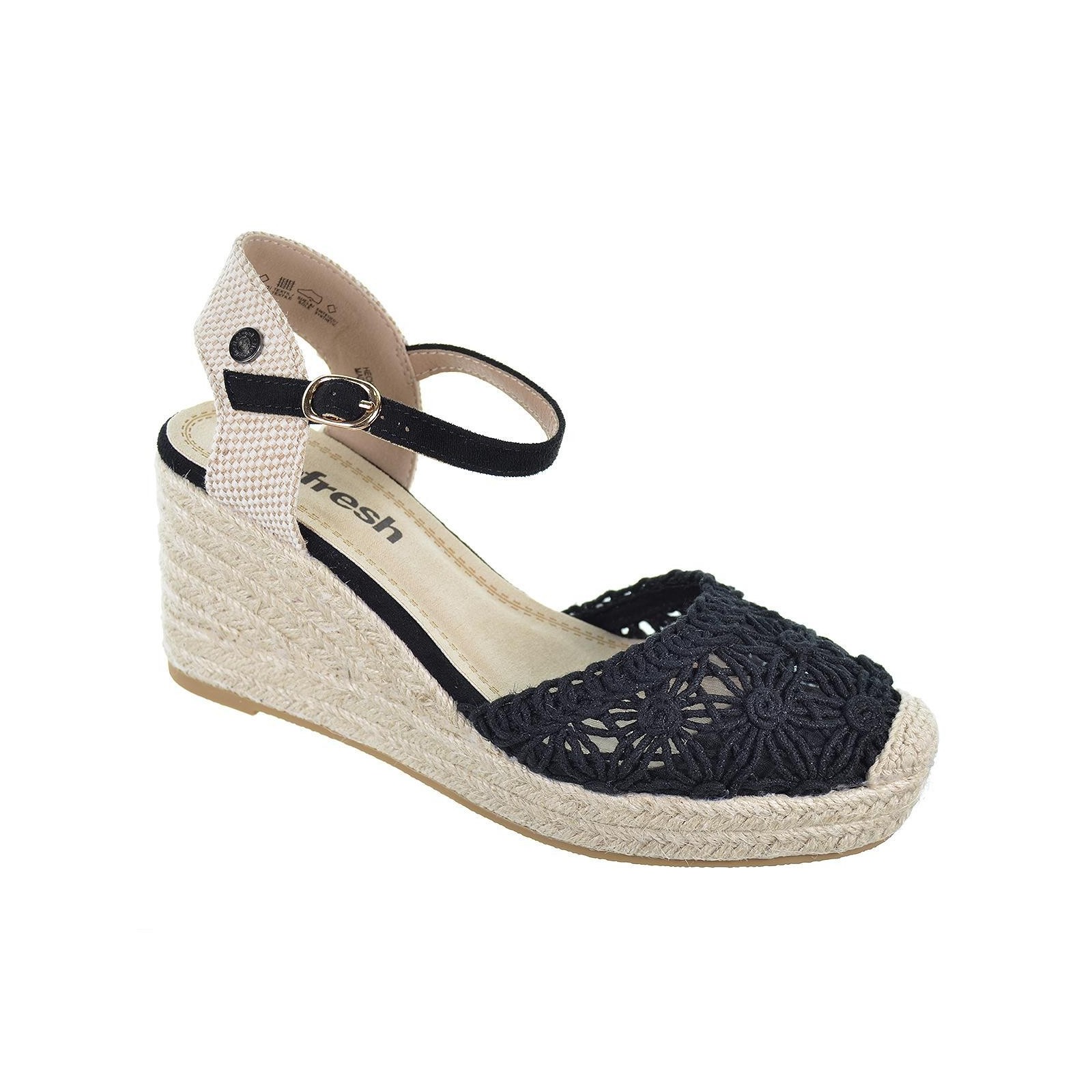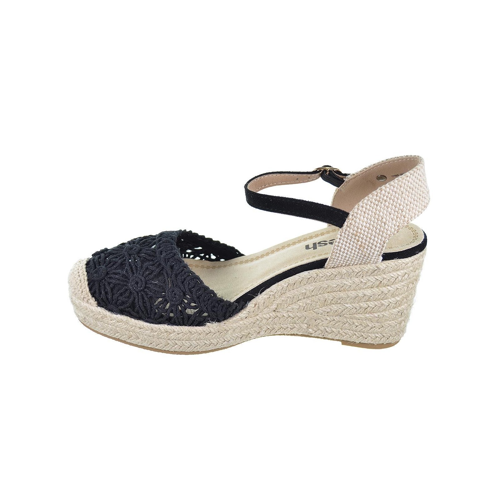 Refresh 171953 Alpargata tipo valenciana en textil estilo crochet. Pulsera al tobillo con hebilla. Cuña de 8 cm de yute y suela de goma antideslizante. Este modelo ha obtenido el certificado vegano por la organización mundial PETA (Organización de los derechos de los animales).