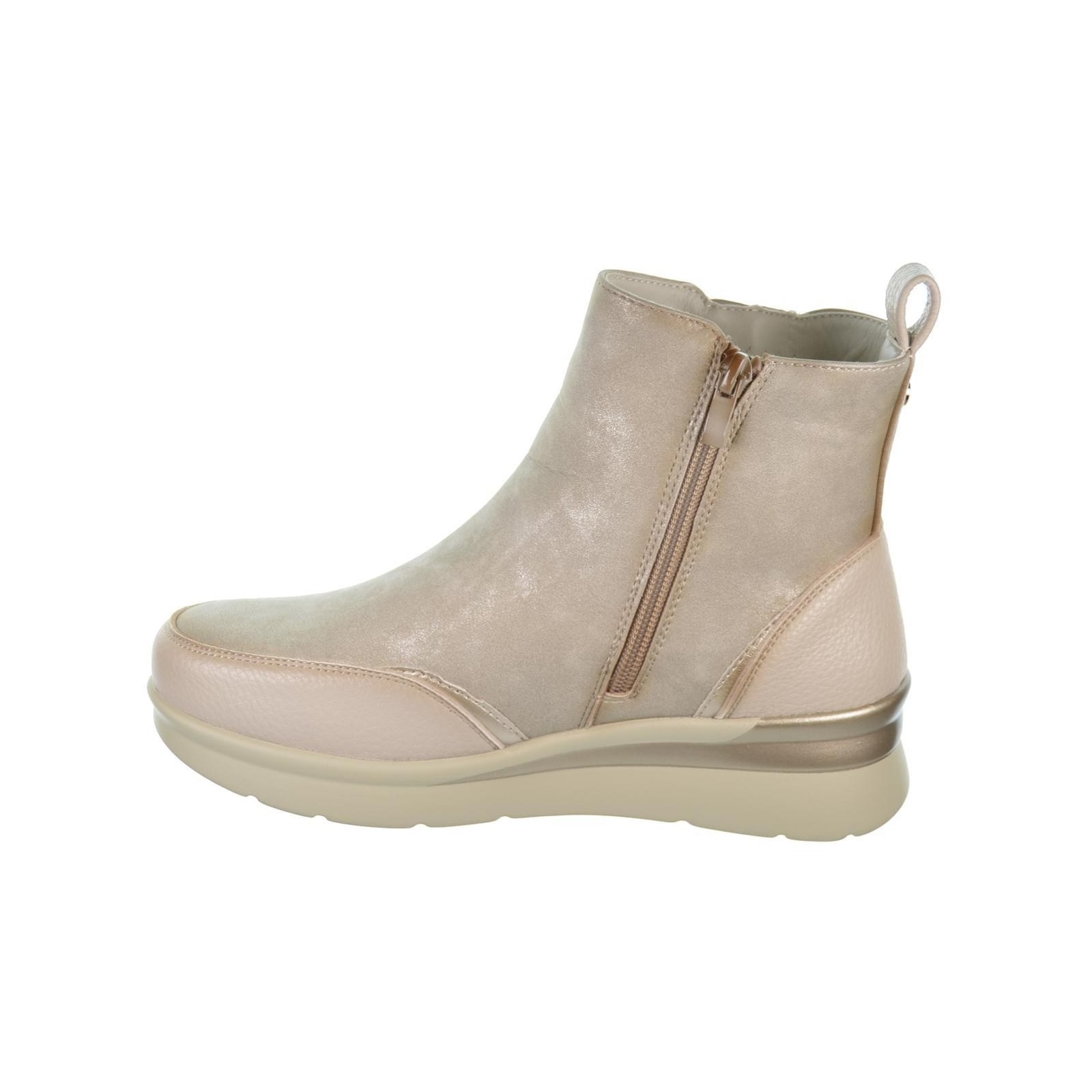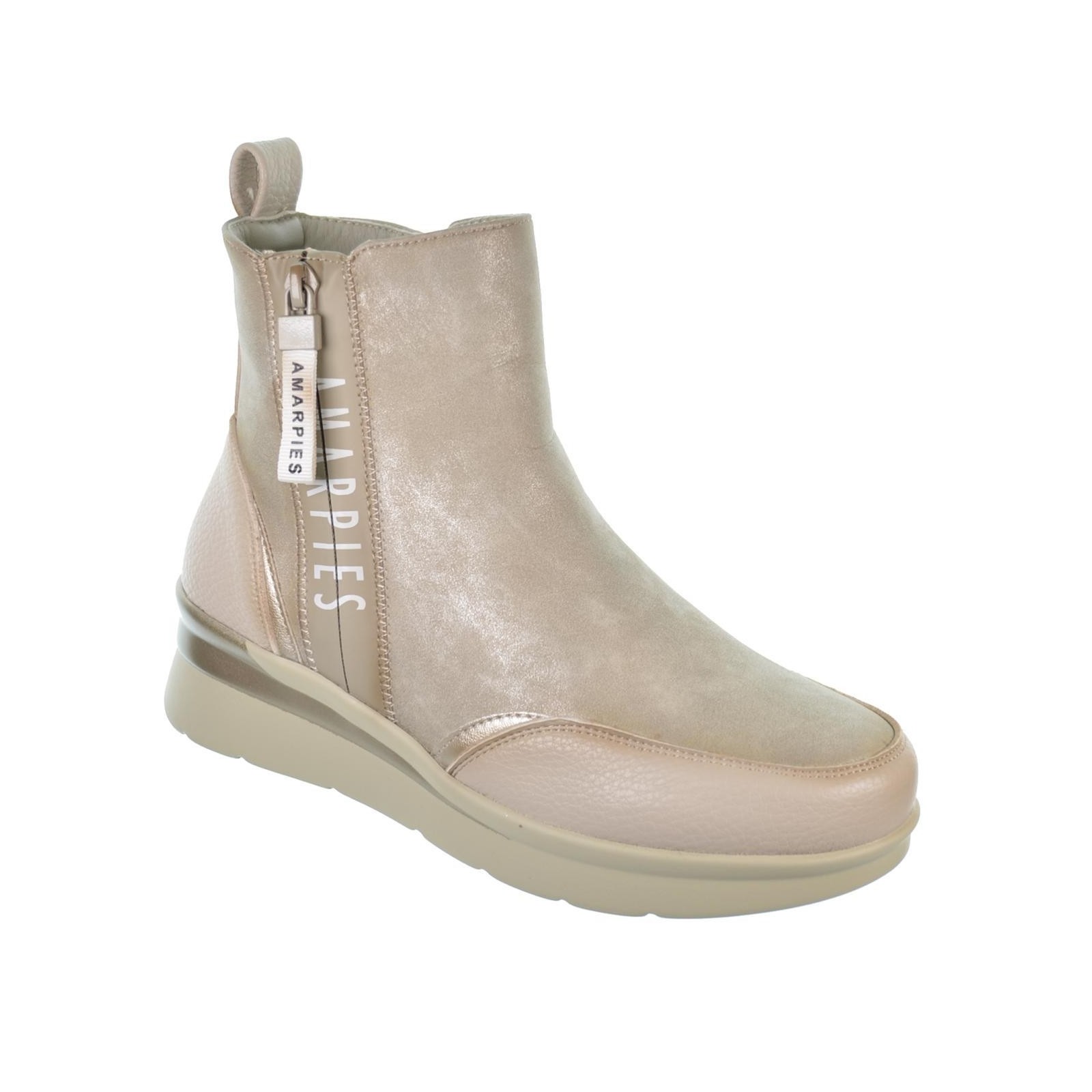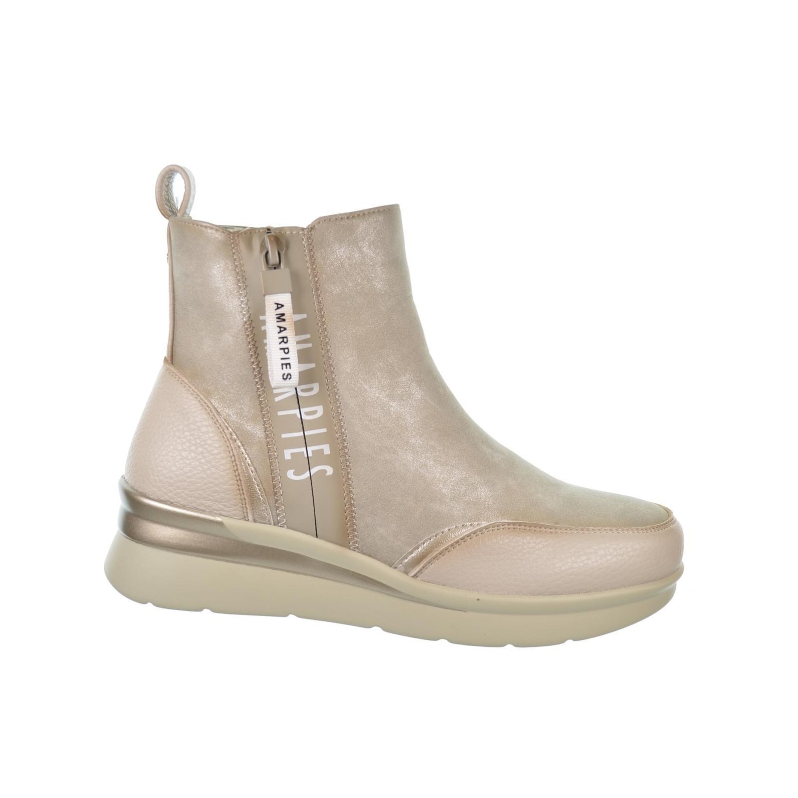 Amarpies 27090 Botín sintético. Forro interior pelo textil muy suave y plantilla textil acolchada confort extraíble. Cierre con cremallera interior y otra exterior decorativa.. Suela de poliuretano con cuña muy ligera y flexible.Un diseño perfecto para llevar tus pies calentitos en los días fríos de invierno y caminar al máximo confort.