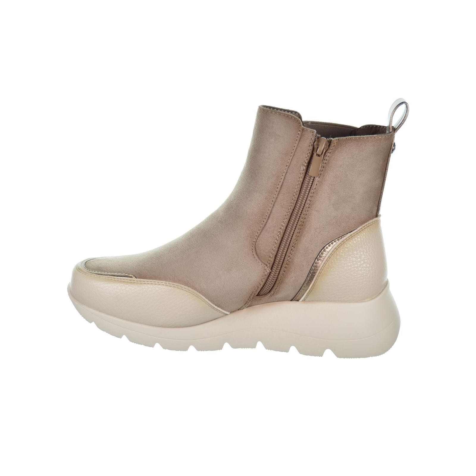 Amarpies 27097 Botín sintético y textil. Forro interior y plantilla textil acolchada confort extraíble. Cierre con cremallera interior y elástico lateral exterior.. Suela de goma con cuña muy ligera y flexible.Un diseño perfecto para tu día a día, con el que podrás caminar al máximo confort.