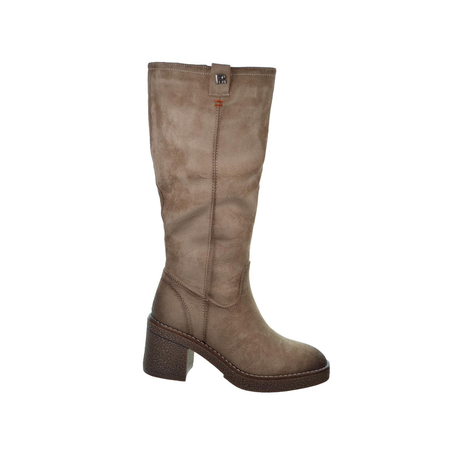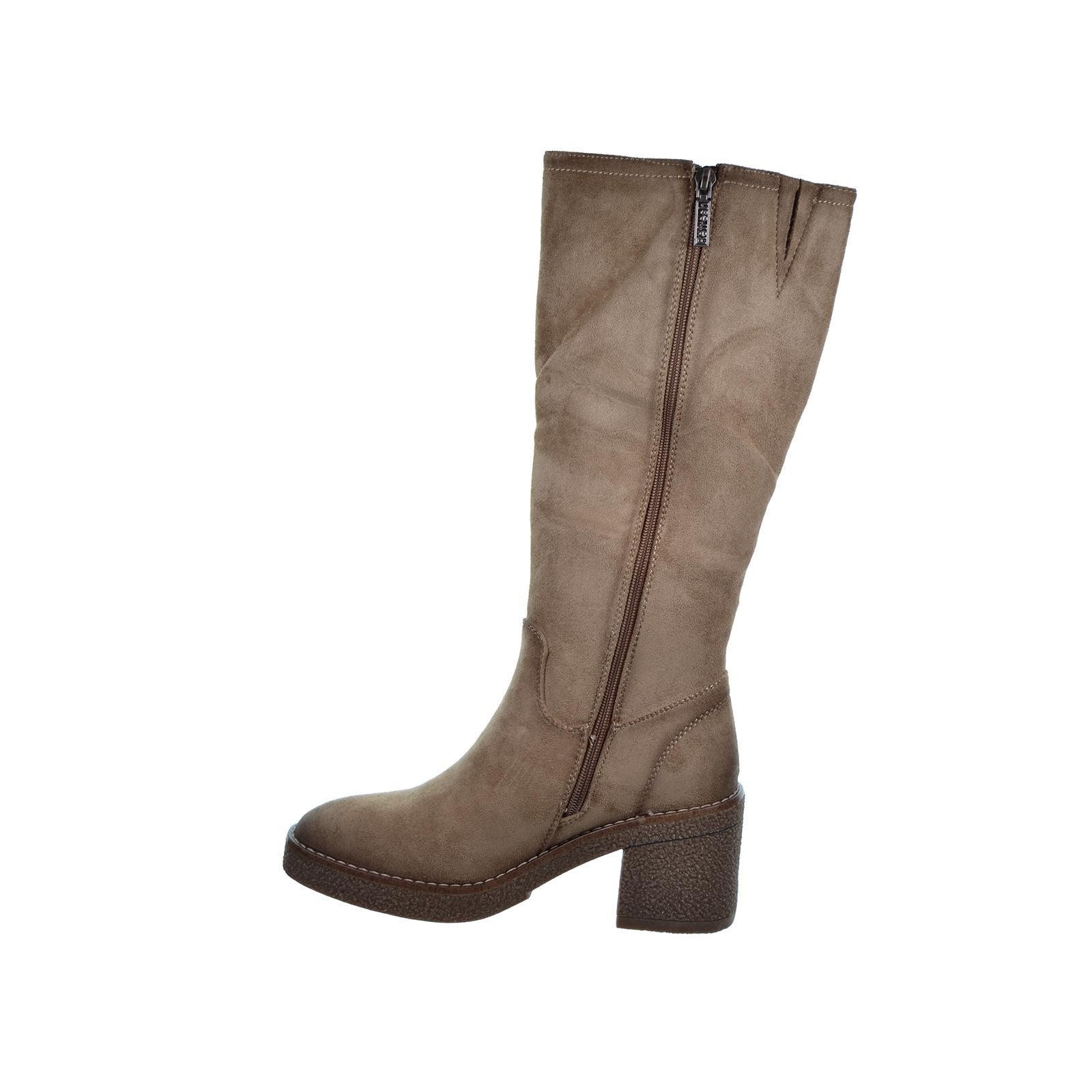 171296 Refresh. Bota antelina, forro interior en textil. Cierre con cremallera interior. Piso de goma con tacón ancho de 7cm. antideslizante. Un estilo para ir a la moda y combinar con tu outfit este invierno.