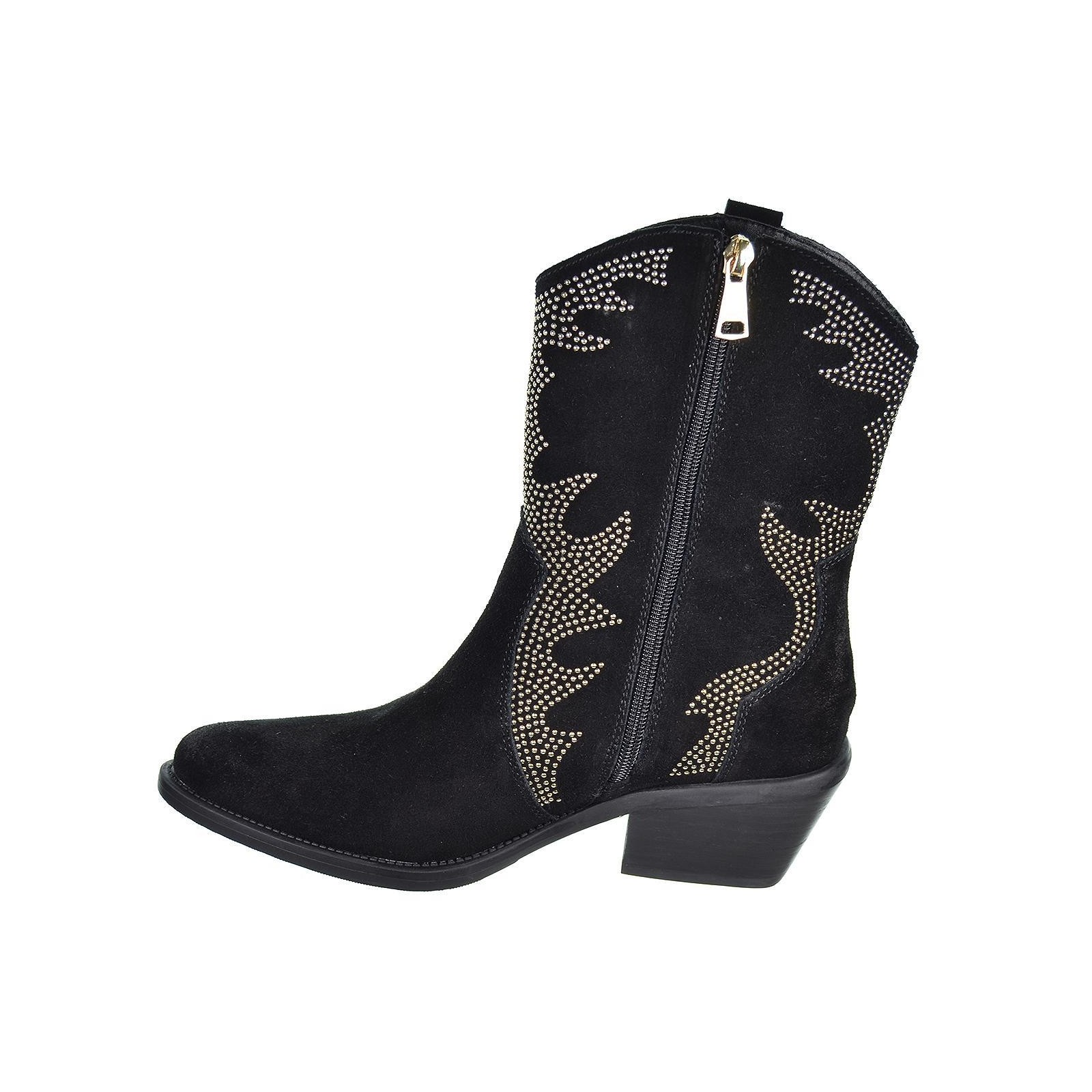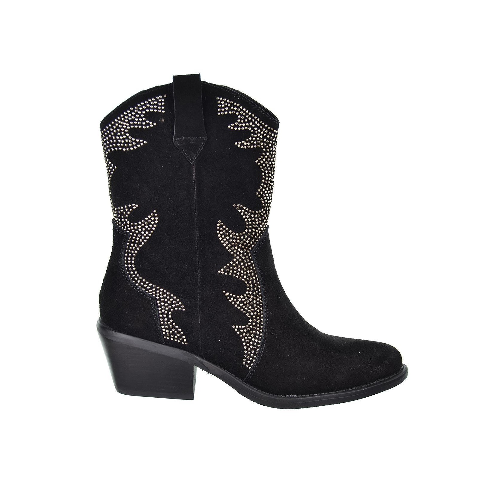 23873 Top3 Botín campero en piel serraje con remaches, forro interior textil y cremallera interior. Piso con tacón campero de 4cm de altura. Ideales para combinar con tu outfit.