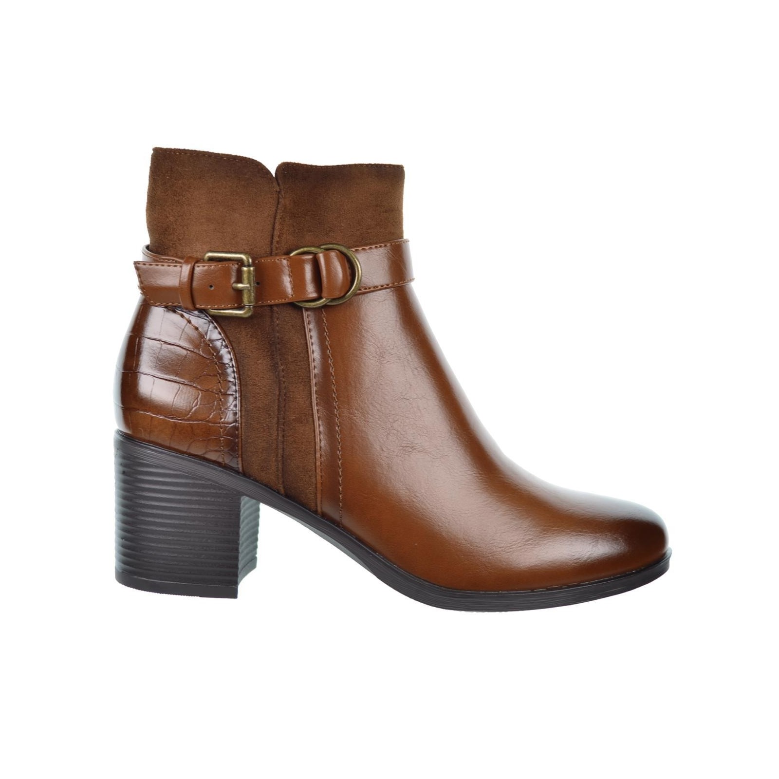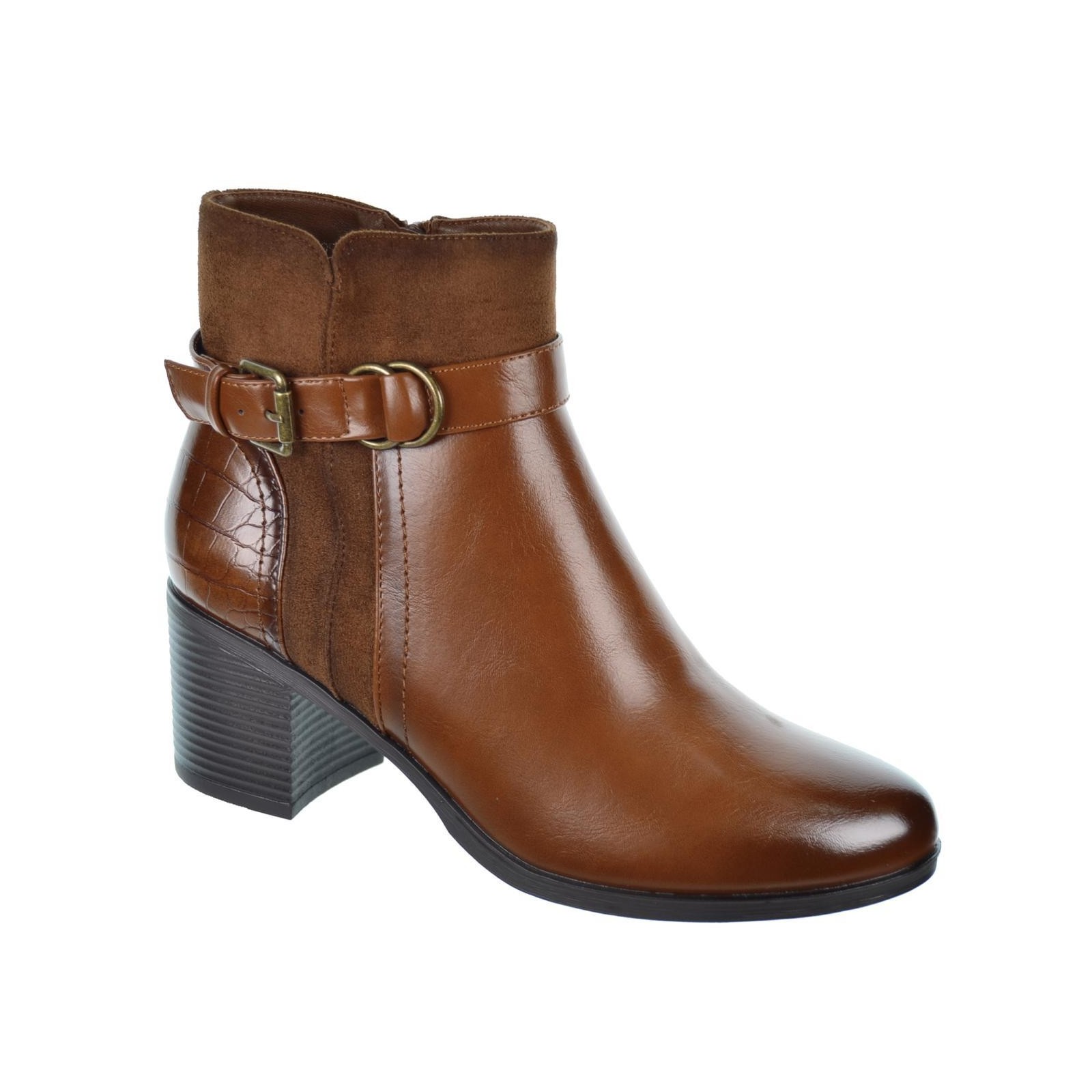 Amarpies 27295 Botín sintético y antelina. Forrado interior textil acolchado y plantilla acolchada en sintético. Cierre con cremallera interior. Piso de goma antideslizante y tacón ancho con altura de 6cm. aprox.Por su comodidad, ligereza y flexibilidad, son los botines ideales para tu día a día.