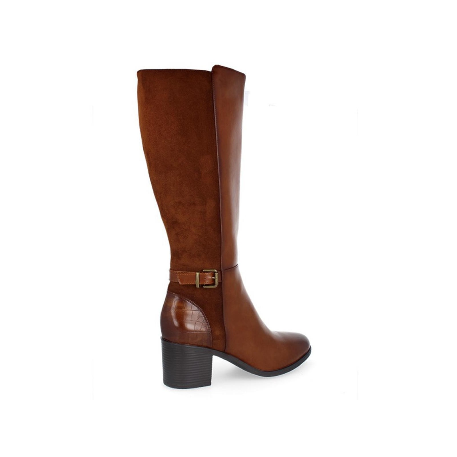 Amarpies 27296 Bota en material sintético y antelina. Forrado interior textil y plantilla sintético acolchado. Cierre con cremallera interior y elástico para un ajuste perfecto. Piso de goma antideslizante con tacón ancho de 6cm de altura.Tus botas de última tendencia que no puede faltar en tu outfit este invierno.