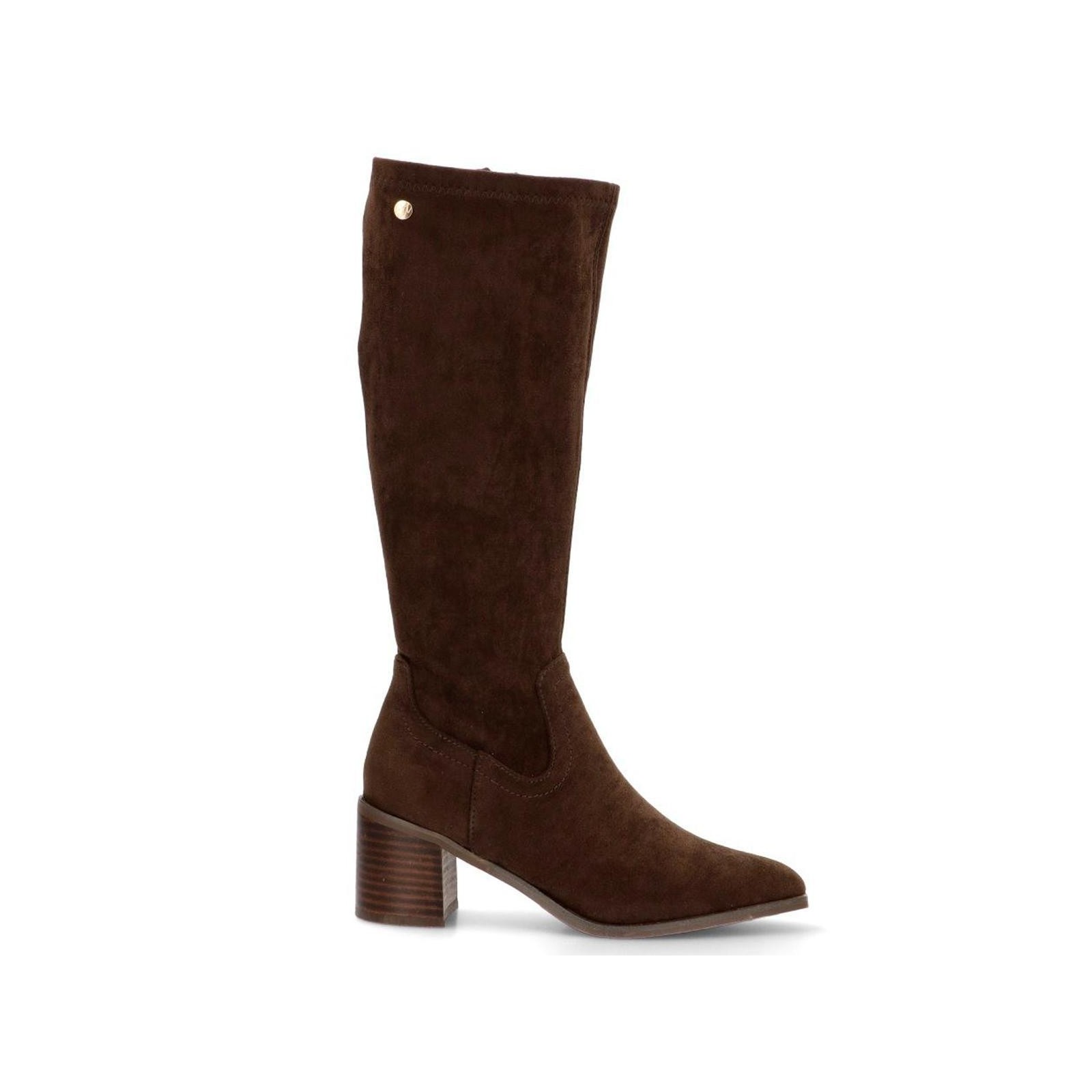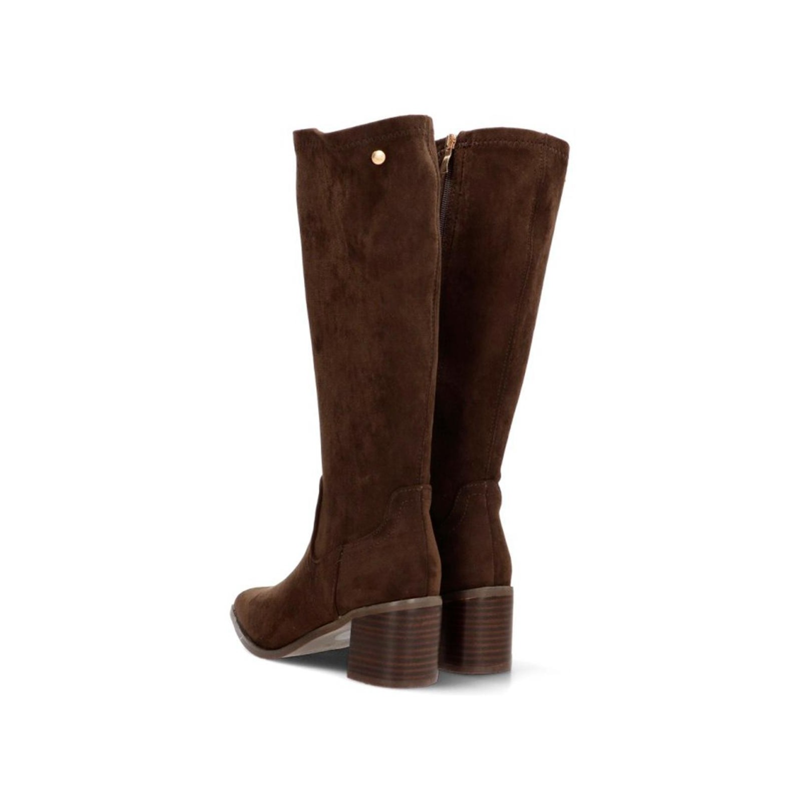 Isteria 580 Bota antelina con licra, forrado en textil y cierre con cremallera interior. Suela de caucho con tacón ancho de 5cm de altura. Un diseño moderno y confortable, ideal para vestir y combinar con tu outfit.