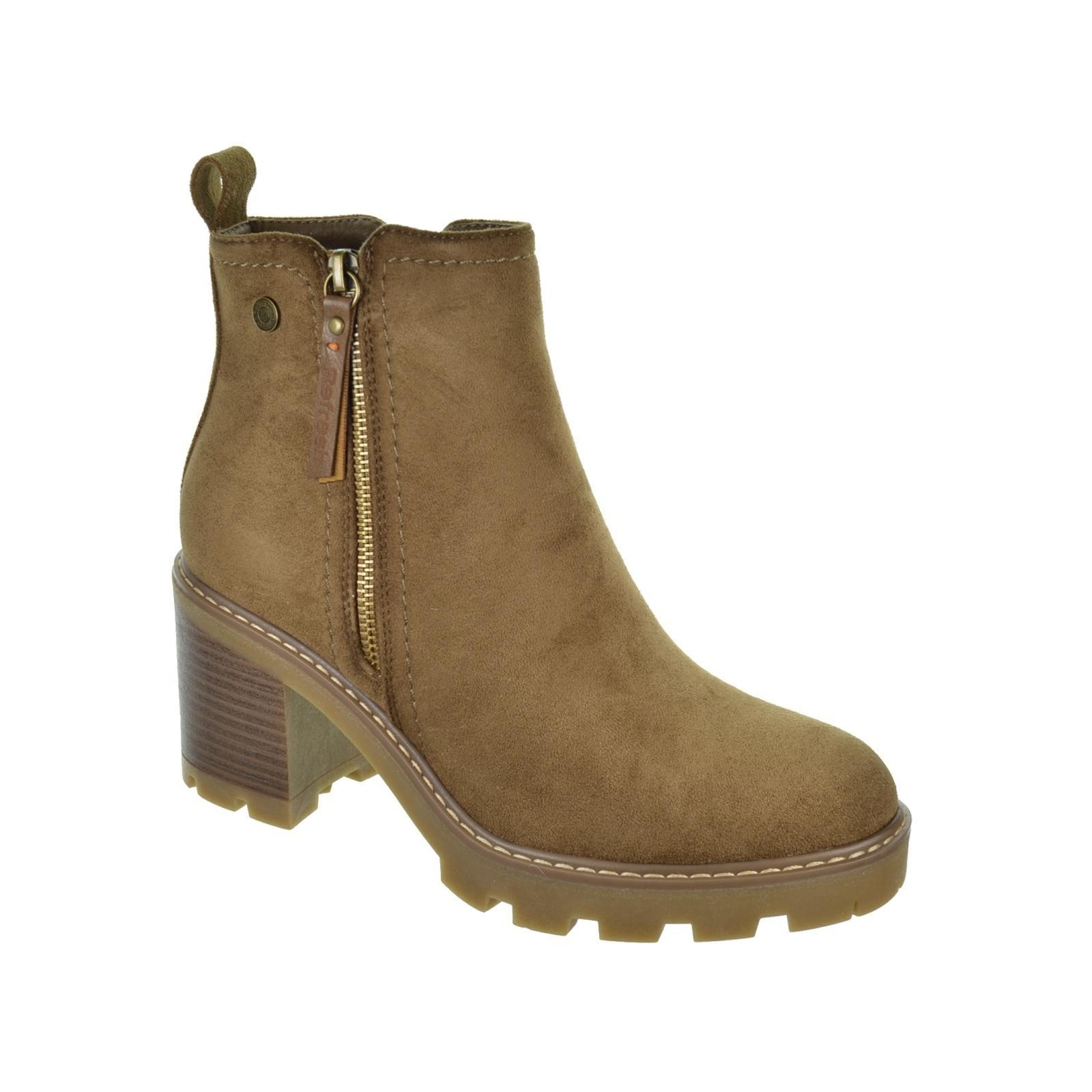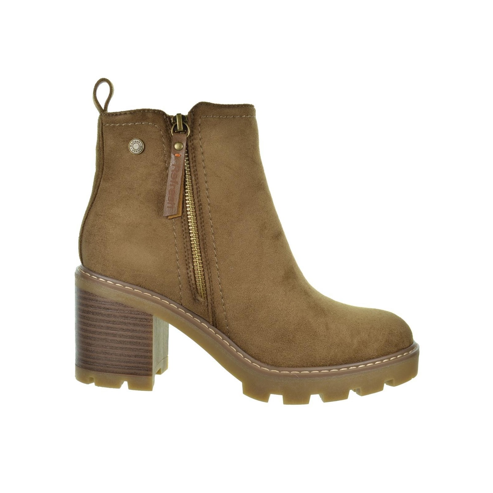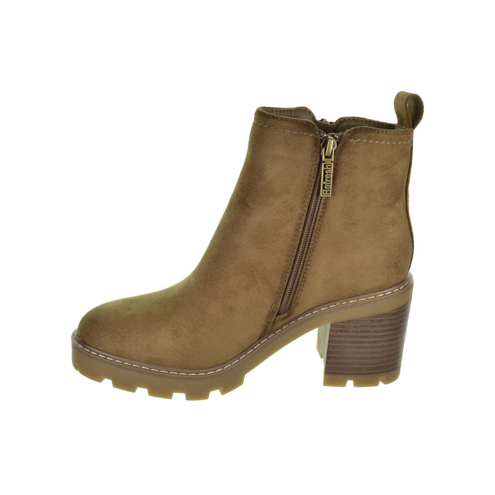 Refresh 172125 Botín en antelina. Forrado interior textil y plantilla sintético acolchada. Cierre mediante cremallera lateral interior y cremallera decorativa exterior. Tirador trasero para facilitar la puesta. Suela de goma antideslizante con tacón ancho de 6cm y plataforma de 2cm. Un básico que no puede faltar en tu armario este invierno. Este modelo ha obtenido el certificado vegano por la organización mundial PETA (Organización de los derechos de los animales).