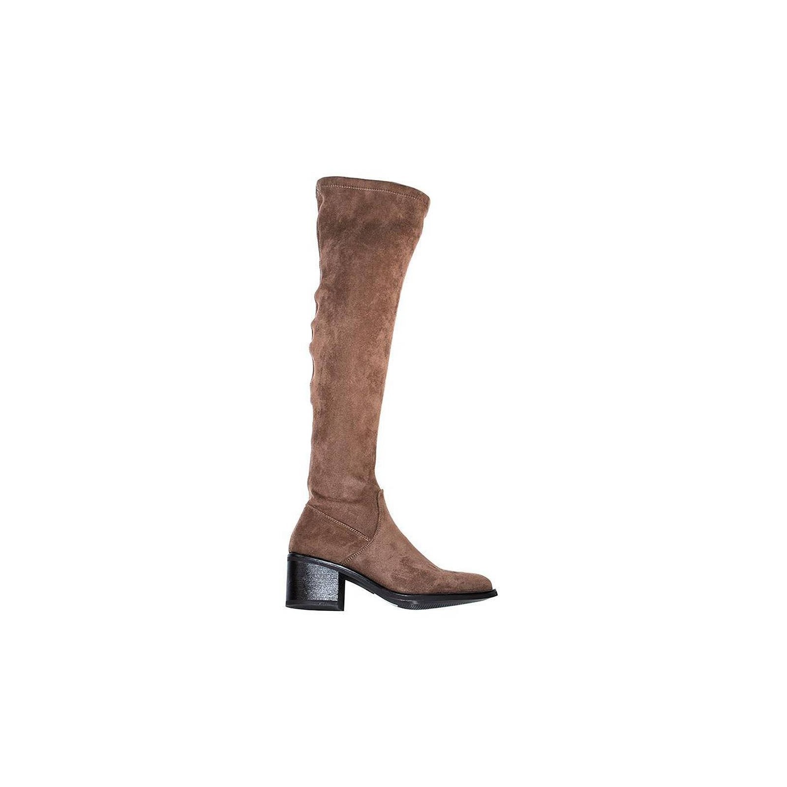 13034 DANGELA. Bota alta en material de antelina con licra, cierre con cremallera interior para un calze perfecto. Piso con tacón ancho de 5cm. aprox. Tus botas con las que marcarás estilo este invierno.