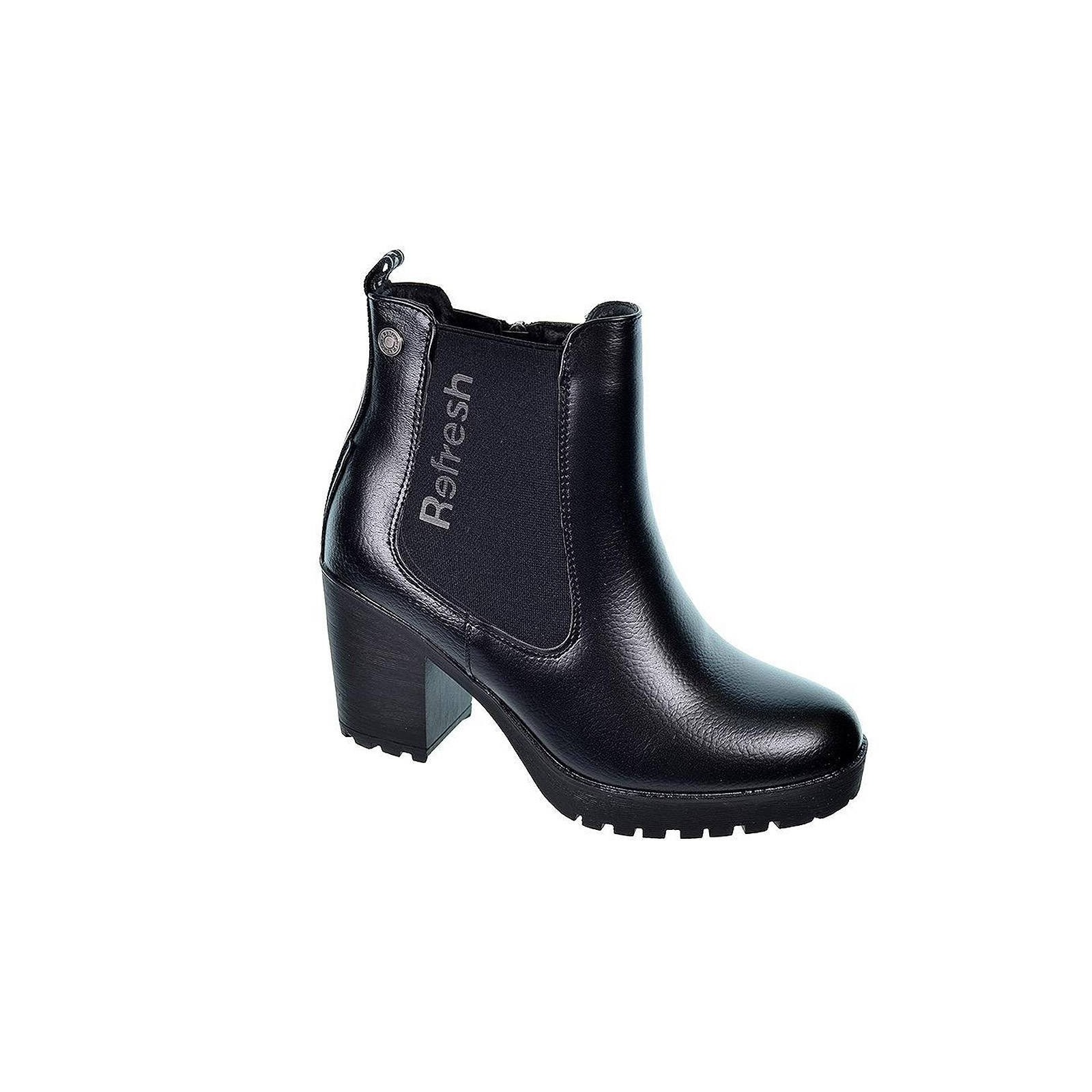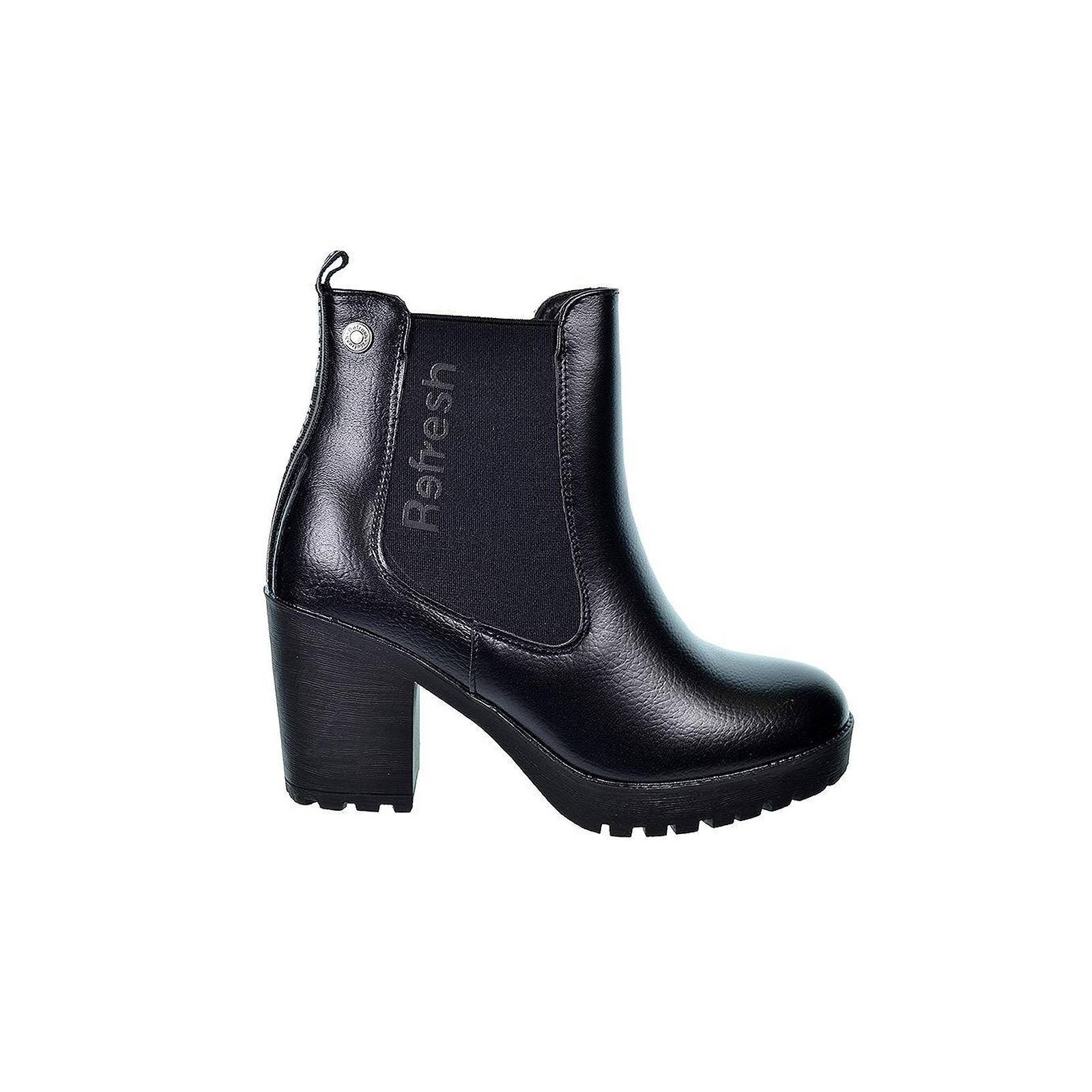 170063 Refresh. Botín en sintético con elástico lateral exterior. Forrado en textil acolchado y cierre con cremallera interior. Suela de goma antideslizante con tacón ancho de 8cm.Un diseño muy cómodo, ideal para combinar con tu outfit.