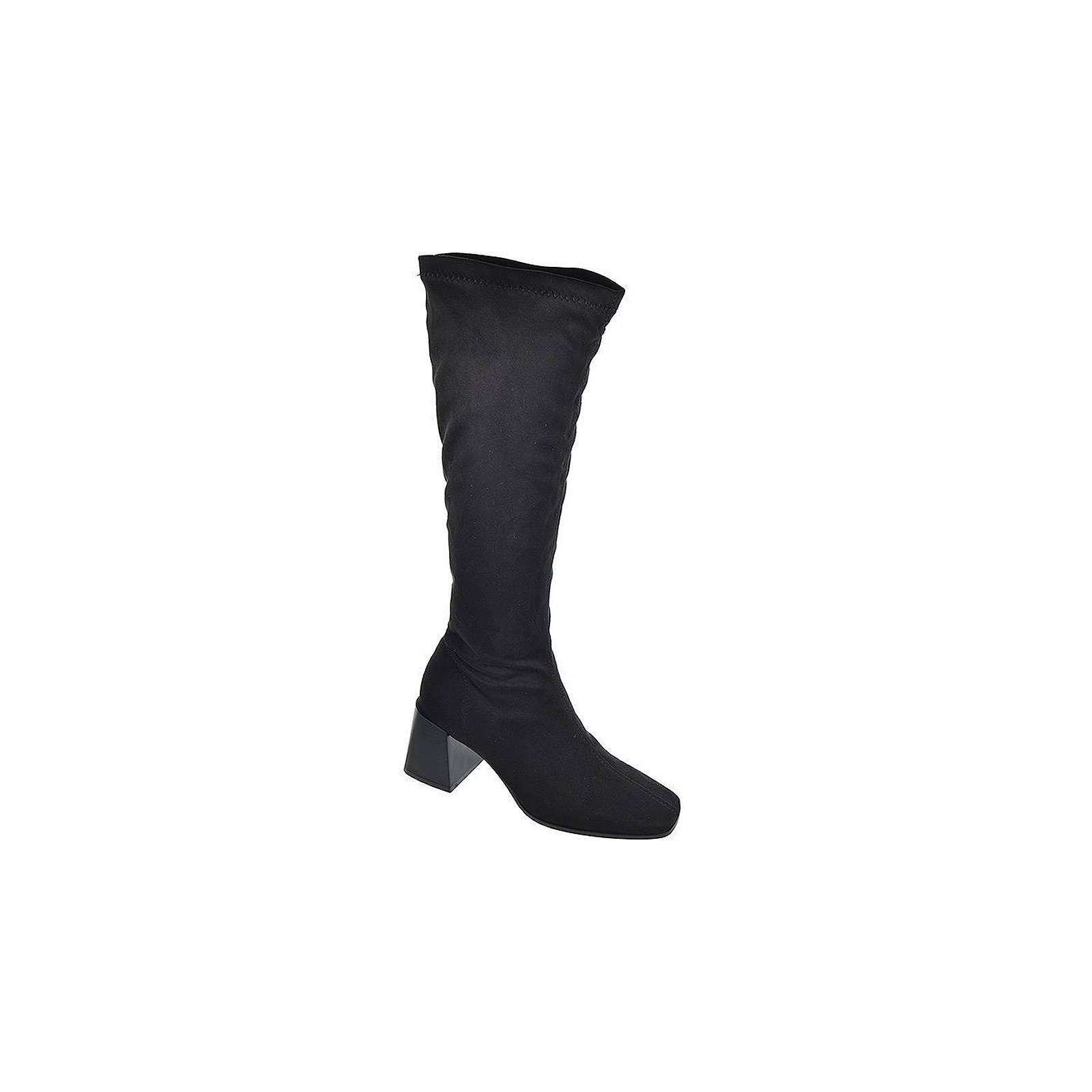 22226 D´Angela. Bota alta en antelina con licra, cierre con cremallera interior para un calze perfecto. Piso de caucho con tacón ancho de 6´5cm. aprox. Tus botas con las que marcarás estilo este invierno.