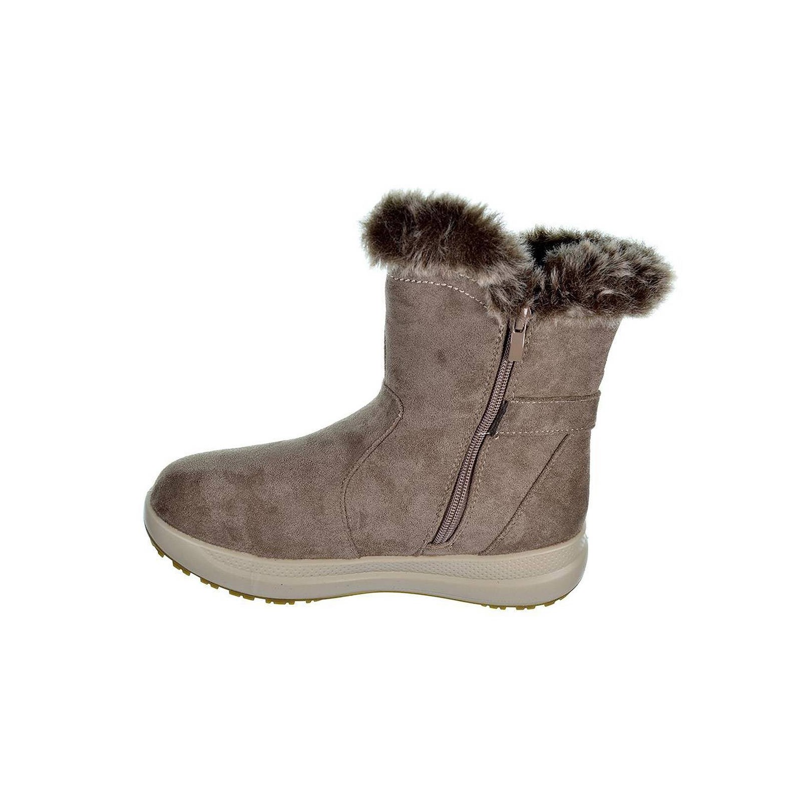 22420 Amarpies. Botín en antelina y caña con collarín de pelo sintético. Forrado de pelo sintético y plantilla acolchado extraíble. Cierre con cremallera interior y piso con plataforma de poliuretano con suela de goma antideslizante, muy ligero y flexible .Tus botines con los que disfrutarás caminando este invierno.