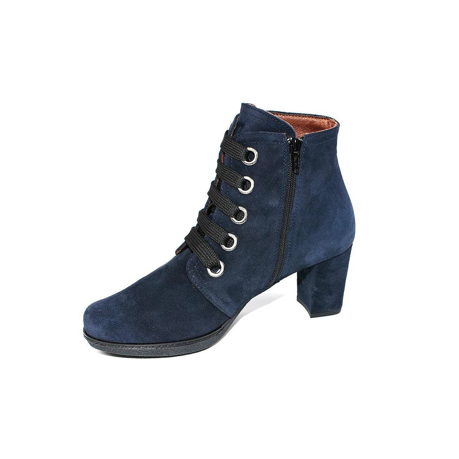 82512 DESIREE. Botín en material de piel serraje. Forro interior en textil, cordones ajustables y cremallera en interior. Dispone de una plantilla comfort para el descanso del metatarso. Piso con plataforma de goma antideslizante, ligera y muy flexible. Tacón ancho con altura de 6cm.aprox.Por su comodidad y versatilidad serán los elegidos para un look elegante.