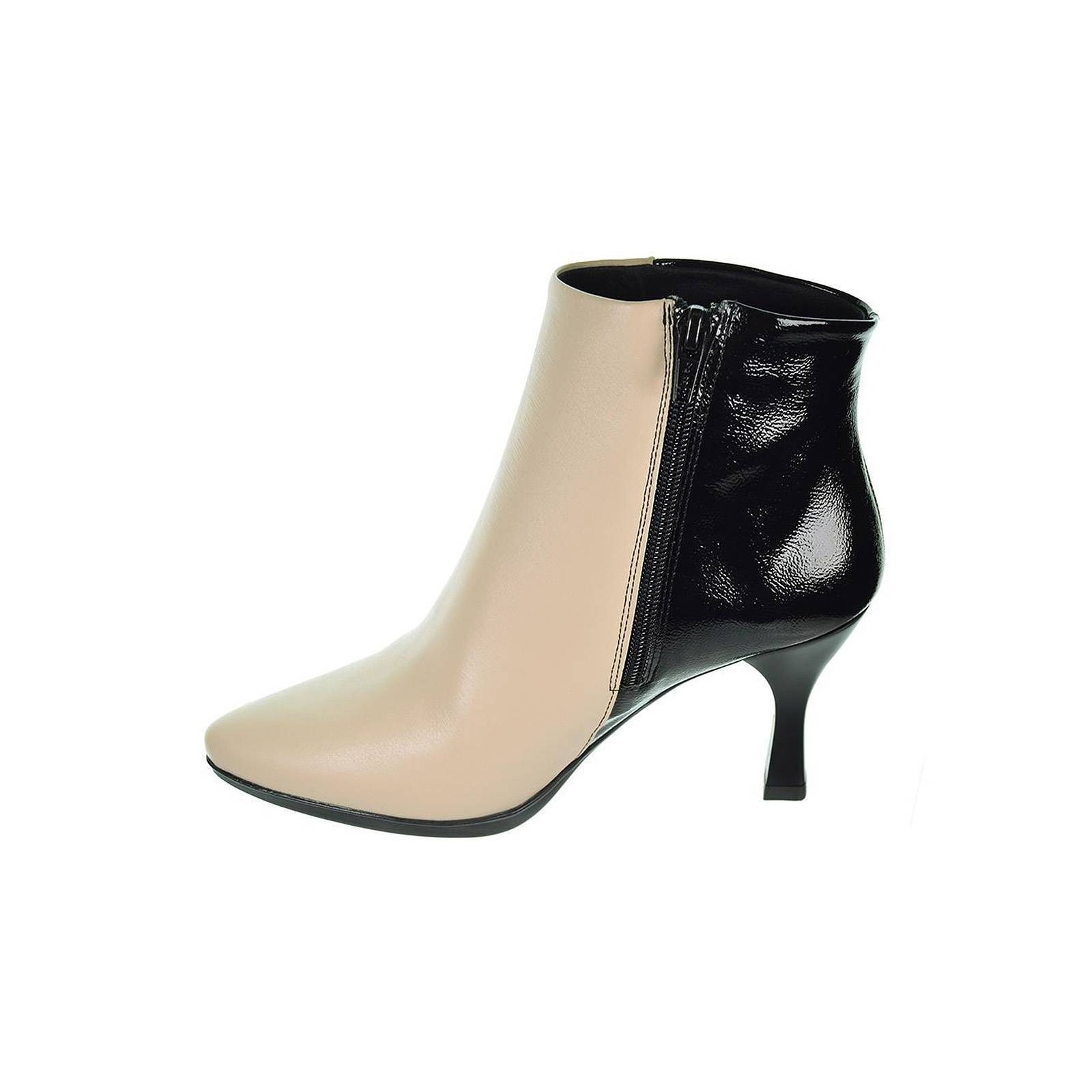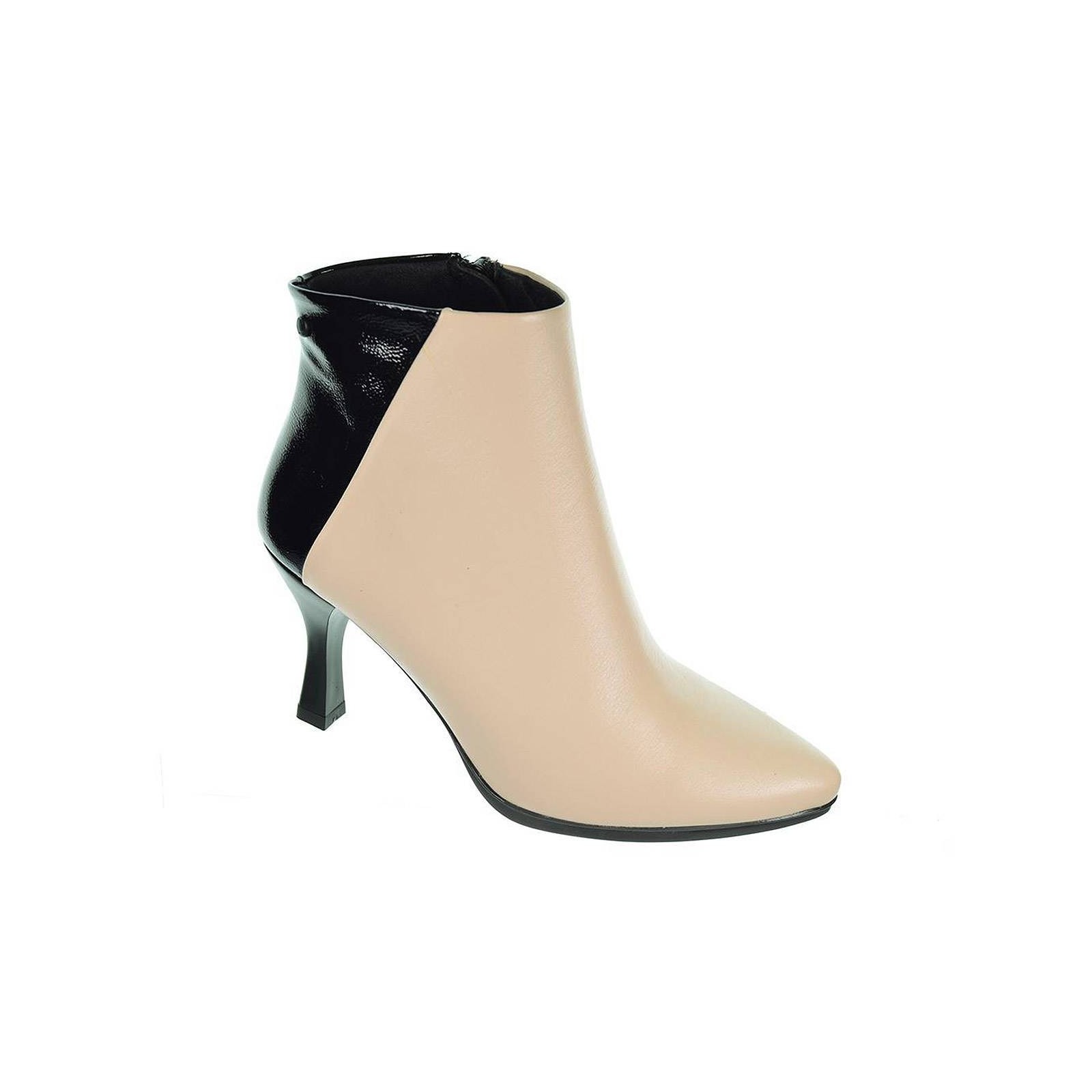 Sari19 Desireé. Botín en piel con talón en charol. Plantilla en piel acolchada transpirable y ergonómica. Tacón de 7´5cm de altura con piso de goma de 1cm antideslizante. Ya puedes disfrutar de un calzado elegante y cómodo, que no puede faltar en tu outfit.