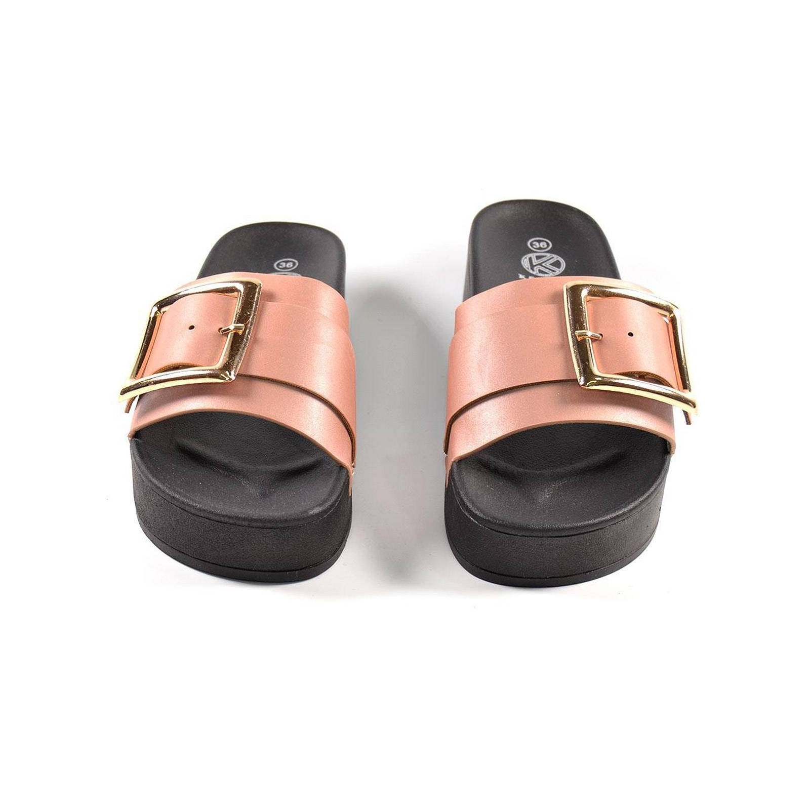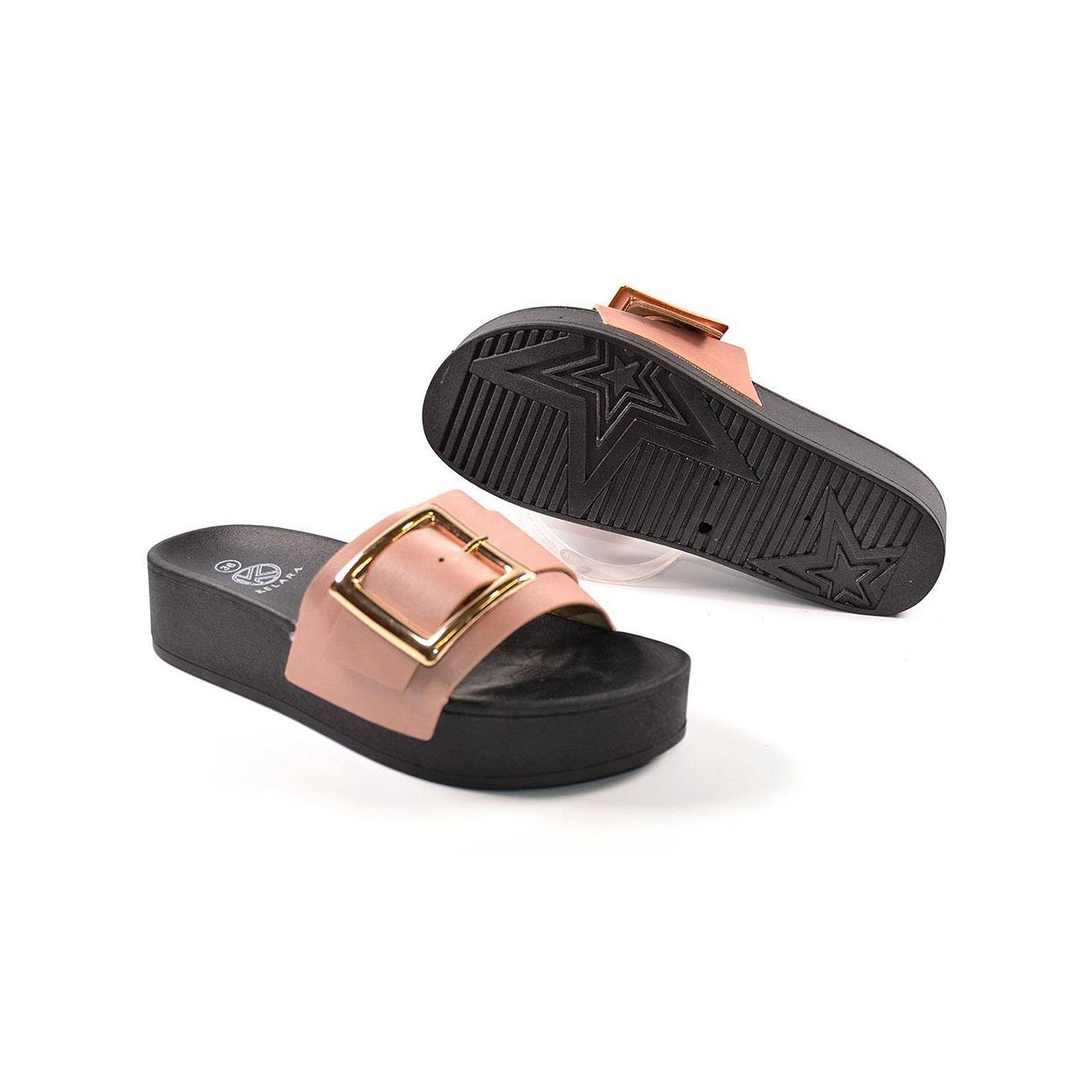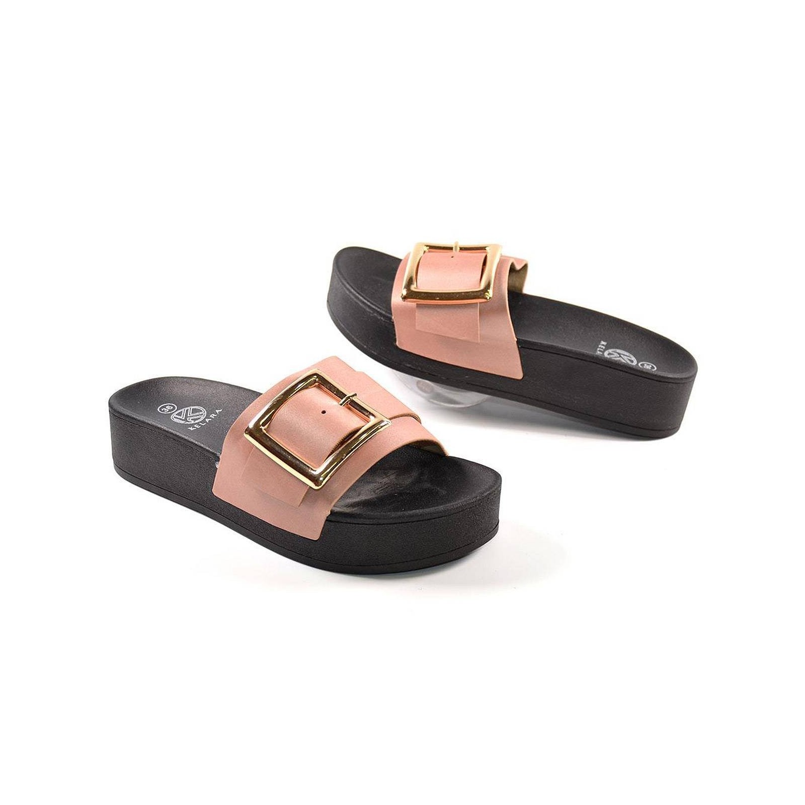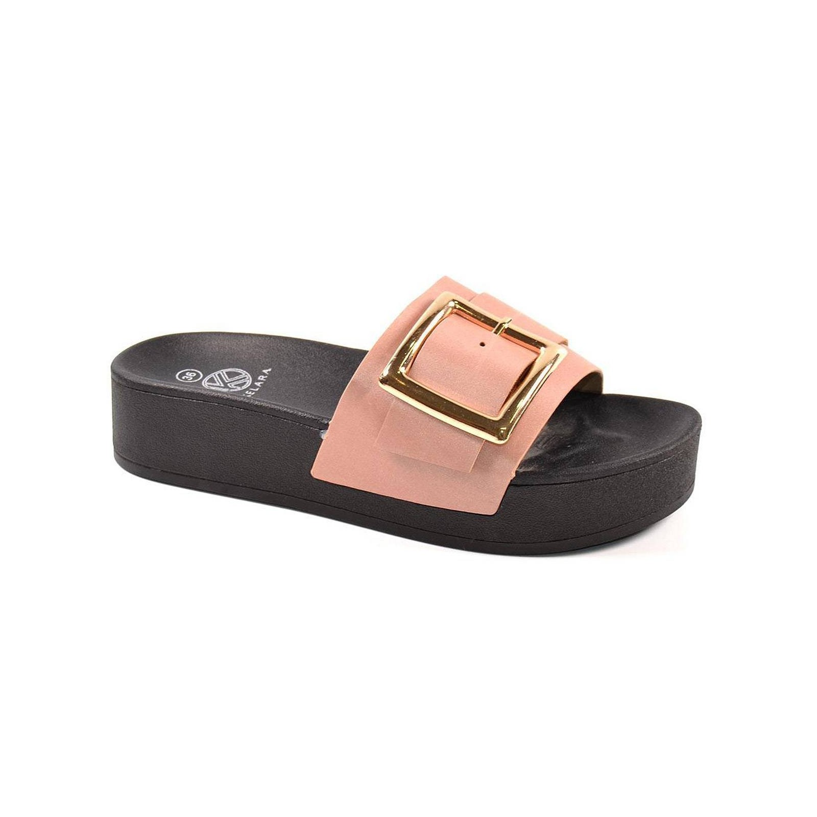 12029 KELARA. Sandalia Zueco material sintético, con adorno de hebilla en pala y piso de plataforma en PU. antideslizante, muy ligero. Un estilo muy versátil, con el que podrás ir a la playa o dar largos paseos este verano.