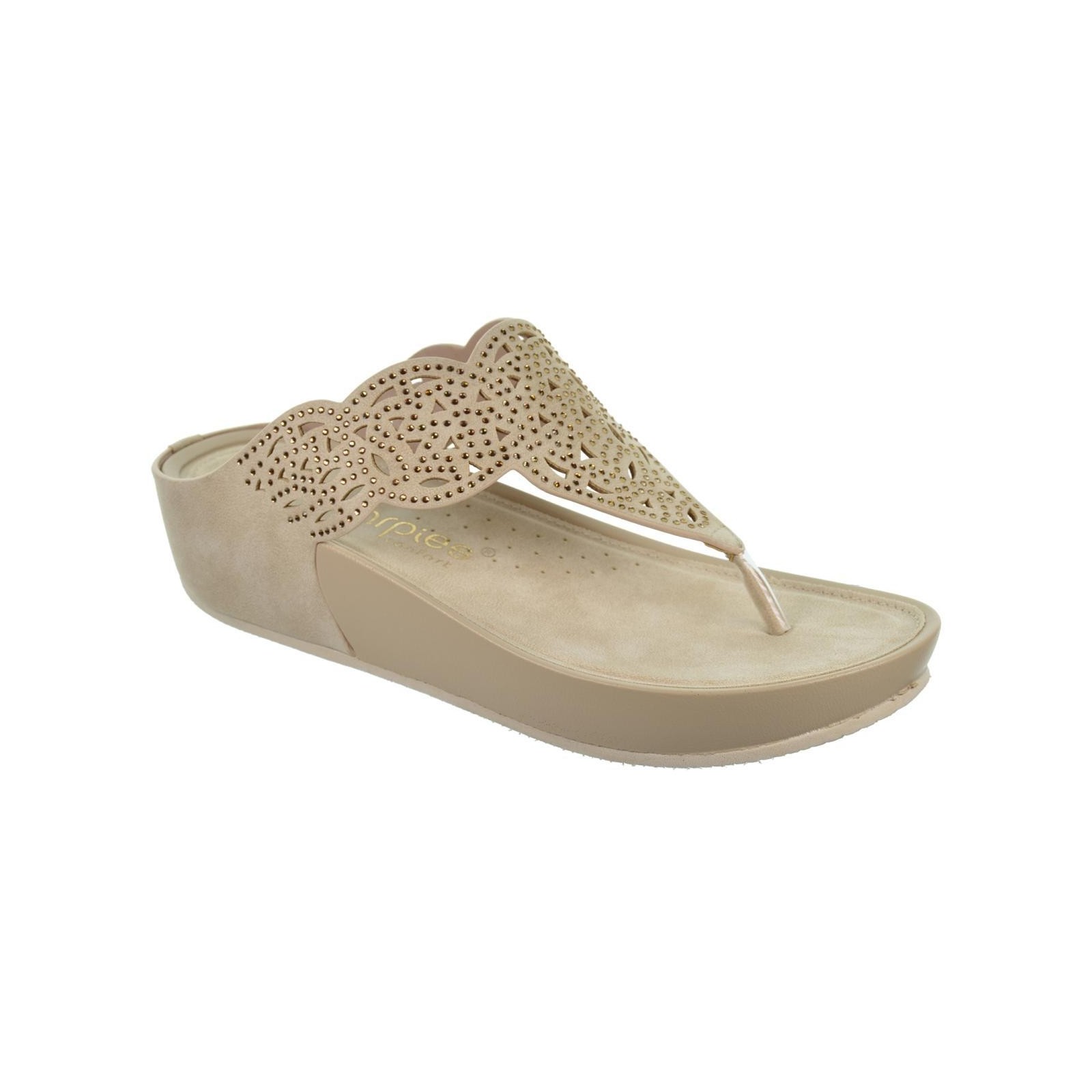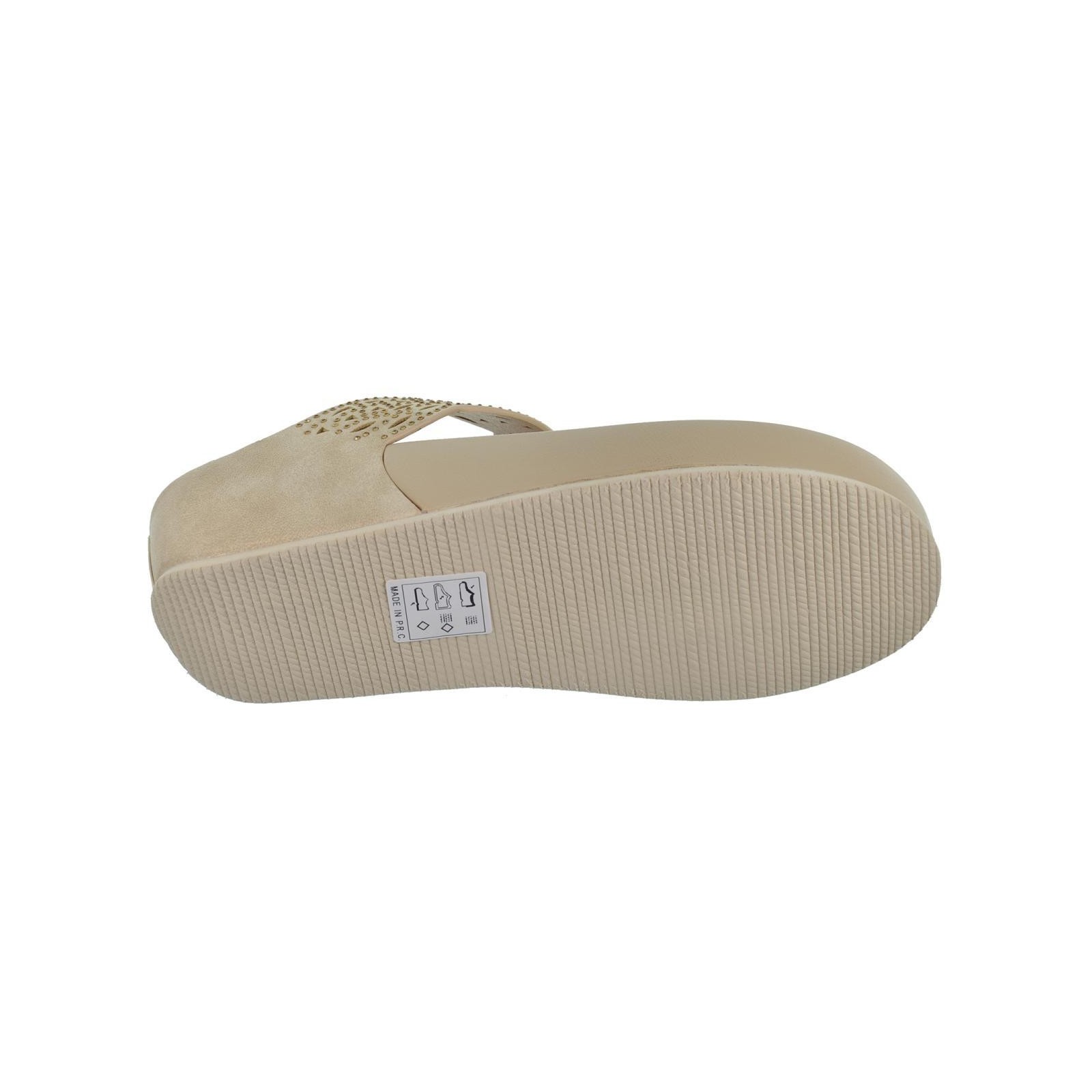 Amarpies 28663 Sandalia estilo esclava en textil perforado y decoración con pedreria. Planta textil muy confortable y forro en sintético. Suela en poliuretano con cuña de 4cm. y plataforma de 2´5cm de altura.Ideales para el día a día.