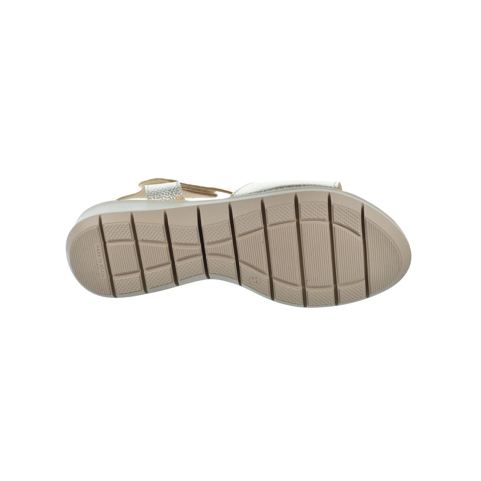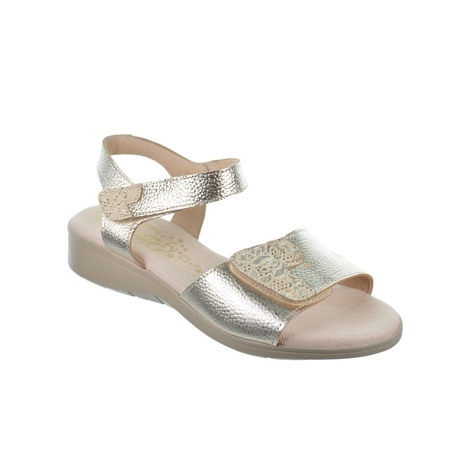 Duendy 3781 Sandalia de piel metalizada con forro interior en piel y plantilla de piel memory gel, muy confortable. Cierre con velcro ajustable y piso con cuña de goma antideslizante.Ideal para pies delicados, por su comodidad y flexibilidad.