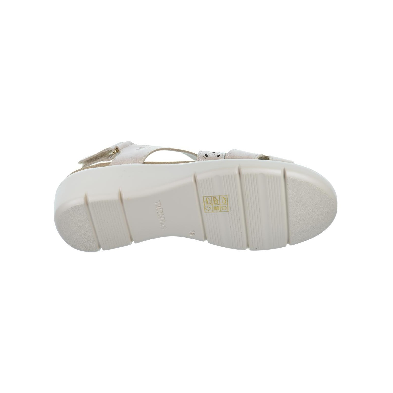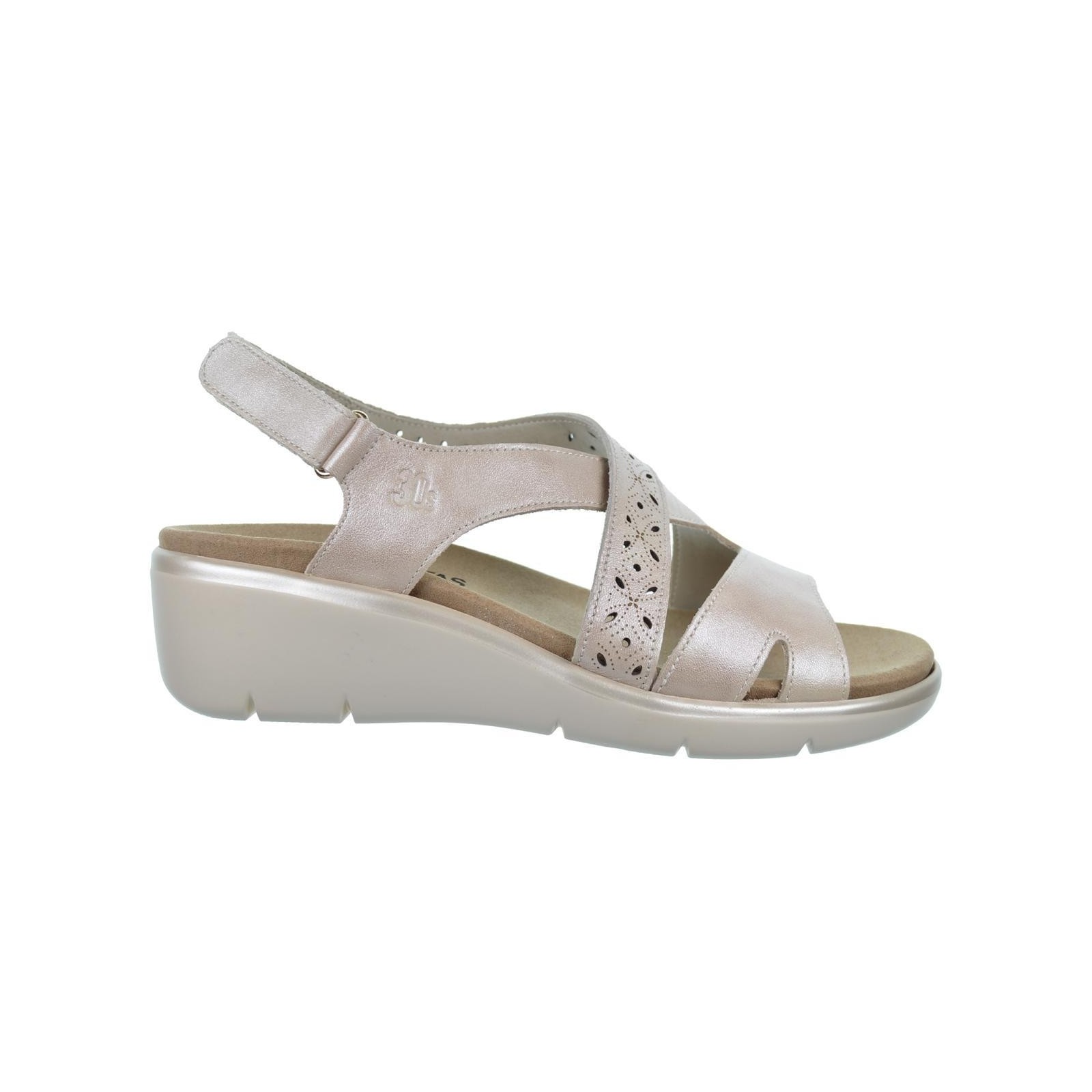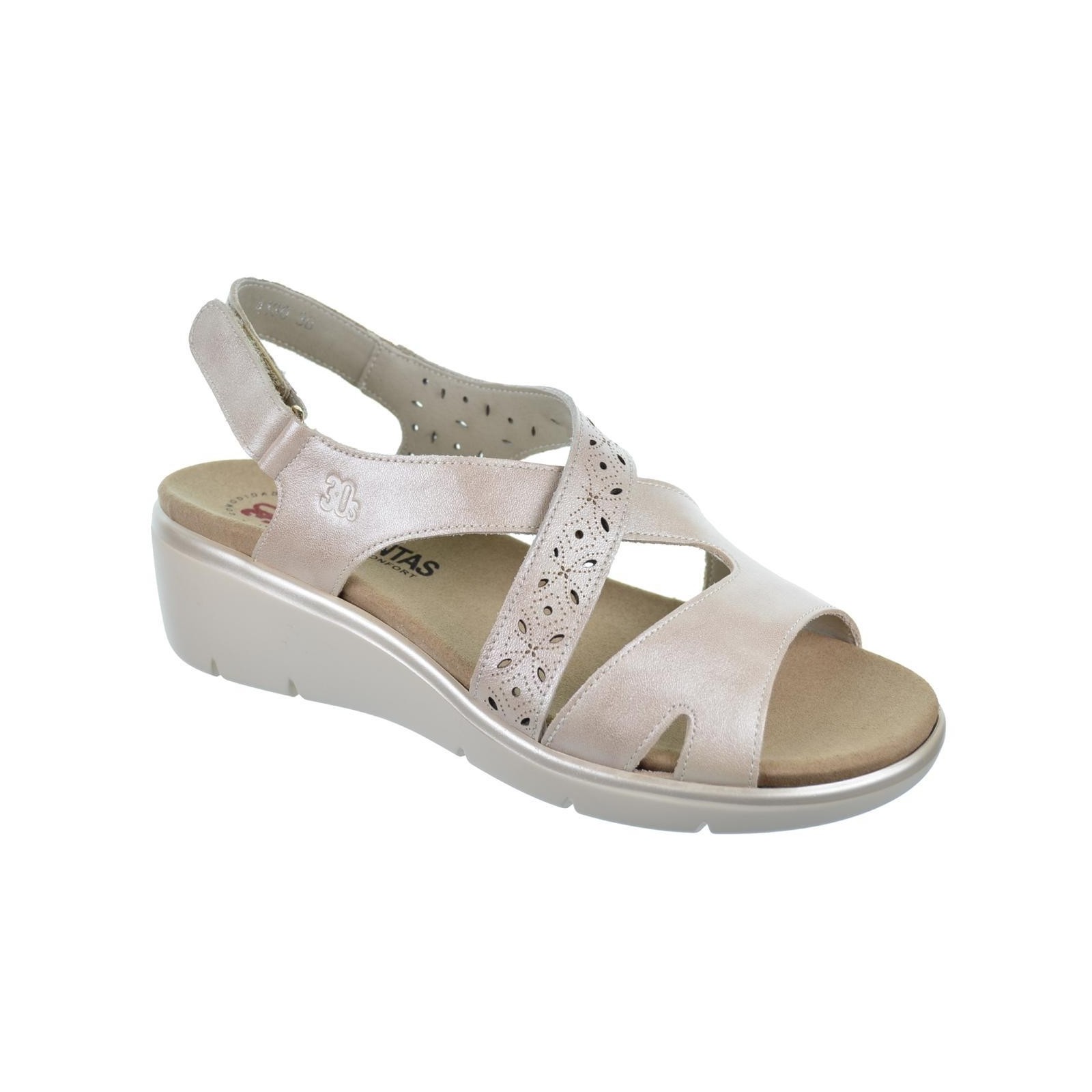 30S Treintas 4130 Sandalia confort en material de piel con tira perforada. Cierre con velcro regulable y plantilla textil extraíble muy confortable. Piso con cuña de 4,5cm. de altura, muy ligero y flexible. Ideales para pies delicados.