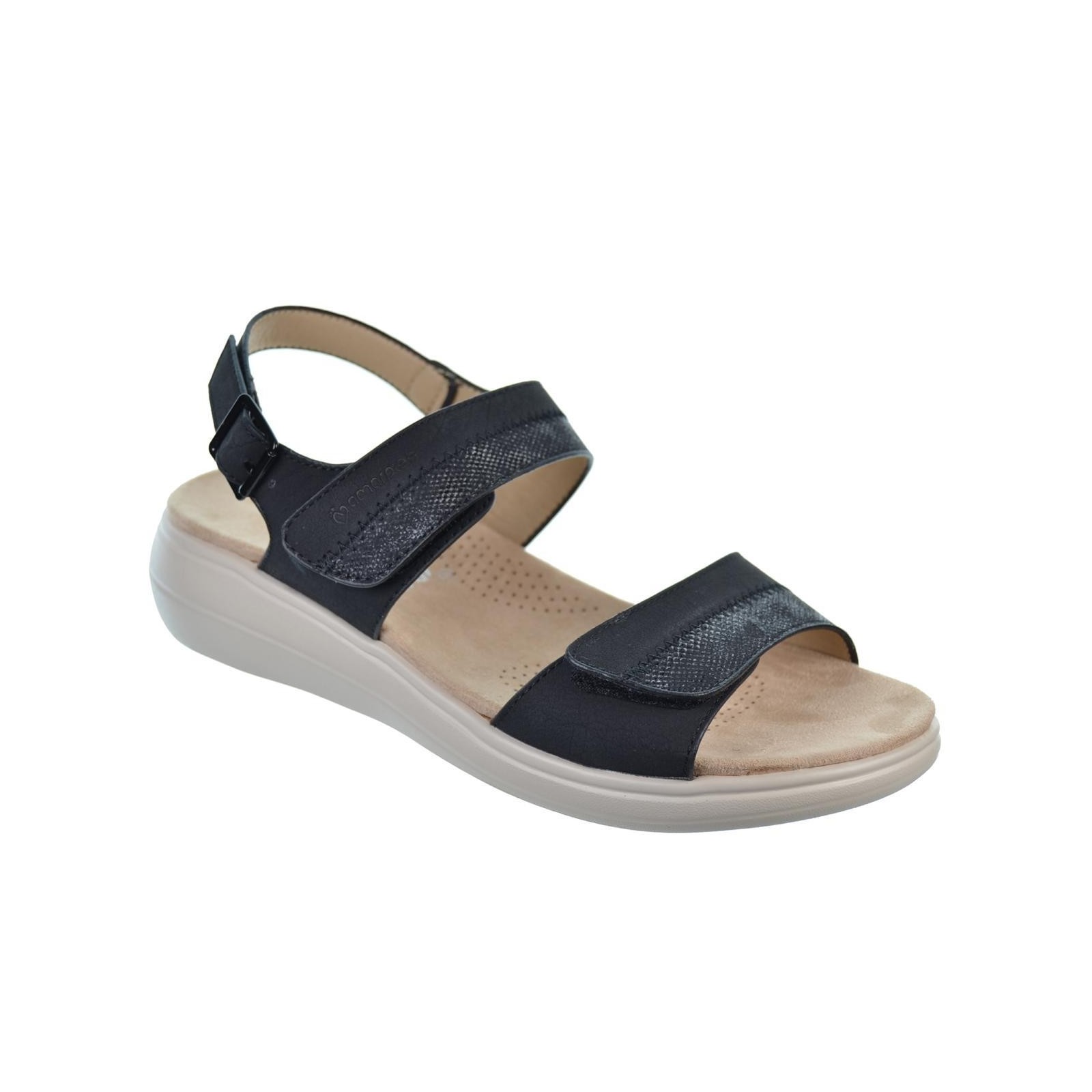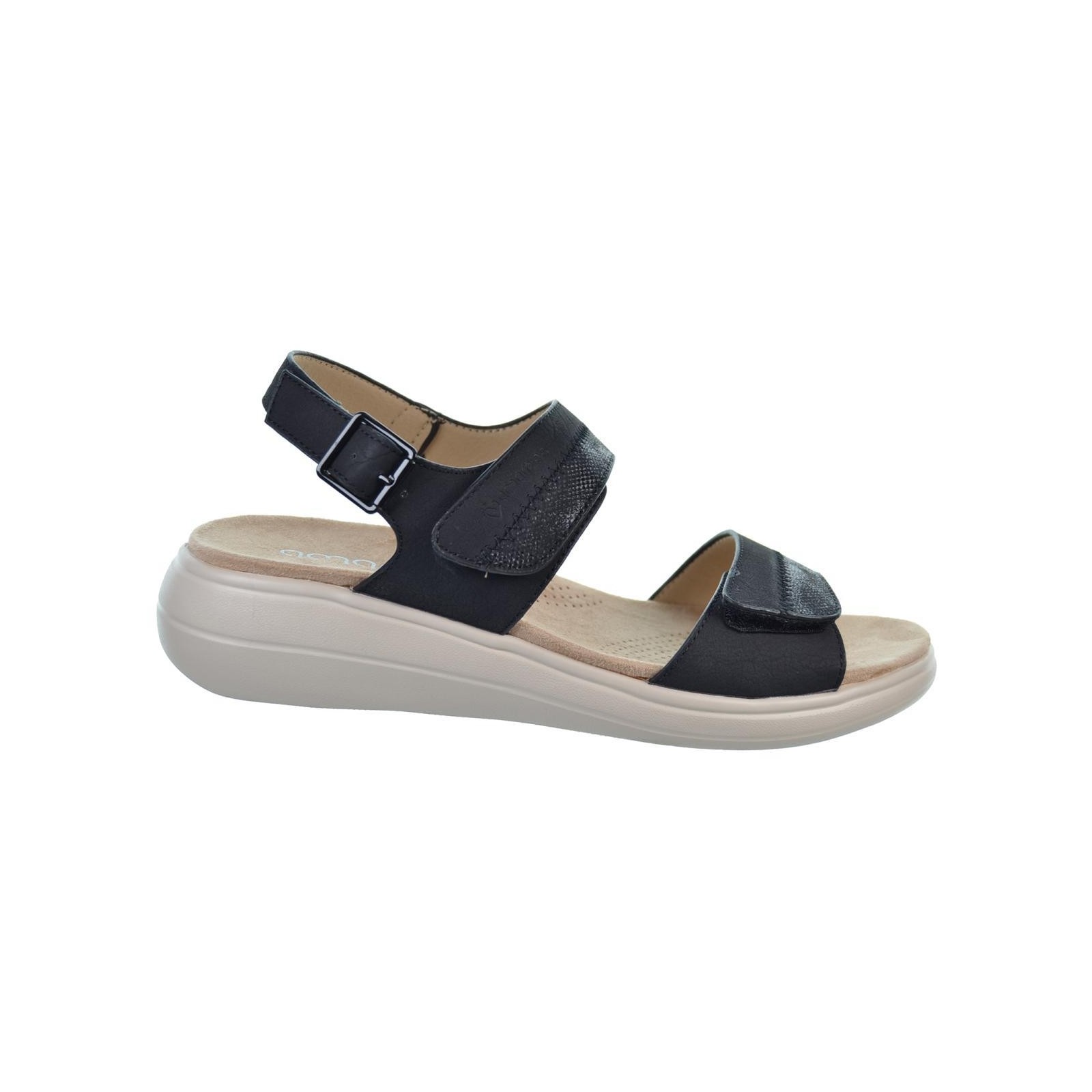 Amarpies. 26596 Sandalia en sintético, forro interior textil y planta acolchada muy confortable. Cierre con doble velcro en empeine y hebilla en talón ajustables. Piso con cuña de 4cm.de altura, muy ligero.Ideal para pies delicados.