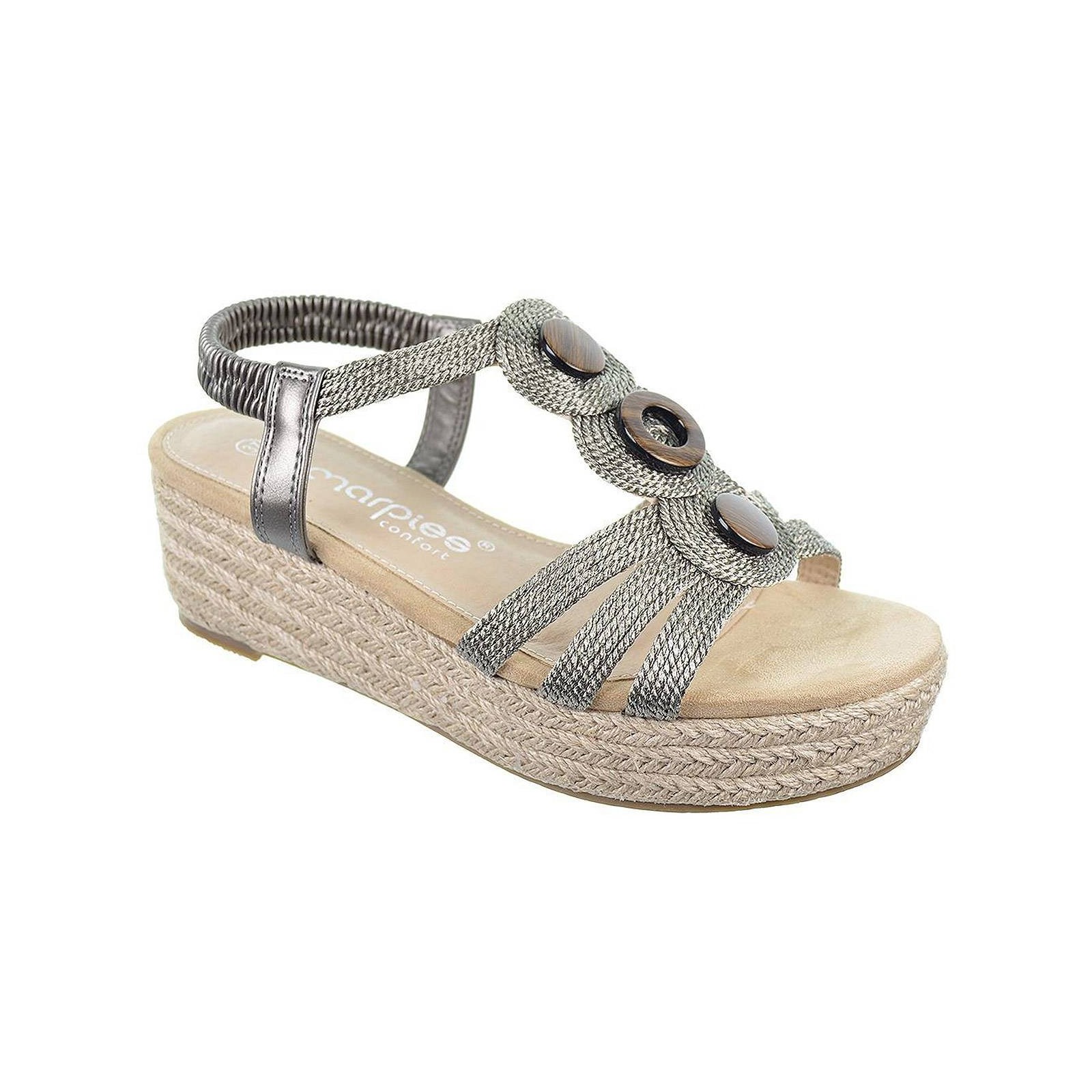 23525 Amarpies Sandalia sintética con tiras trenzadas, elástico en talón para un ajuste perfecto y plantilla acolchada muy confortable. Piso de plataforma con cuña de 5cm de altura y forrado en rafia. Suela de goma antideslizante. Ideales para eventos y combinar con tus vestidos de este verano.