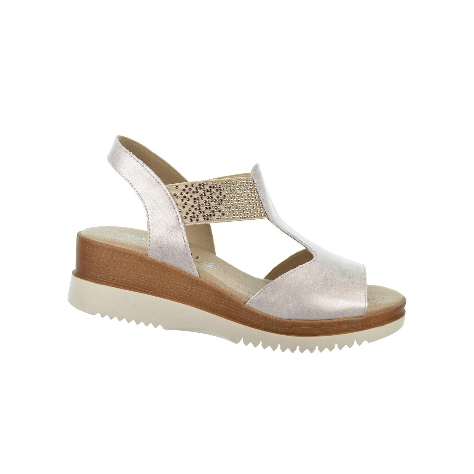 Baerchi 40000 Sandalia fabricada con piel de primera calidad, interior forrado textil y plantilla acolchada muy confortable, 100% transpirable. Elásticos en ambos lados para un ajuste perfecto. Suela con cuña de 5cm en caucho, muy ligera y flexible.Ideales para pies delicados.
