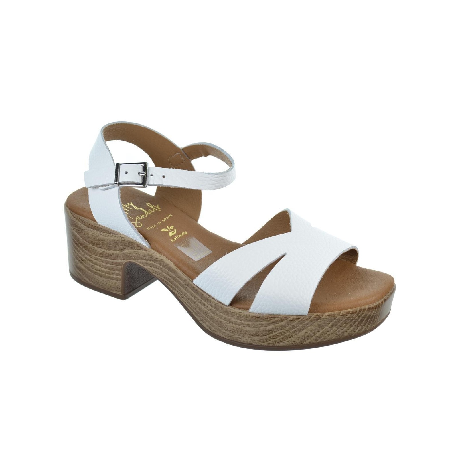 Oh! My Sandals 5625 Sandalia en piel. Plantilla textil Eco Friendly muy confortable y cierre en pulsera con hebilla regulable. Suela poliuretano imitación madera con tacón ancho de 5,5cm. y plataforma de 2,5cm. Ideal para combinar con tus vestidos este verano.
