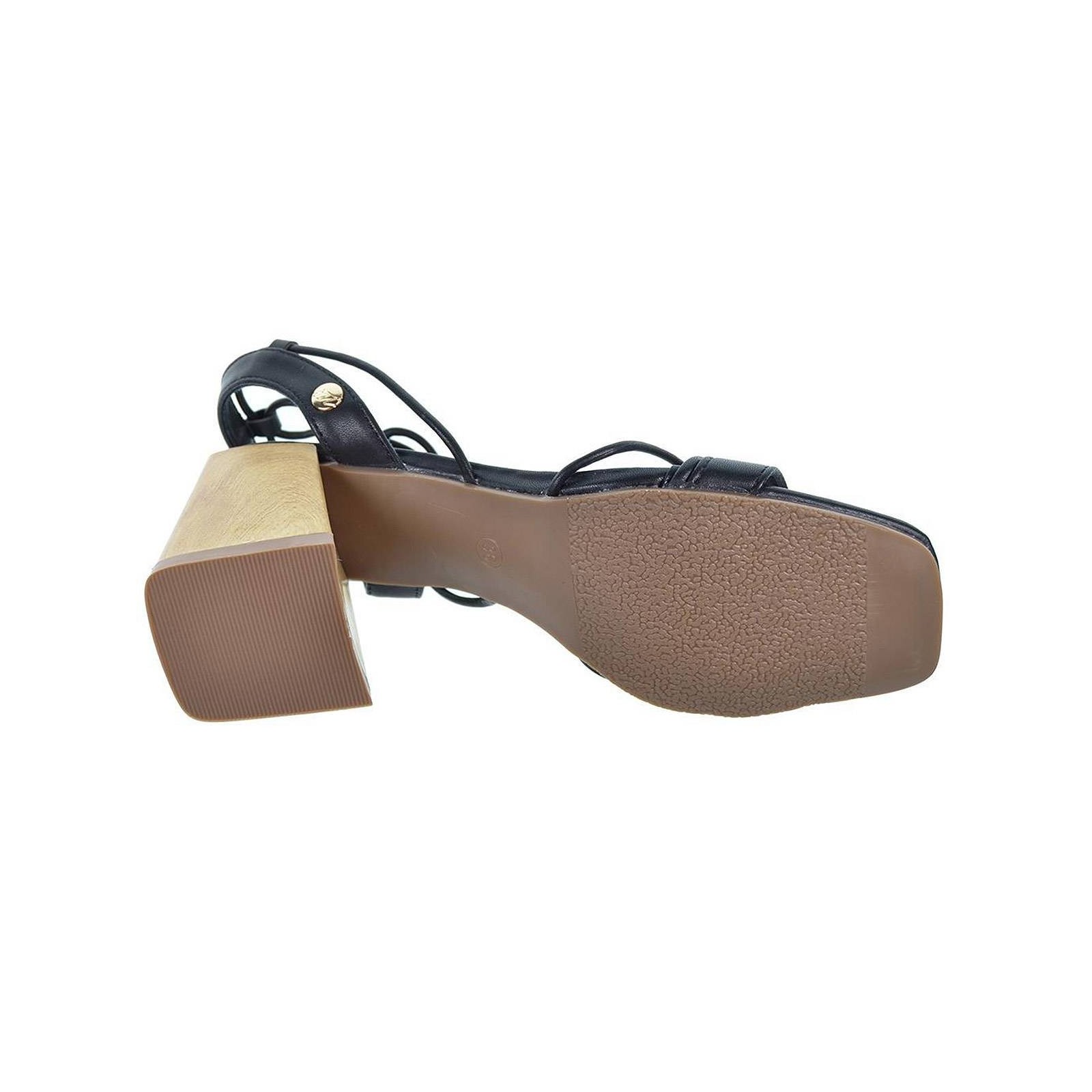23032 Isteria Sandalia sintética con tiras para atar en pierna y planta acolchada. Tacón ancho de 7cm de altura con imitación madera y suela de goma antideslizante. Ya tienes tus sandalias para combinar con tu outfit y disfrutar en eventos a todo confort.