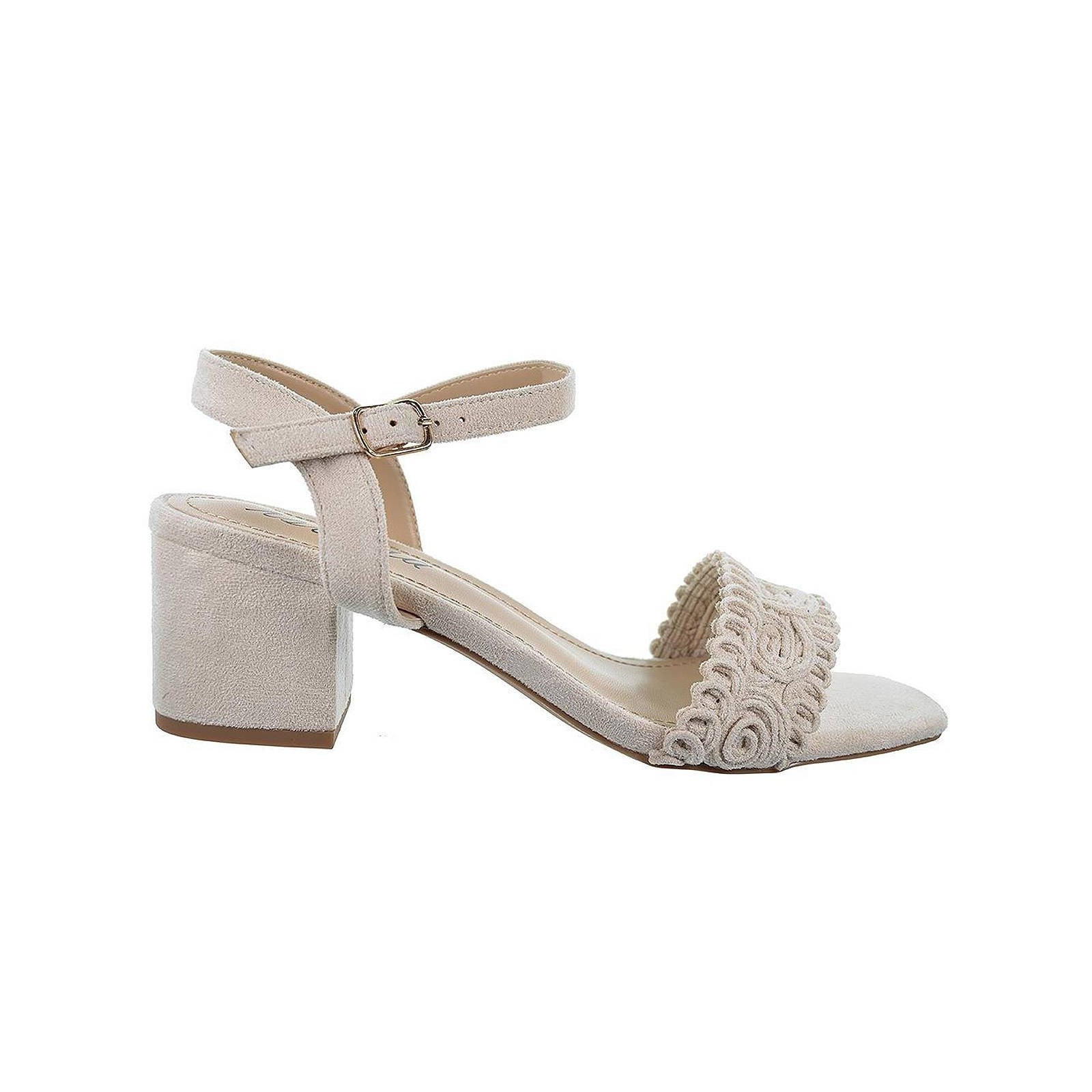 23063 Isteria Sandalia en antelina, cierre en pulsera con hebilla regulable. Tacón ancho forrado en antelina de 5cm de altura. Un diseño muy confortable para eventos y ceremonias.