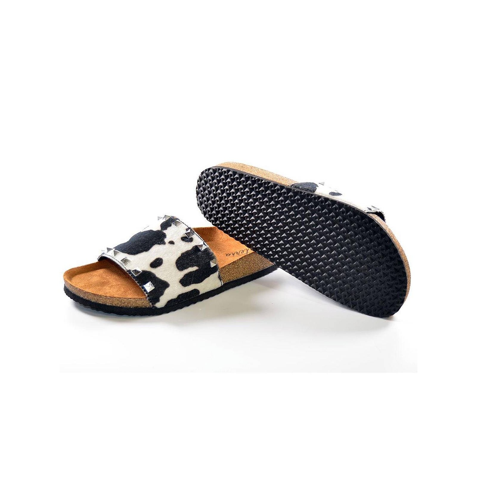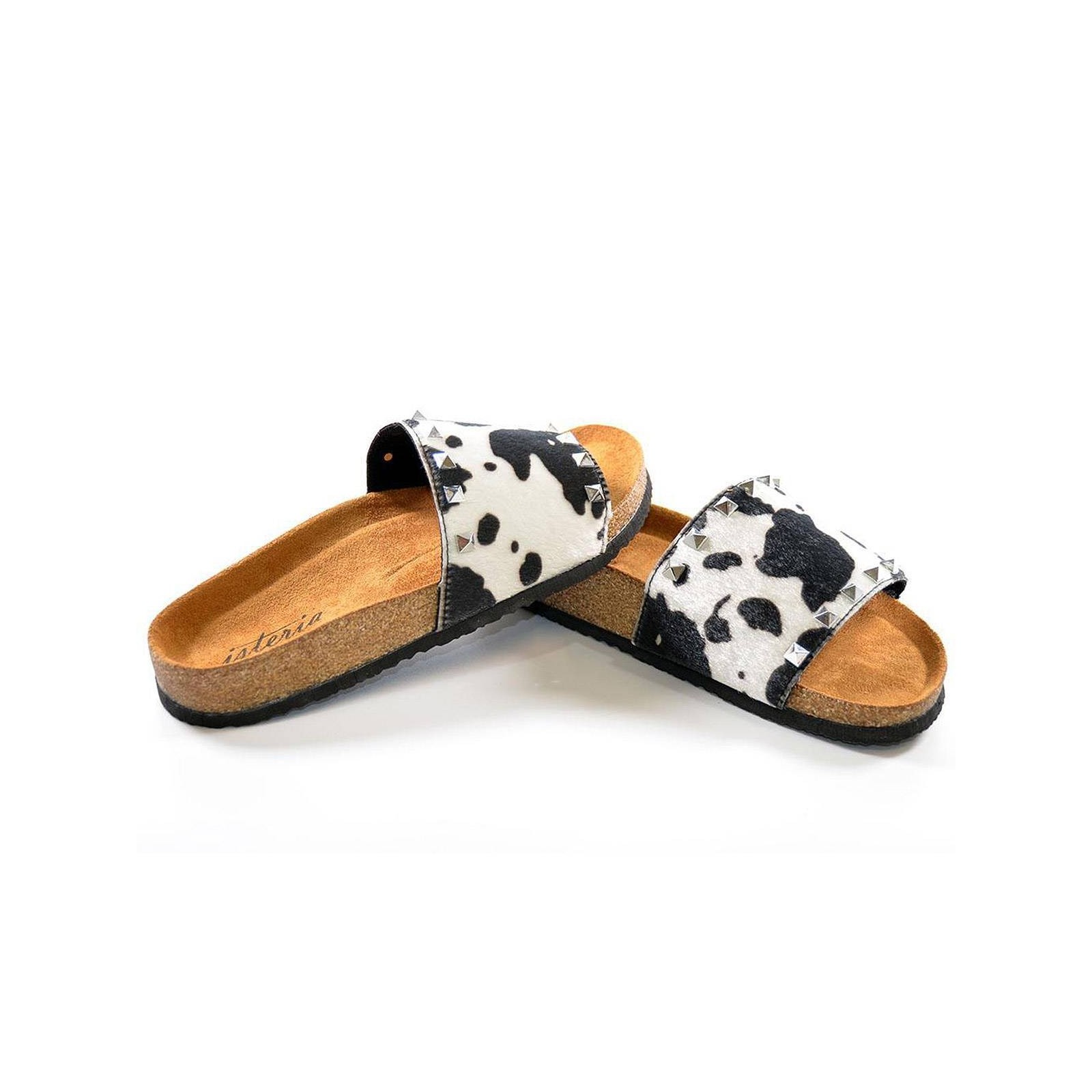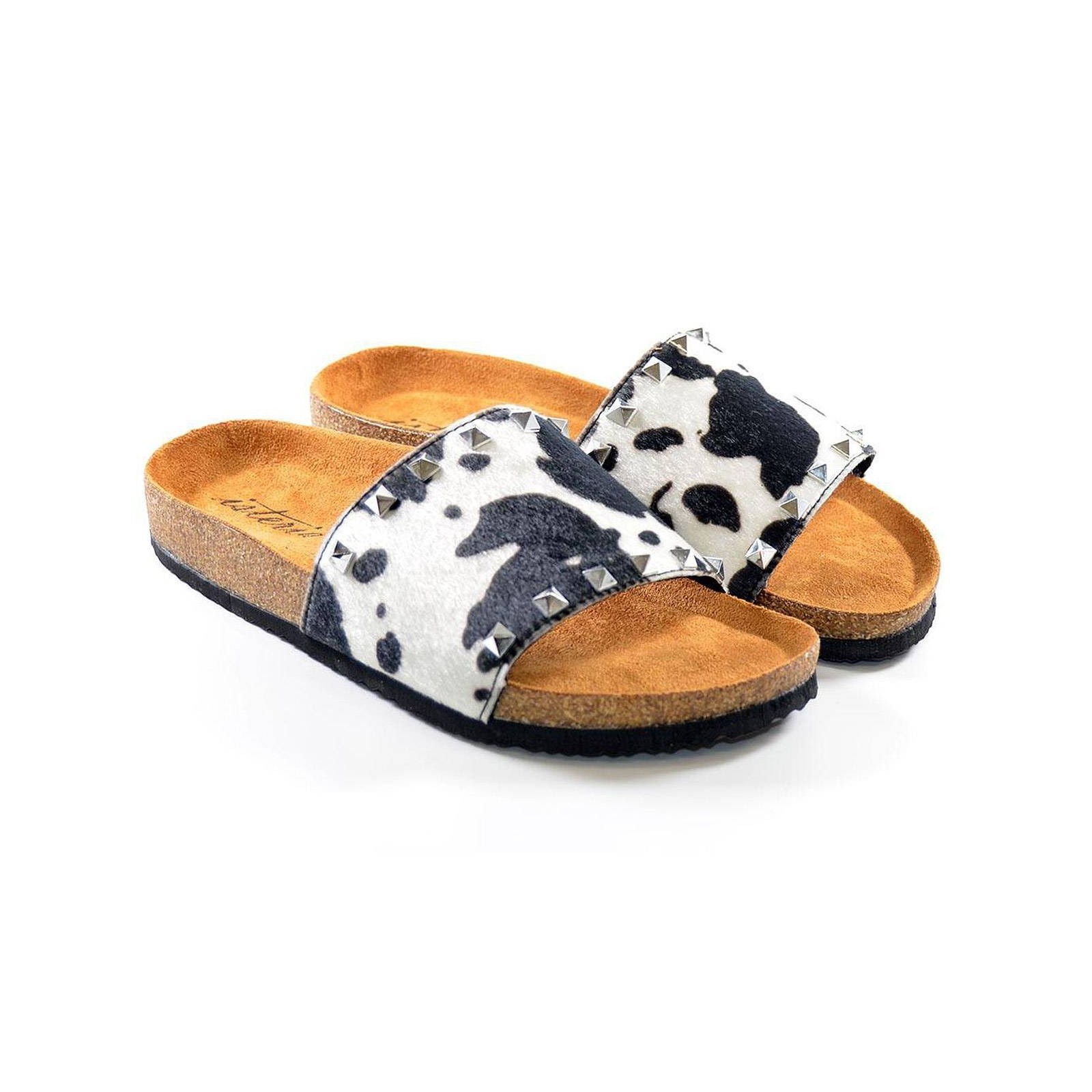 21063 Isteria. Chancla zueco material textil con pala ancha y remaches. Planta bio y piso eva. Ideal para un look único.