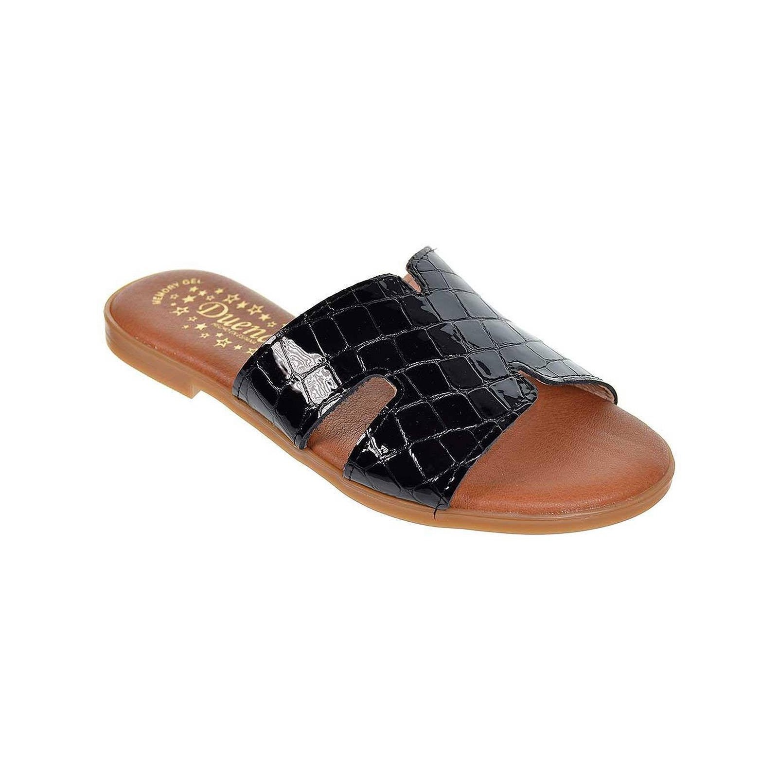 2433 Oh! My Sandals. Sandalia tipo Zueco material en piel y charol grabado. Plantilla en piel acolchada, muy confortable. Piso de goma antideslizante. Un diseño que te aportará comodidad en tu día a día.