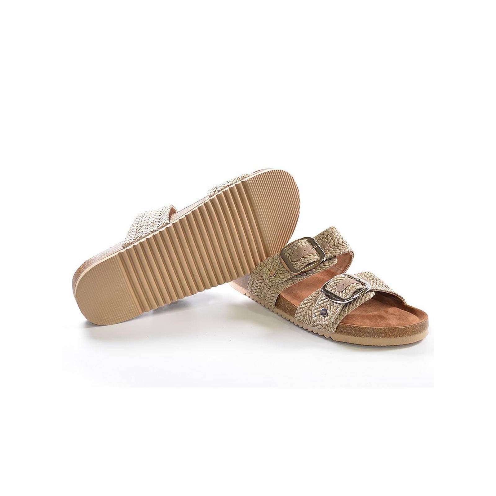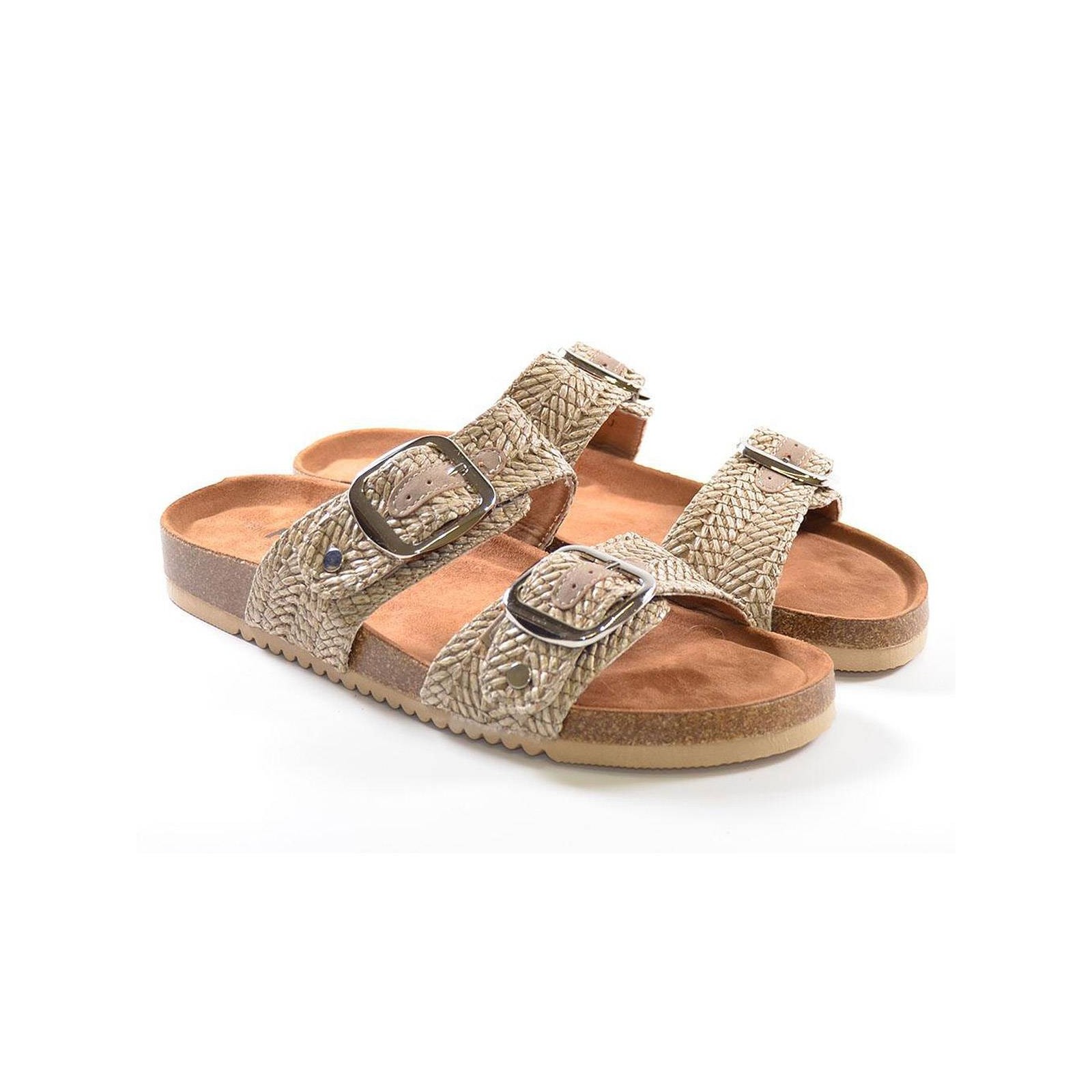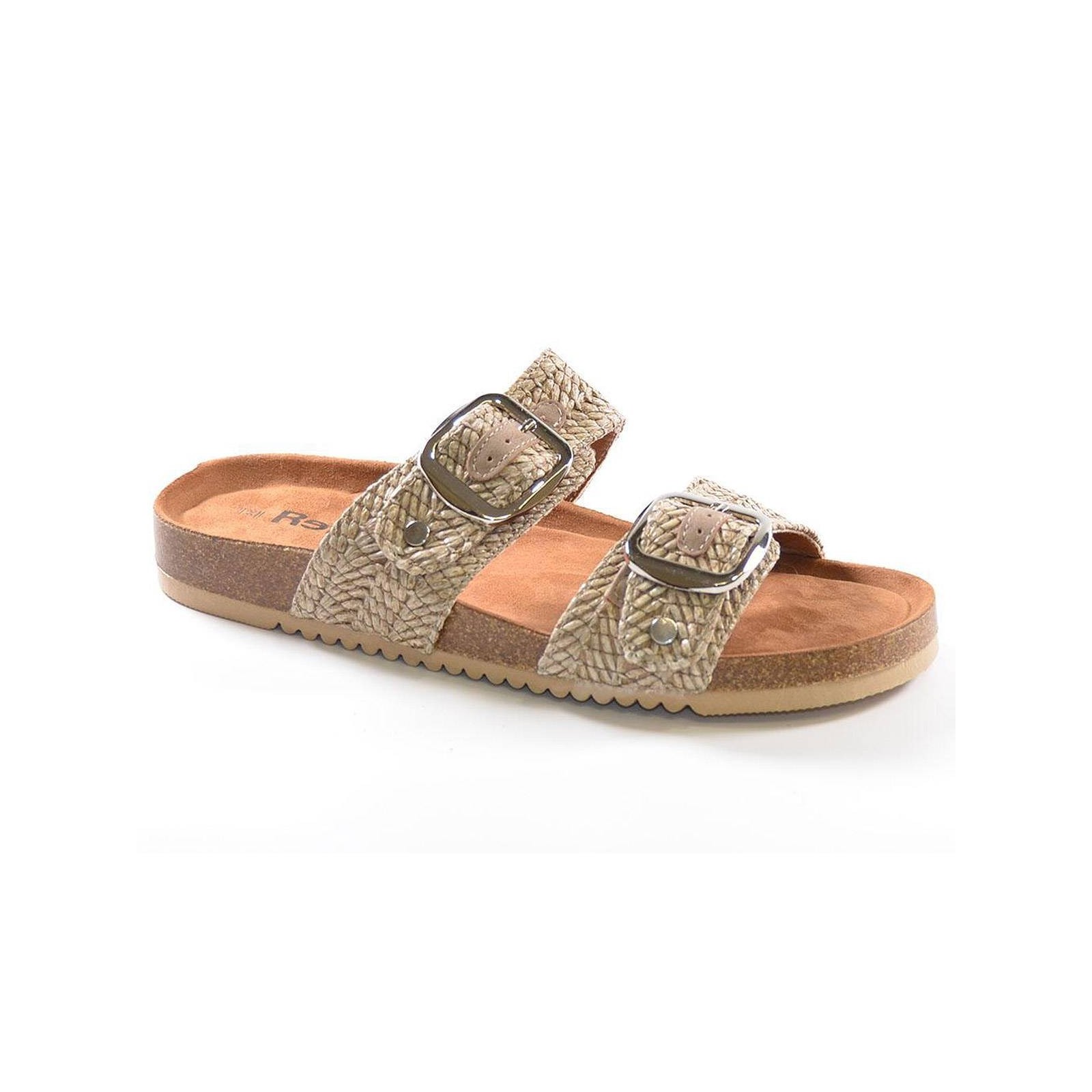 72939 Refresh. Sandalia tipo Zueco de dos tiras en rafia con hebillas. Plantilla bio muy confortable y suela de goma. Ideal para los largos paseos de verano.