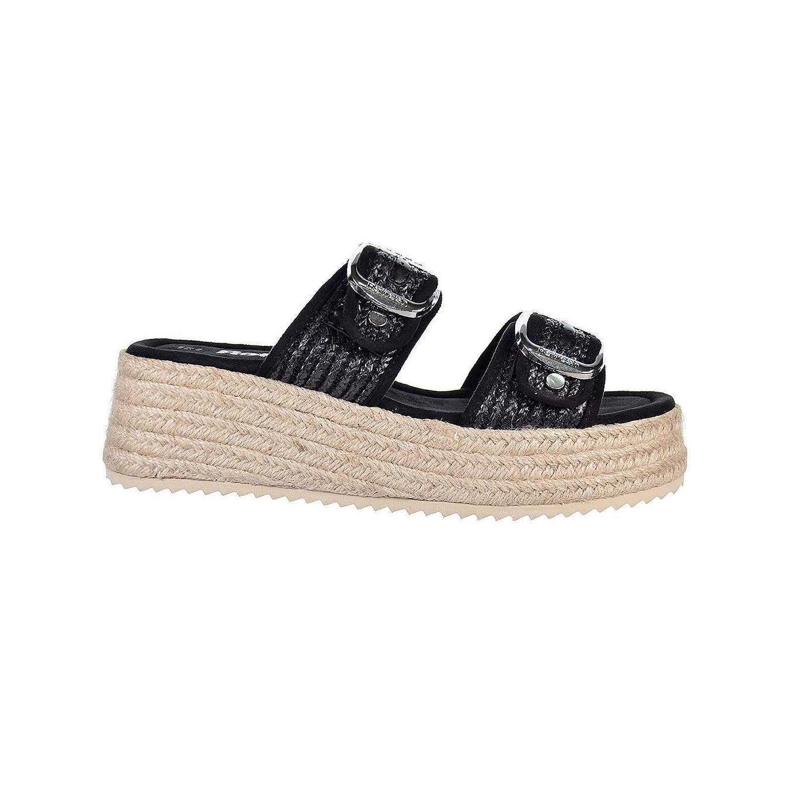 79597REFRESH. Sandalia tipo Zueco fabricada en material de rafia. Forrado interior textil y cierre con doble hebilla ajustable en empeine. Piso plataforma de 6cm.de alto, forrada en yute con suela de goma antideslizante. Un diseño con el que podrás combinar a la perfección con tu outfit. Este modelo ha obtenido el certificado vegano por la organización mudial PETA.
