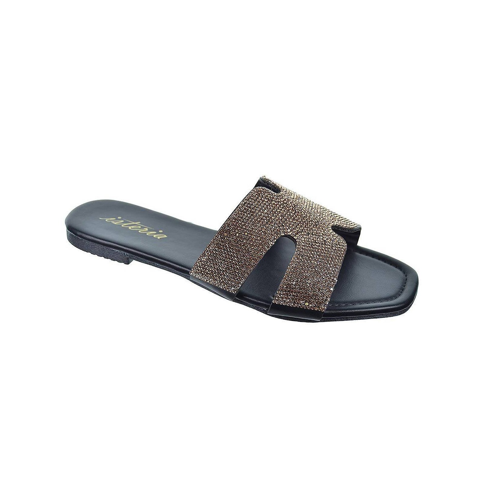 23145 Isteria Zueco sintético con fantasía y suela plana de goma muy ligera y flexible.Tus zuecos mas elegantes para este verano.