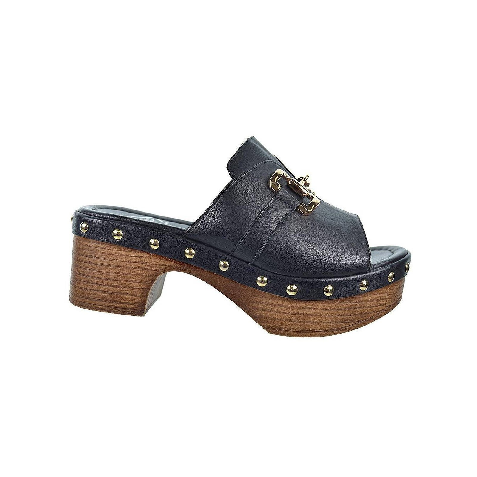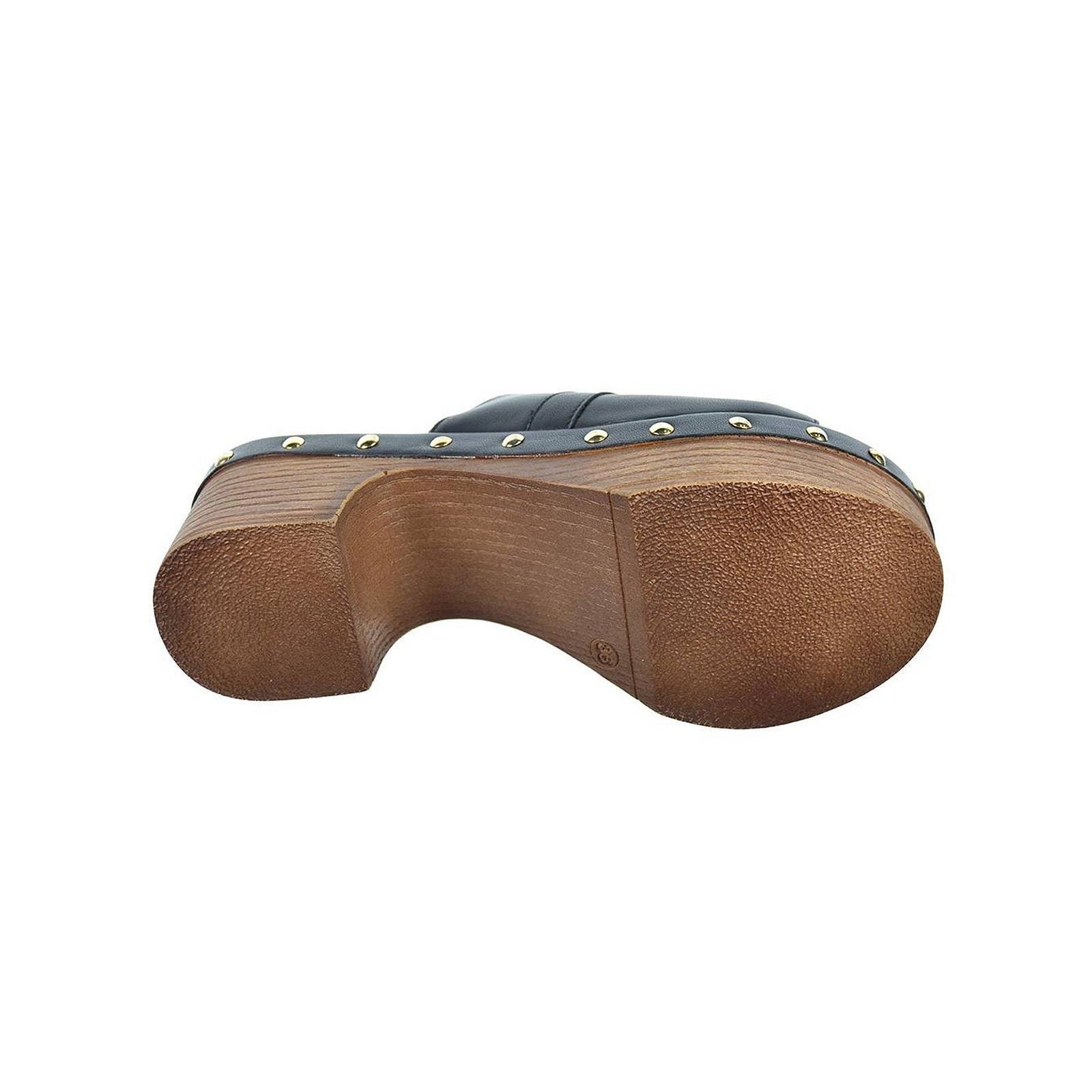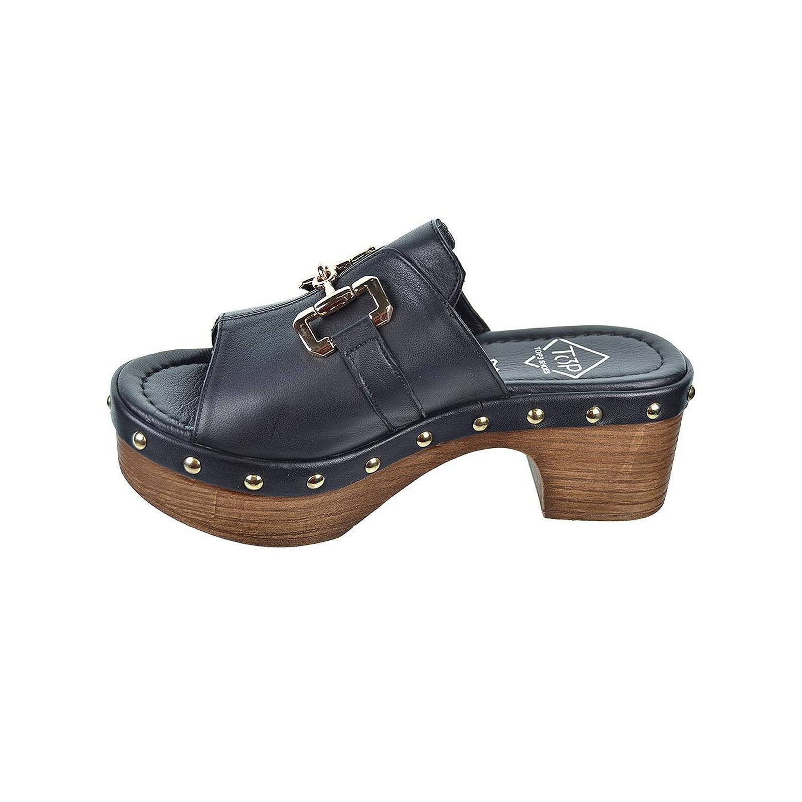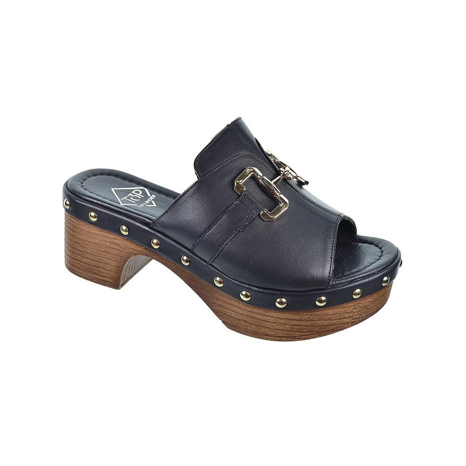 23427 Top3 Zueco en piel con planta muy confortable y piso plataforma imitación madera con tachuelas. Ya puedes ir a la moda con tus zuecos que combinarán a la perfección con tu outffit.